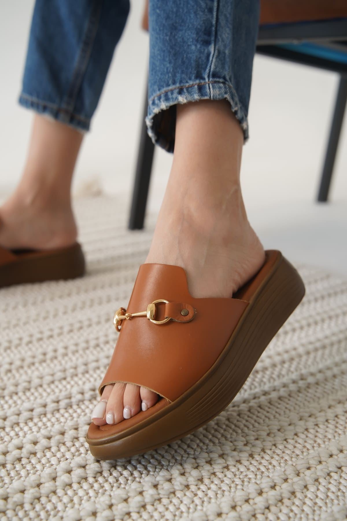 Nelly Kadın Hakiki Deri Taba Terlik