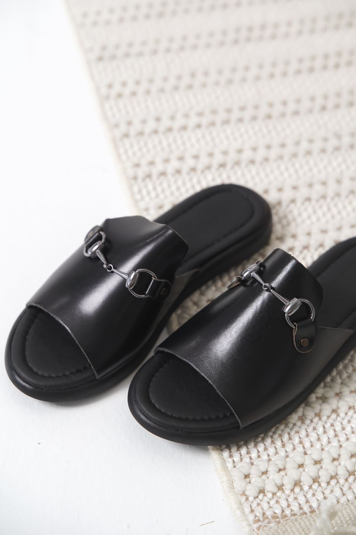 George Siyah Hakiki Deri Terlik