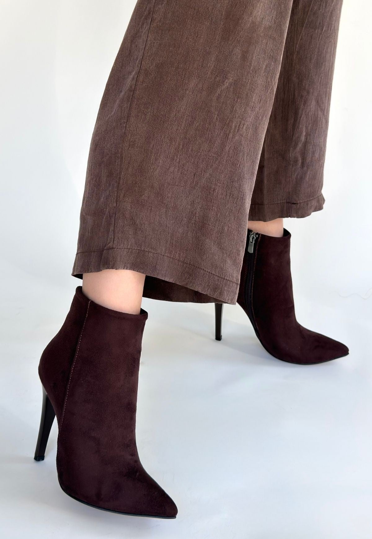 Blan Kadın Acı Kahve Süet Sivri Burun İnce Topuk Bot