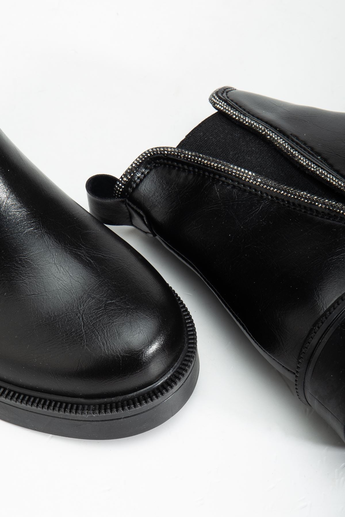 Thenar Siyah Kırışık Rugan Taş Aksesuarlı Lastikli Kadın Bot