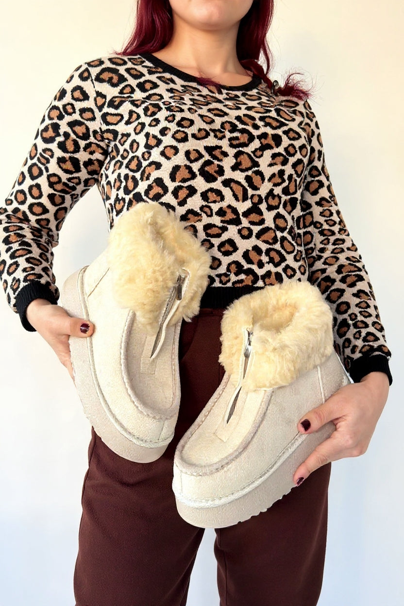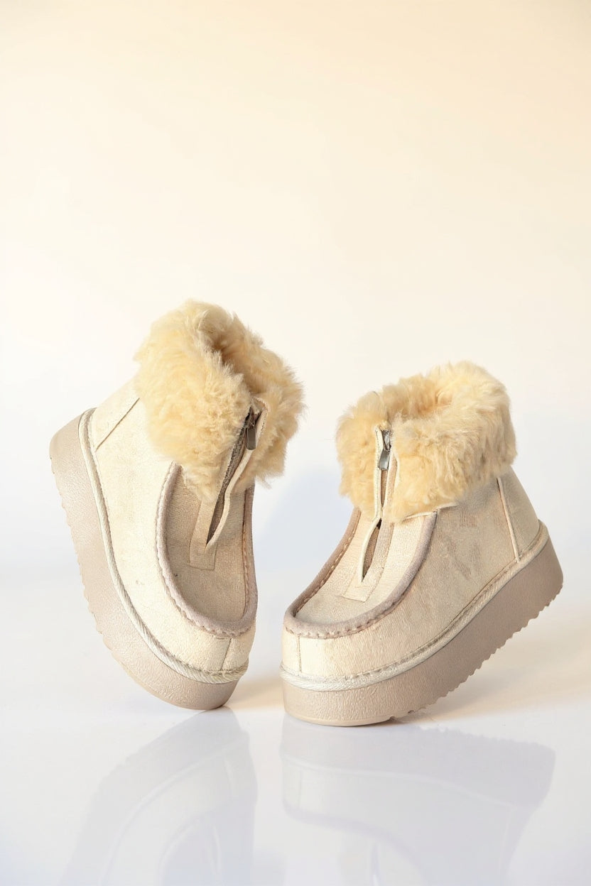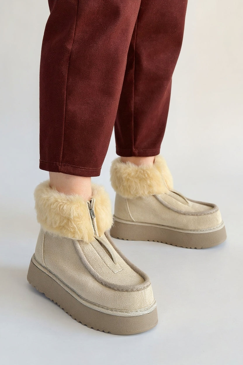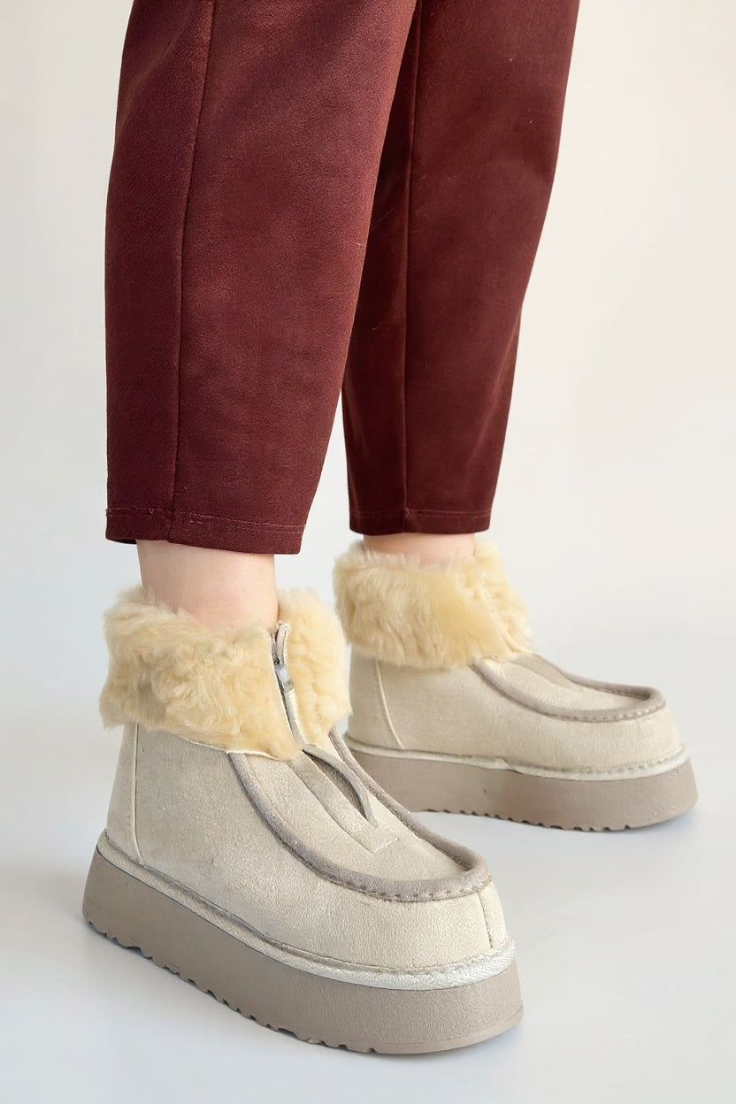 Zinya Kadın Bej İçi Kürklü Önden Fermuarlı Süet Bot