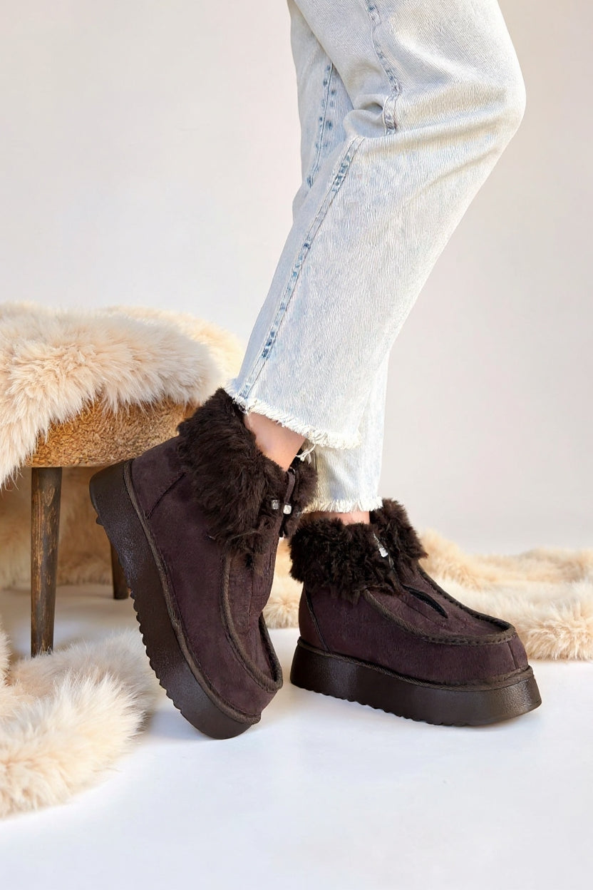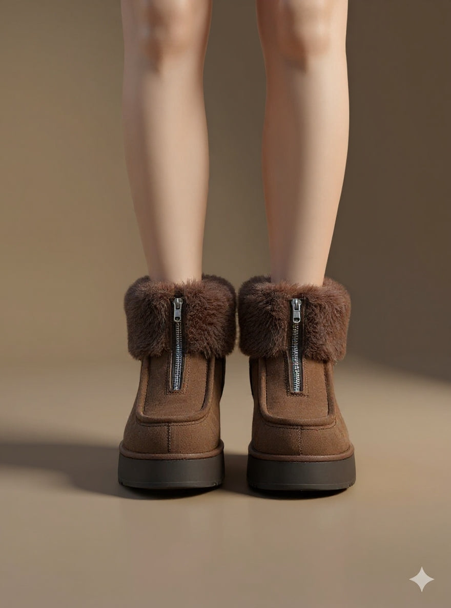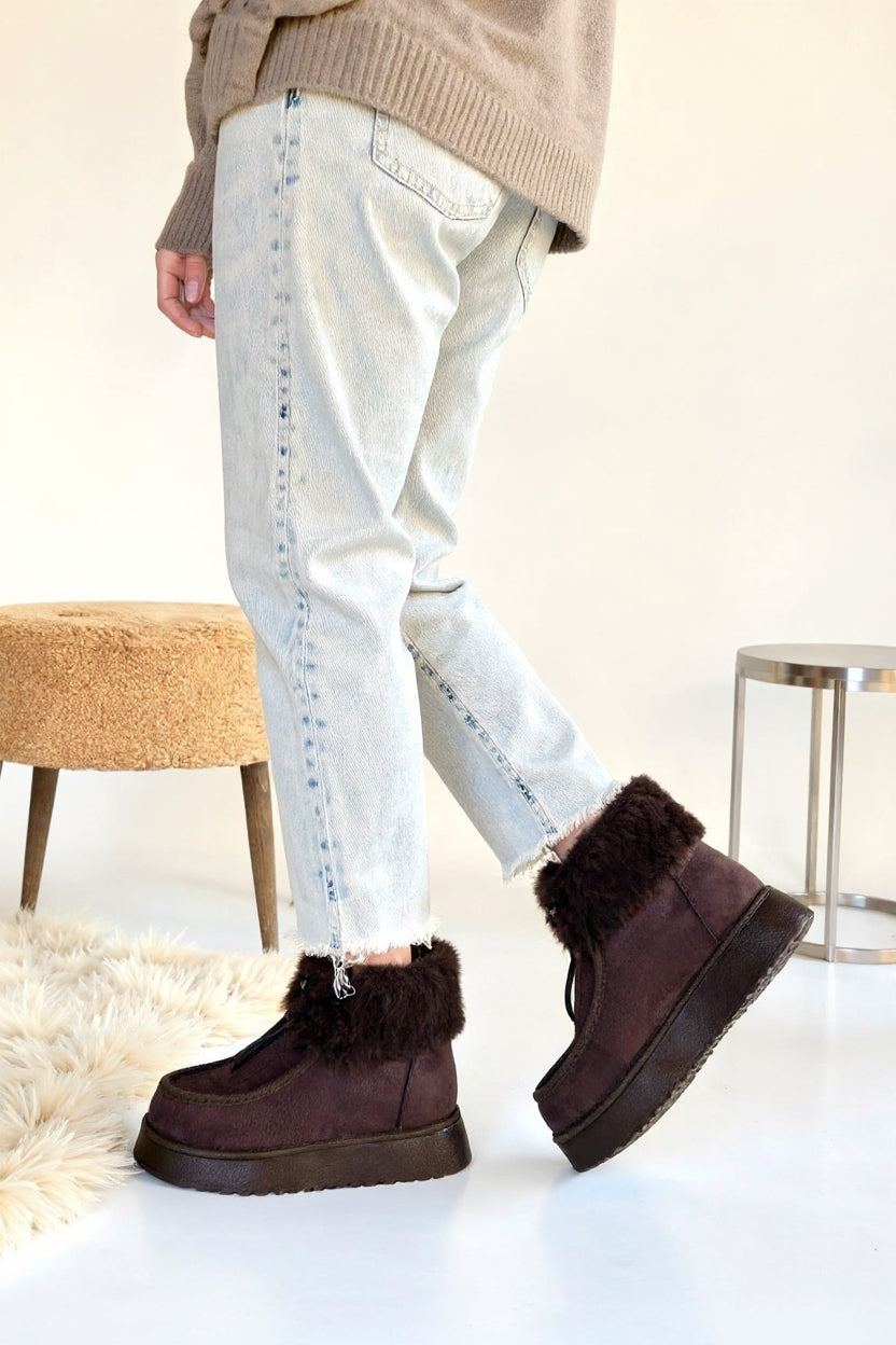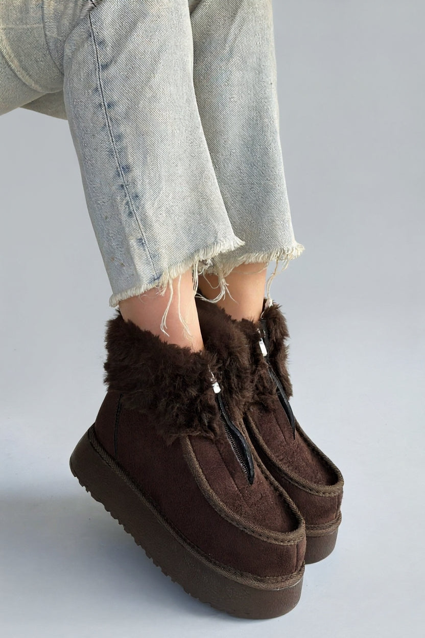 Zinya Kadın Kahverengi İçi Kürklü Önden Fermuarlı Süet Bot