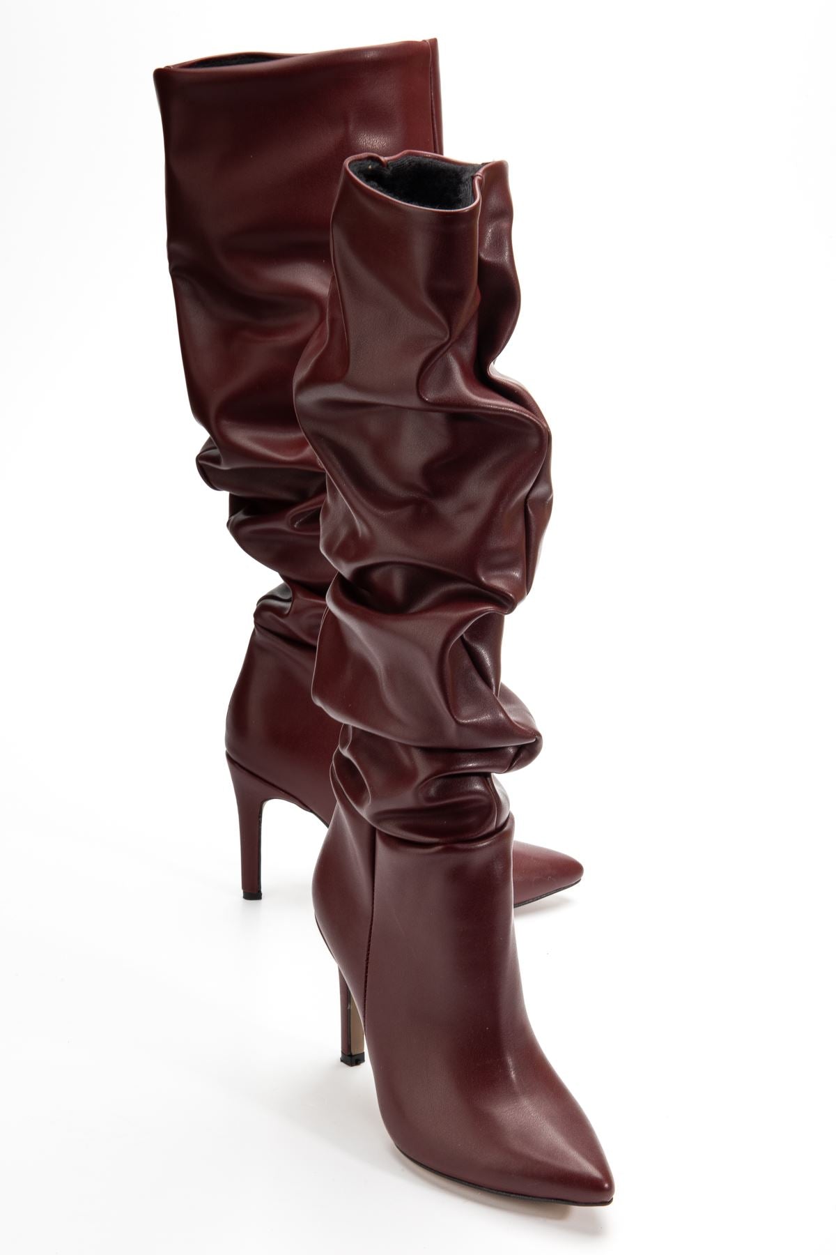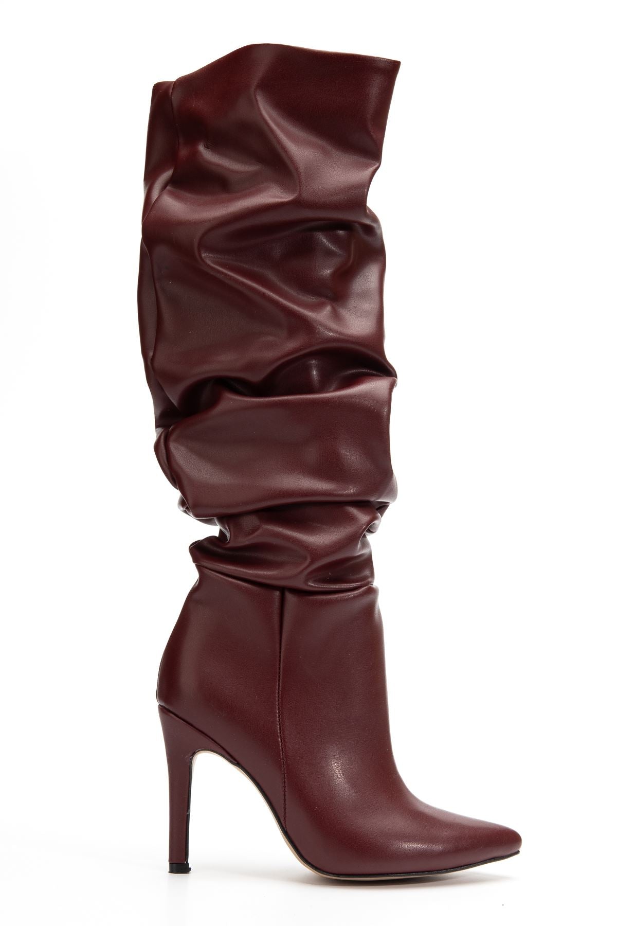 Benan Bordo Körüklü İnce Topuklu Kadın Çizme