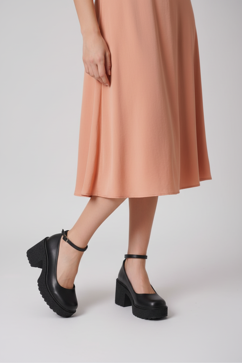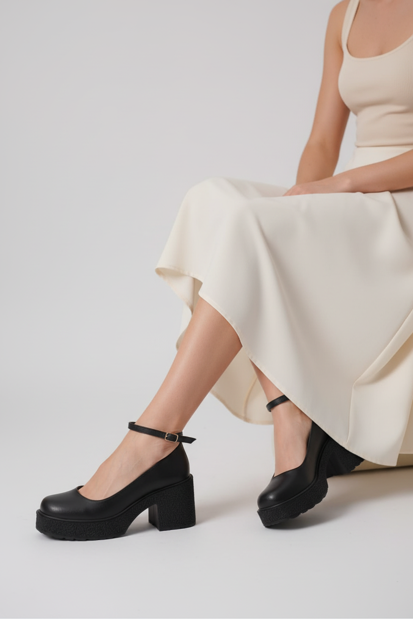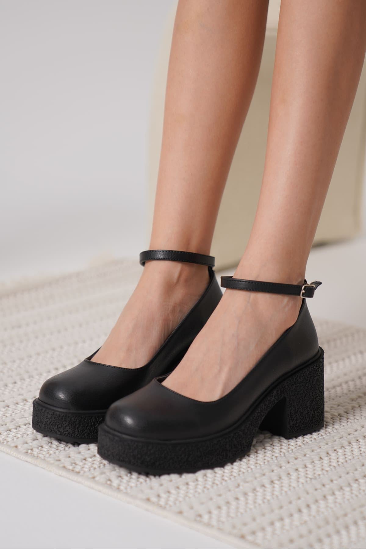 Marla Kadın Siyah Bilekten Bantlı Günlük Kalın Topuklu Ayakkabı