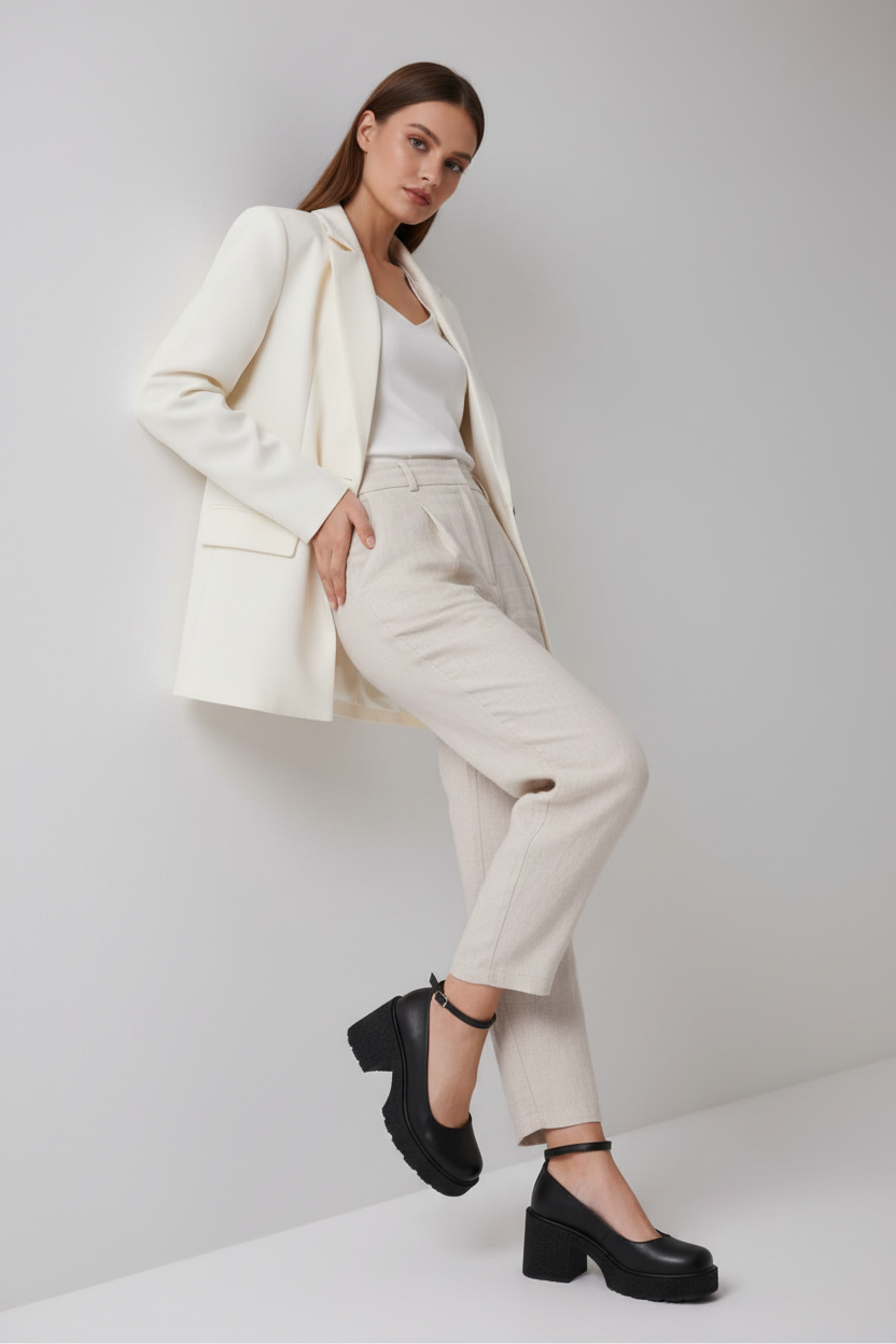 Parlak dokusu ve zarif bej tonu ile öne çıkan bu model, bilekten bantlı tasarımı sayesinde feminen bir görünüm sunuyor. Kalın topuk yapısı gün boyu konfor sağlarken, modern tasarımıyla hem günlük kombinlerde hem de iş hayatında şıklığını tamamlar. Hem rahat hem de zarif bir stil isteyenler için ideal bir tercih.