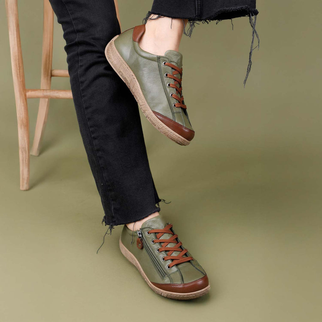 Sunset Kadın Hakiki Deri Yeşil Kahve Ayakkabı