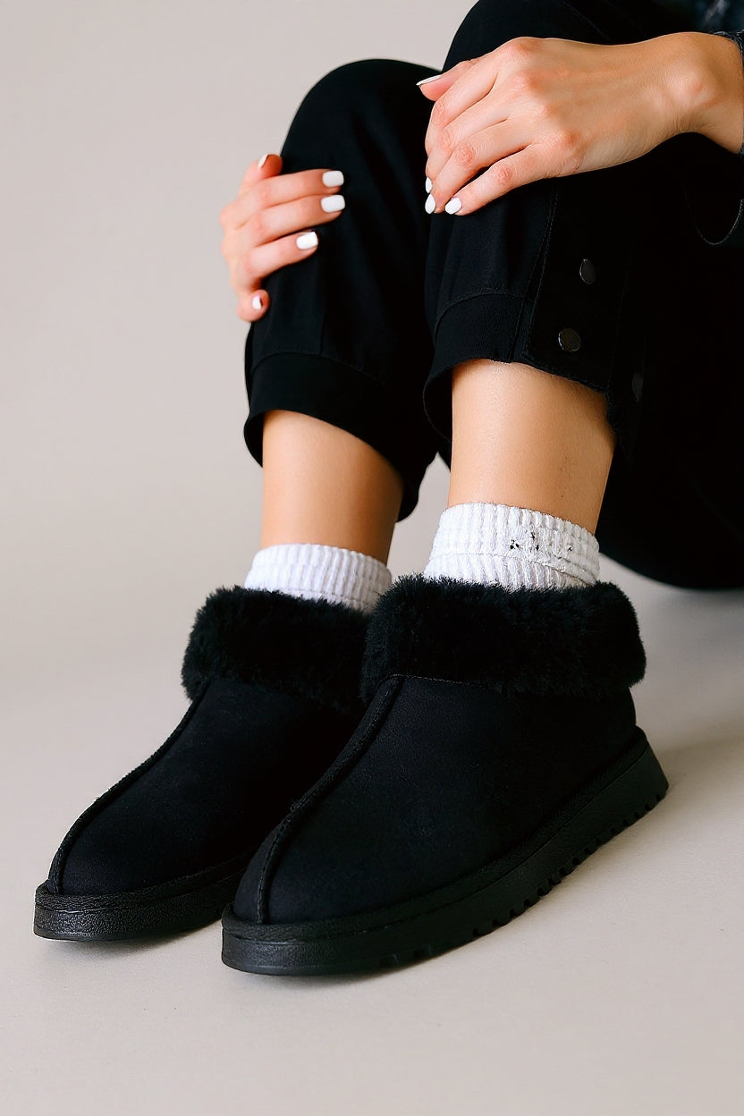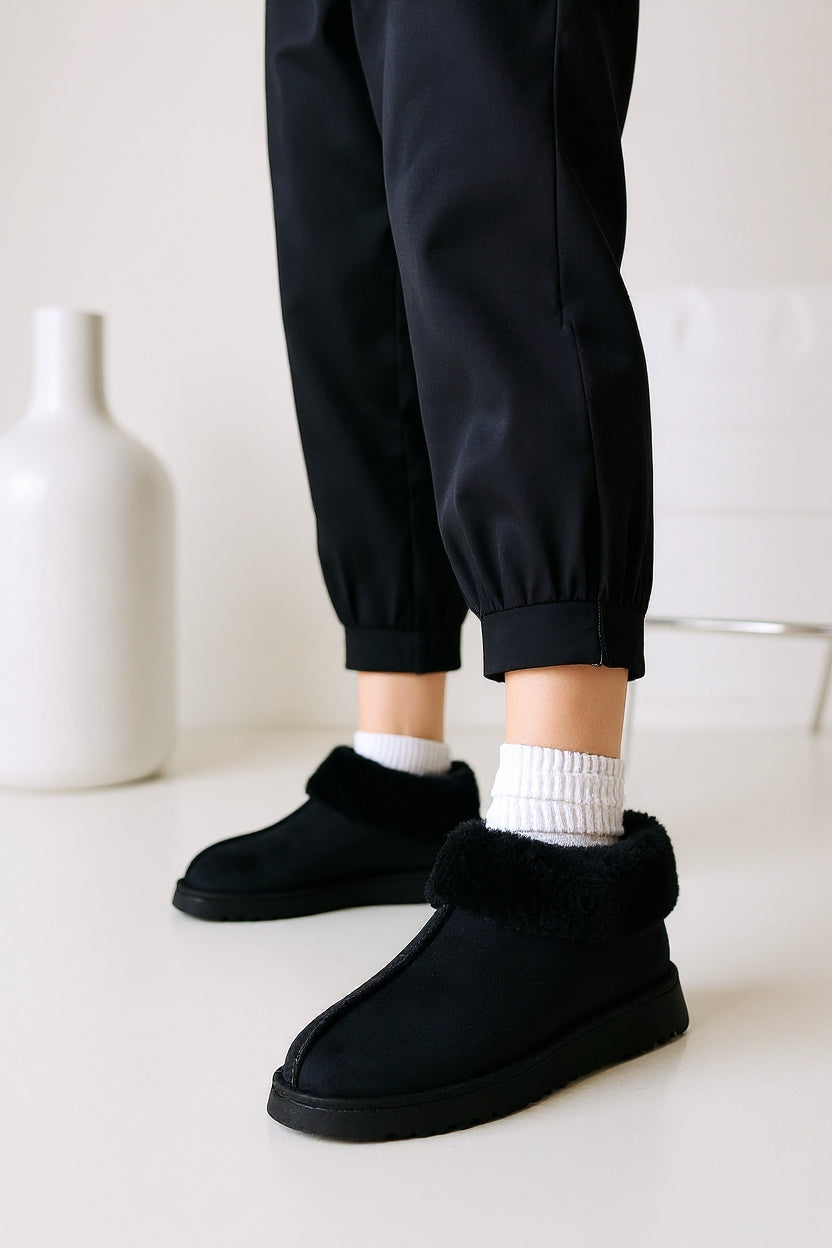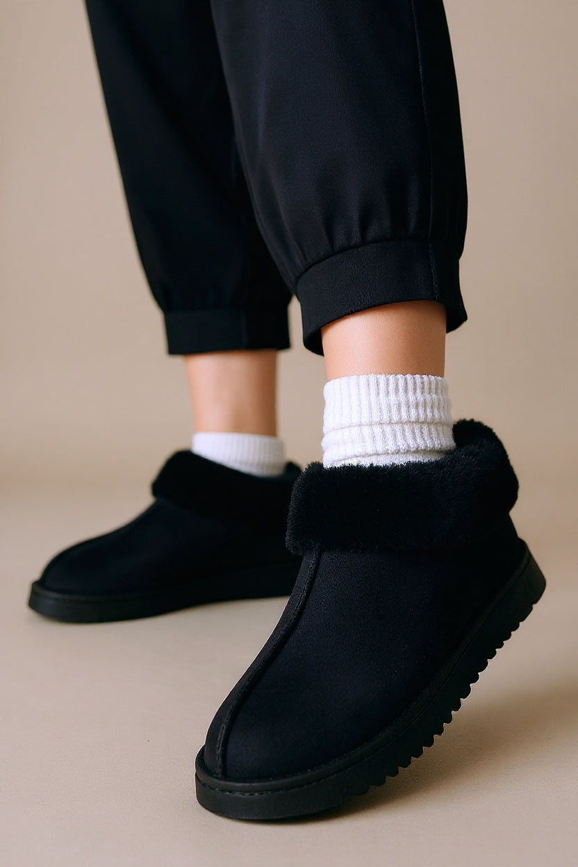 Soğuk günlerde sıcak ve konforlu bir stil arayanlar için ideal! Yumuşak süet dokusu ve iç kısmındaki sıcak tutan kürk detayıyla öne çıkar. Hafif poli tabanı adımlarını desteklerken, rahat kalıbı sayesinde gün boyu konfor sağlar. Ev dışı kullanıma da uygun olan bu model, hem rahat hem de modern bir kış görünümü sunar.