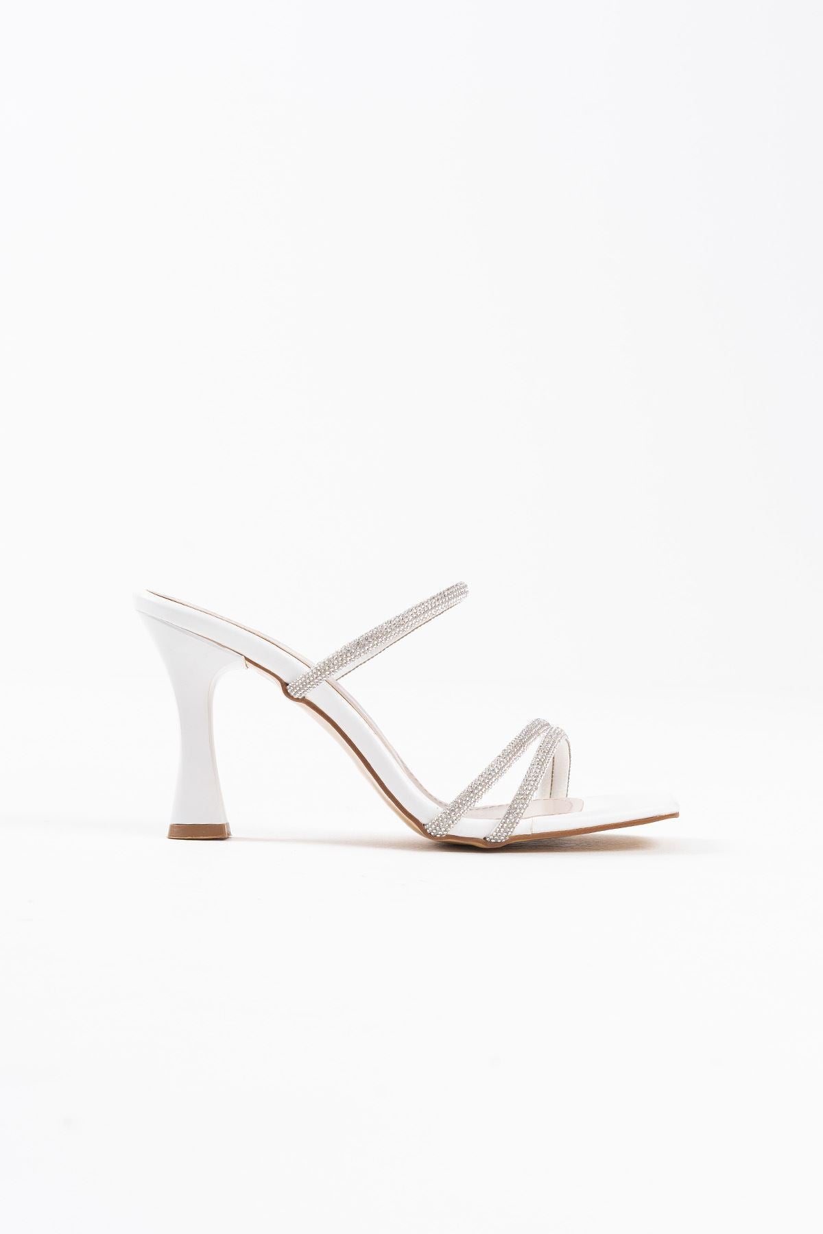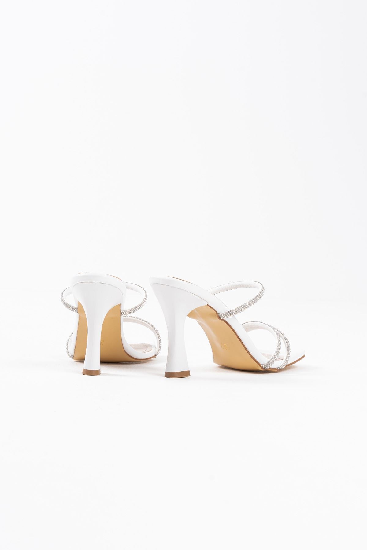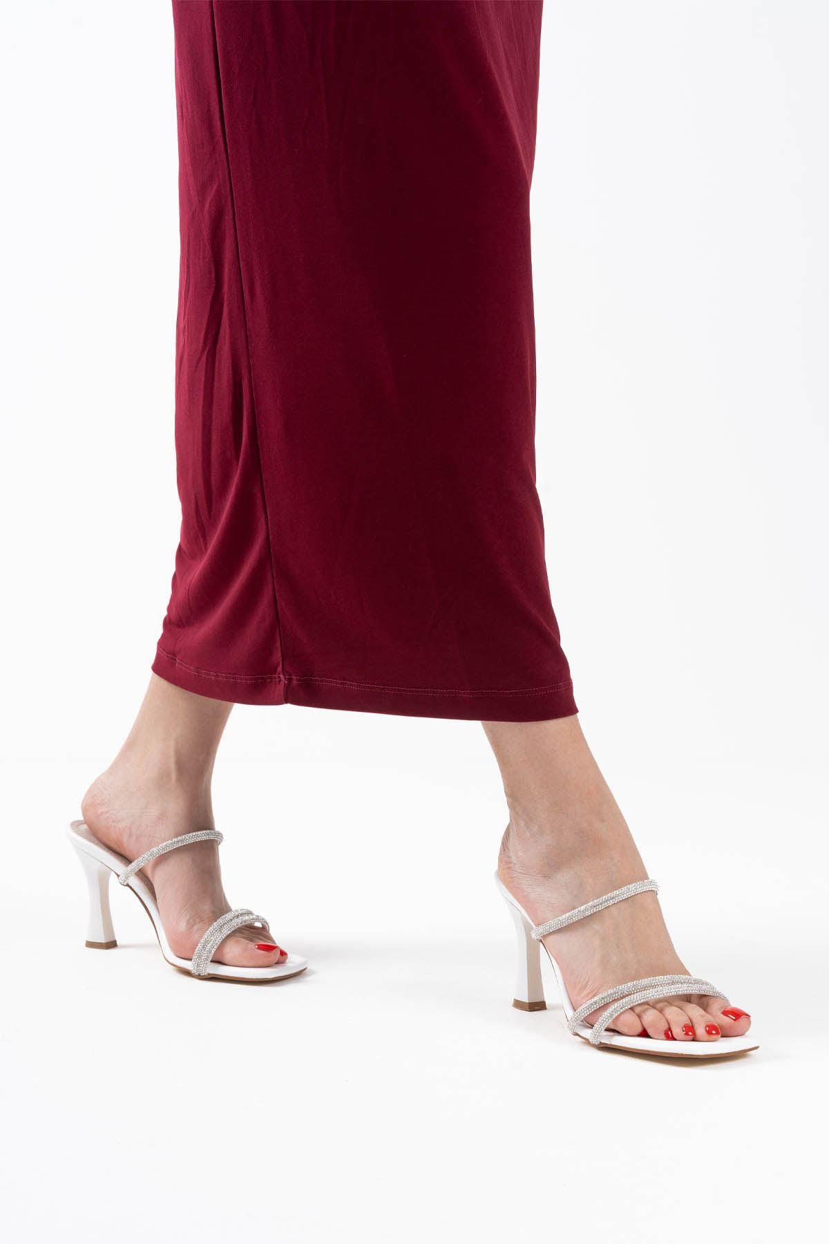 Alvina Kadın Beyaz Taşlı İnce Bantlı Topuklu Abiye Ayakkabı