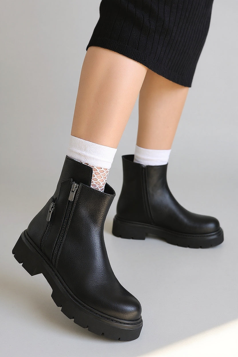 Menta Kadın Siyah Fermuar Aksesuarlı Bot