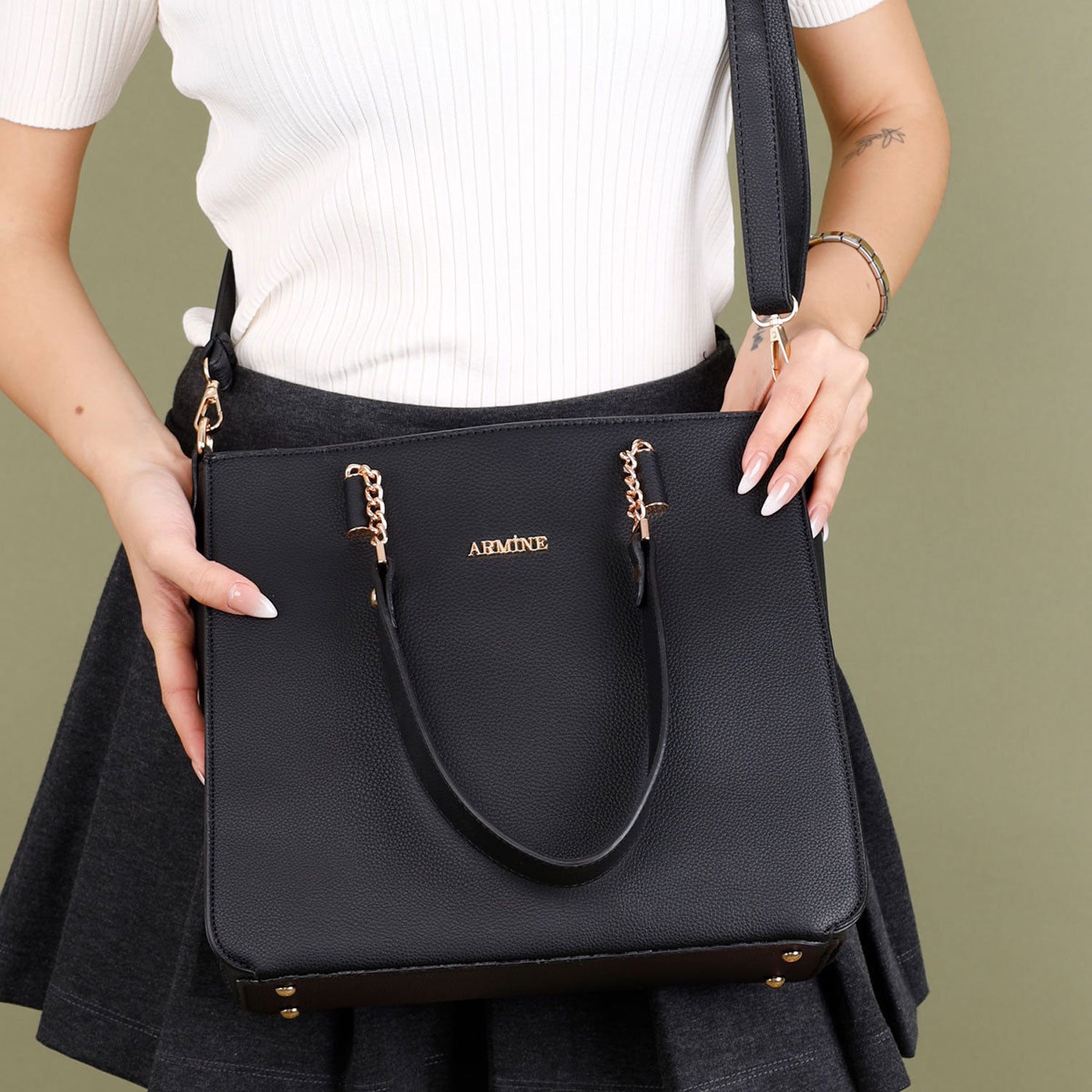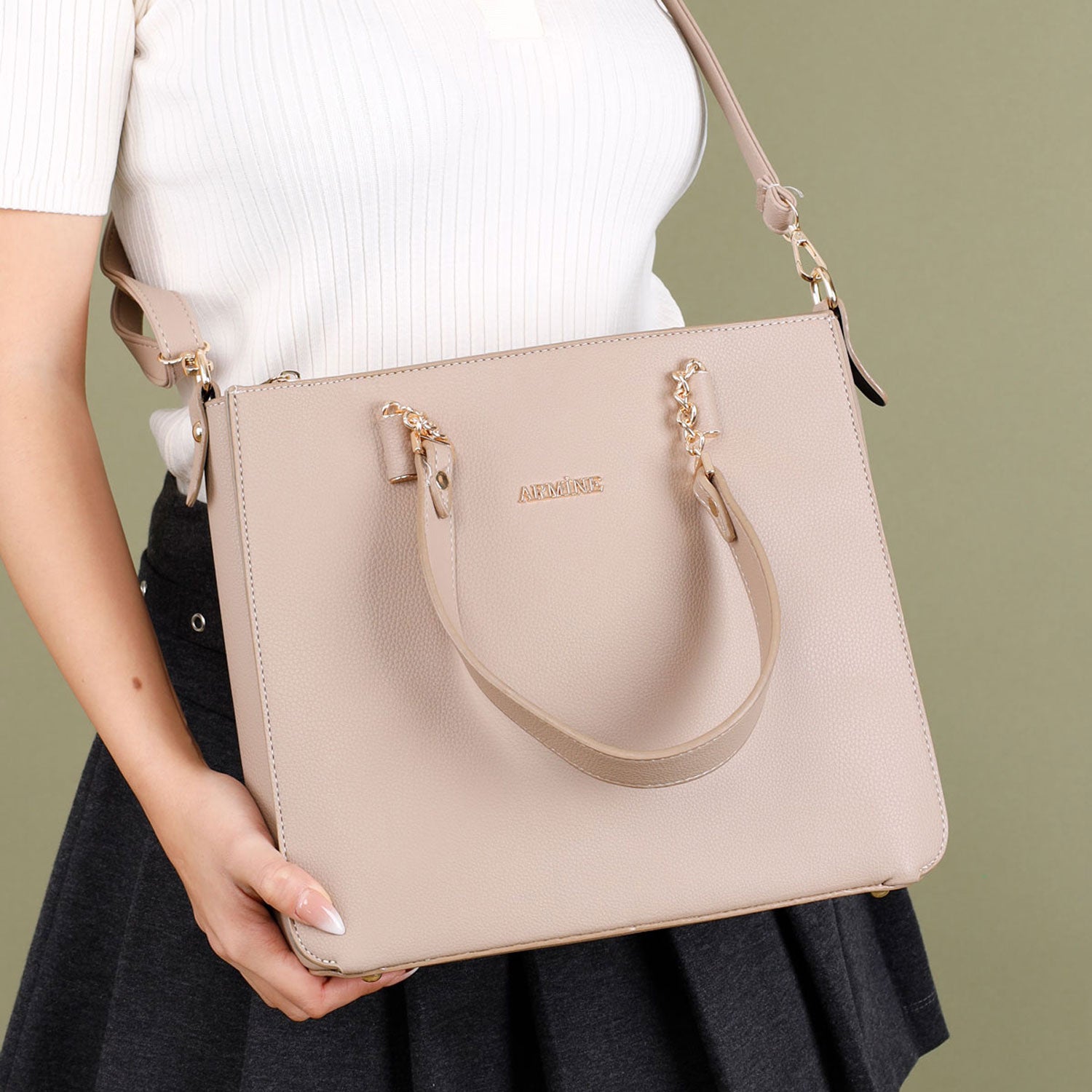Armine 362 Lavem kadın omuz çantası, sade ve zarif tasarımıyla günlük kullanımda şıklık arayanlar için idealdir. Altın detaylı zincir askısı ve geniş iç hacmi, eşyalarınızı düzenli ve kolay ulaşılabilir şekilde taşımanıza olanak tanır. Beyaz, kahverengi ve krem tonlarında sunulan bu çanta, klasik ve modern tarzları bir araya getirerek her kombine uyum sağlar.