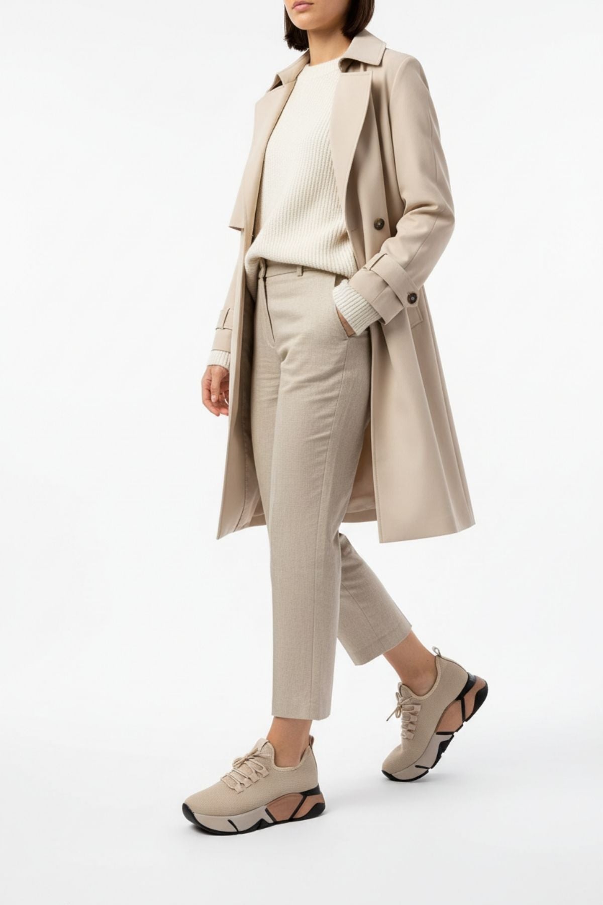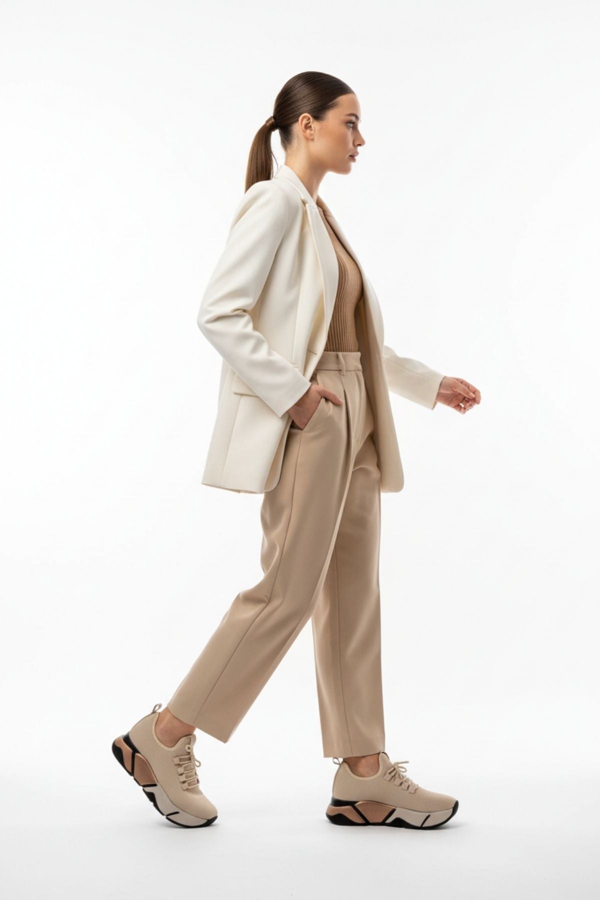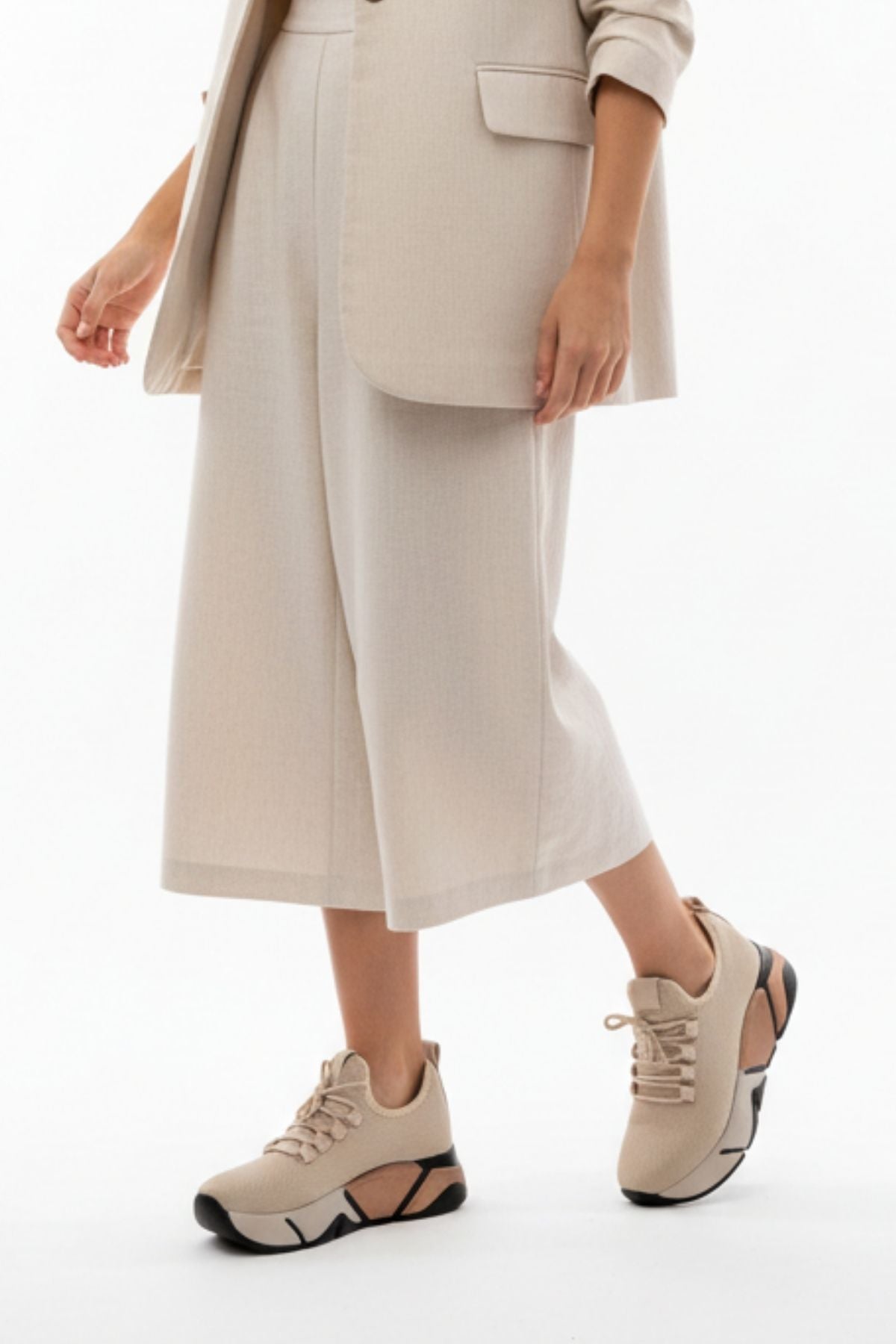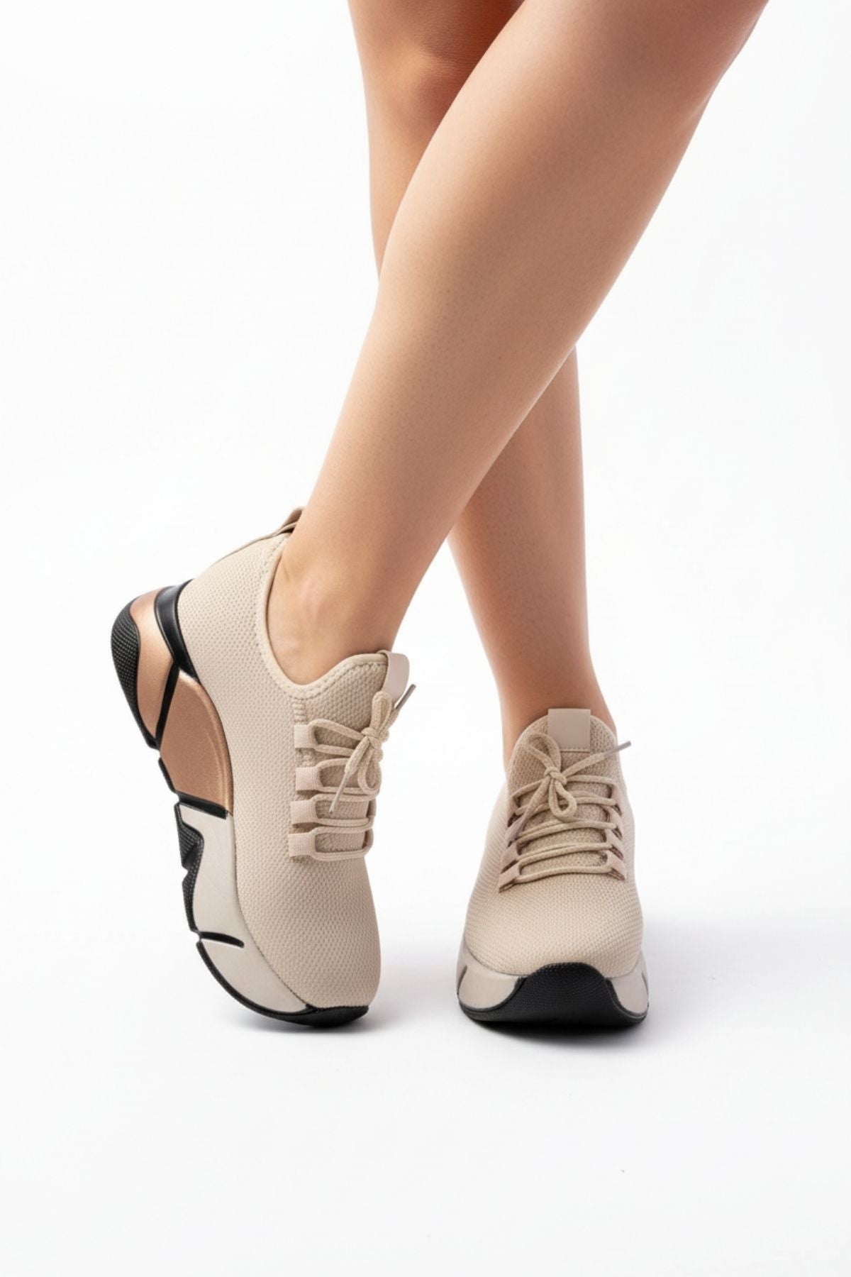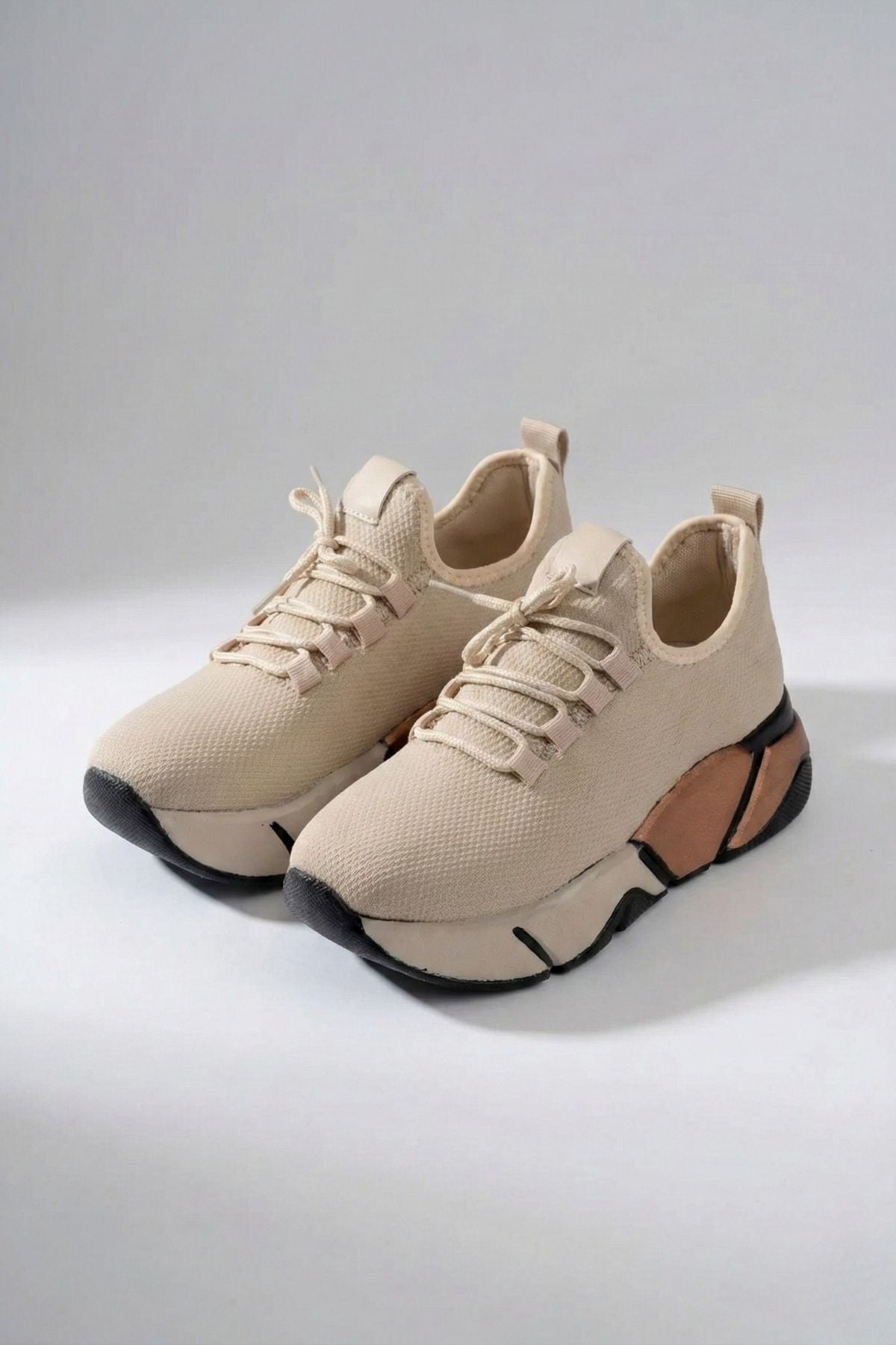 Brumli Bej Bağcıklı Fileli Renkli Taban Günlük Kadın Spor Ayakkabı RS-400BEJ