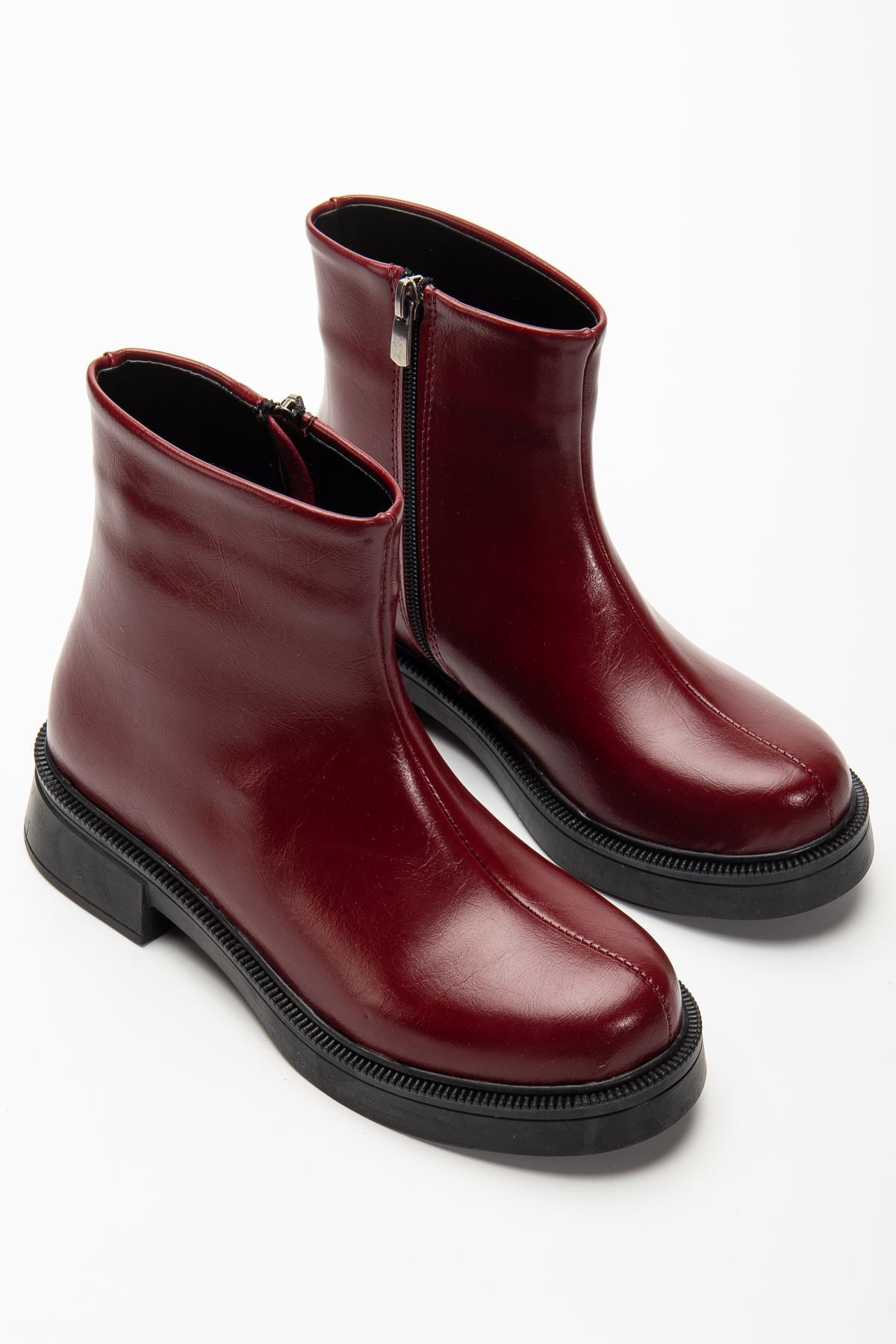 Asian Bordo Kırışık Rugan Fermuarlı Kadın Bot