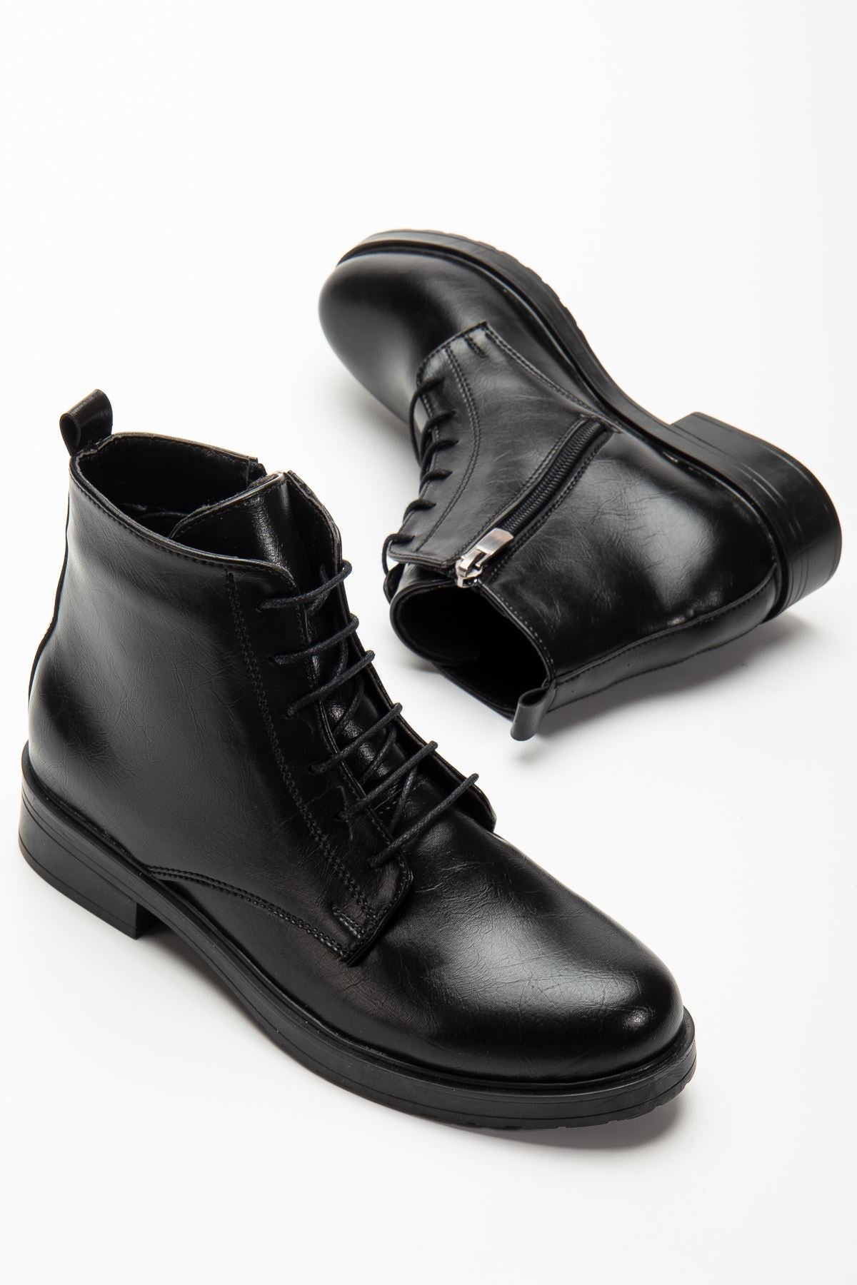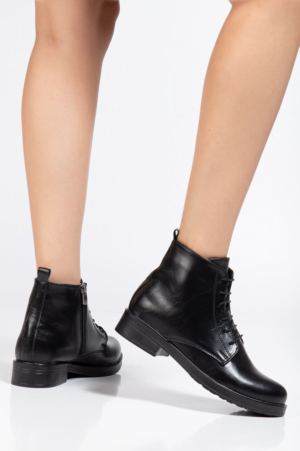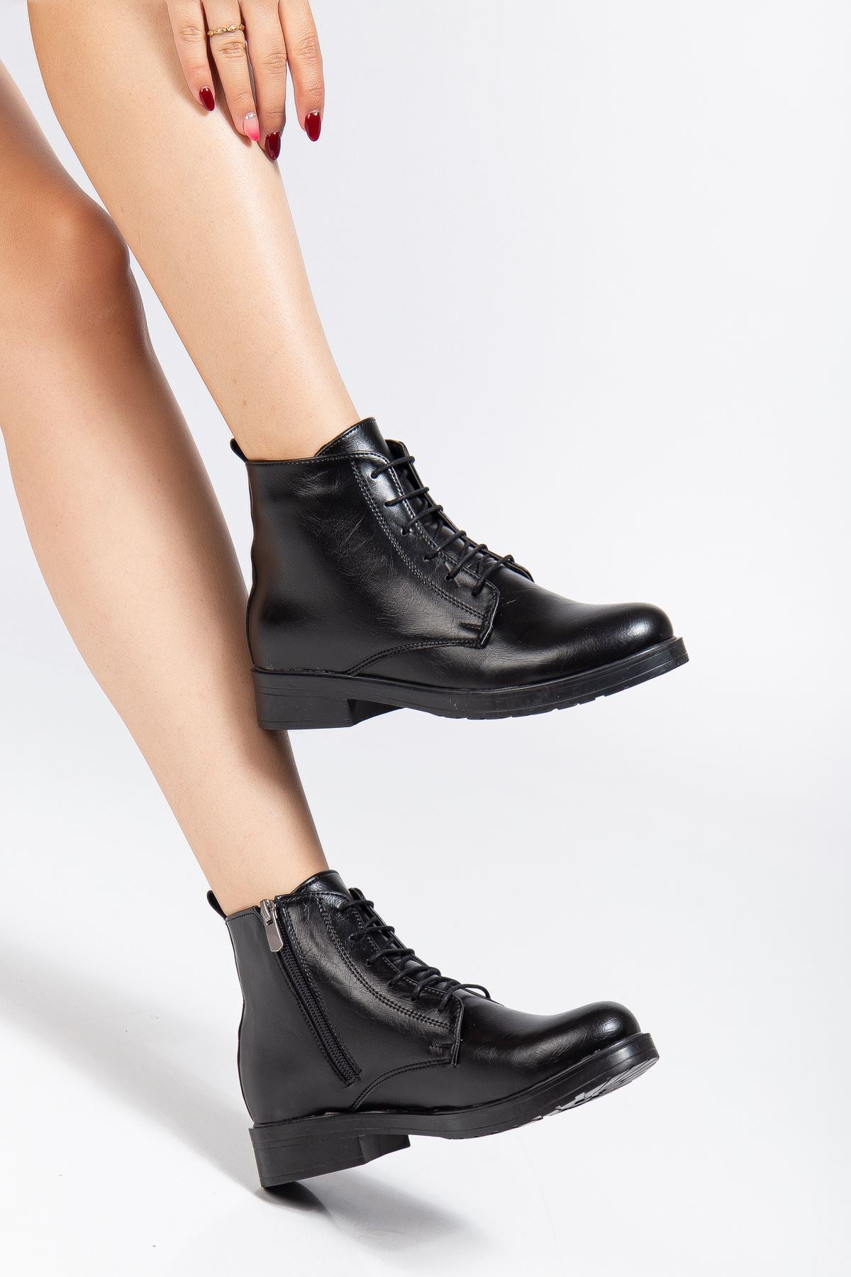 Garsu Siyah Yanki Bağcıklı Fermuarlı Kadın Bot