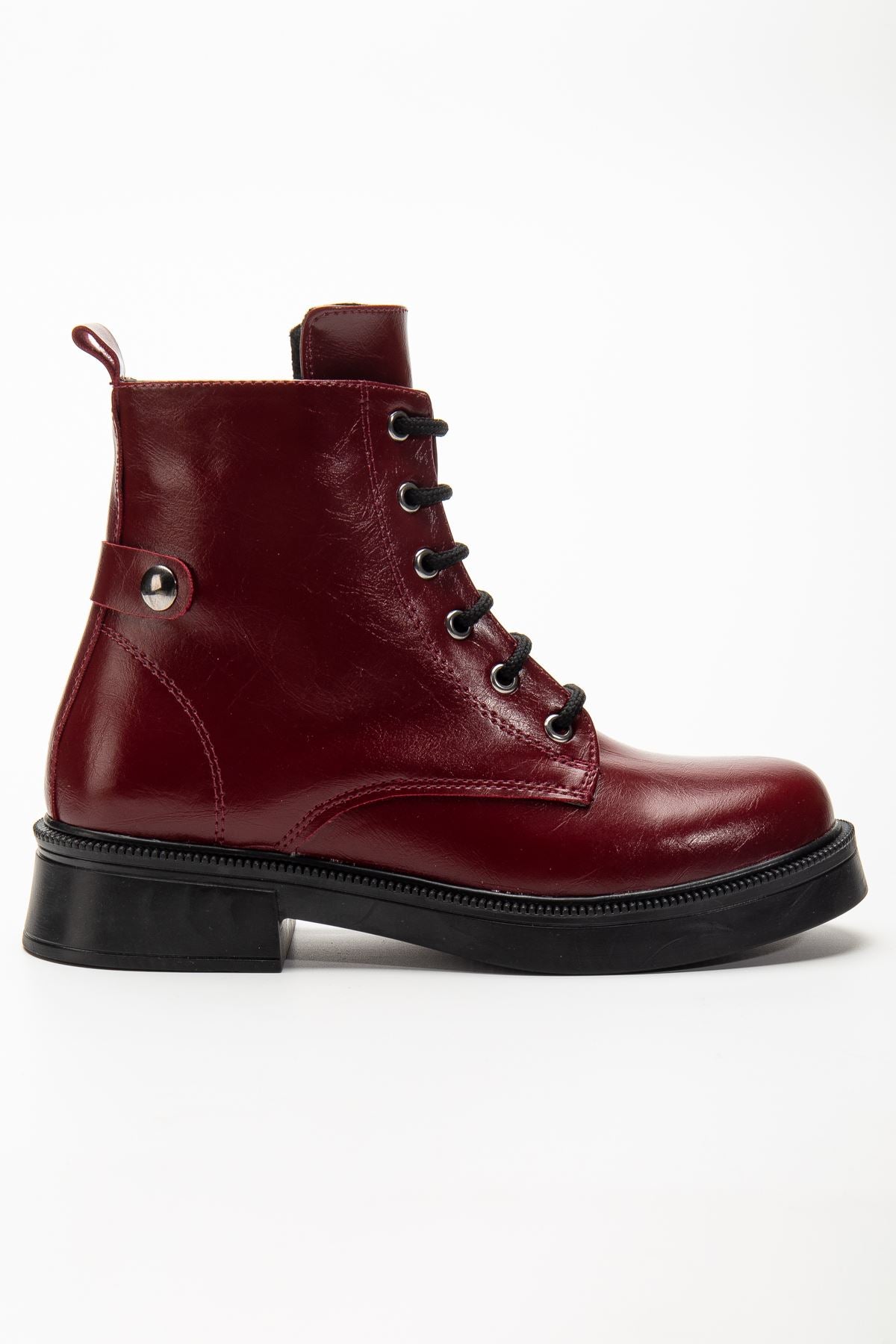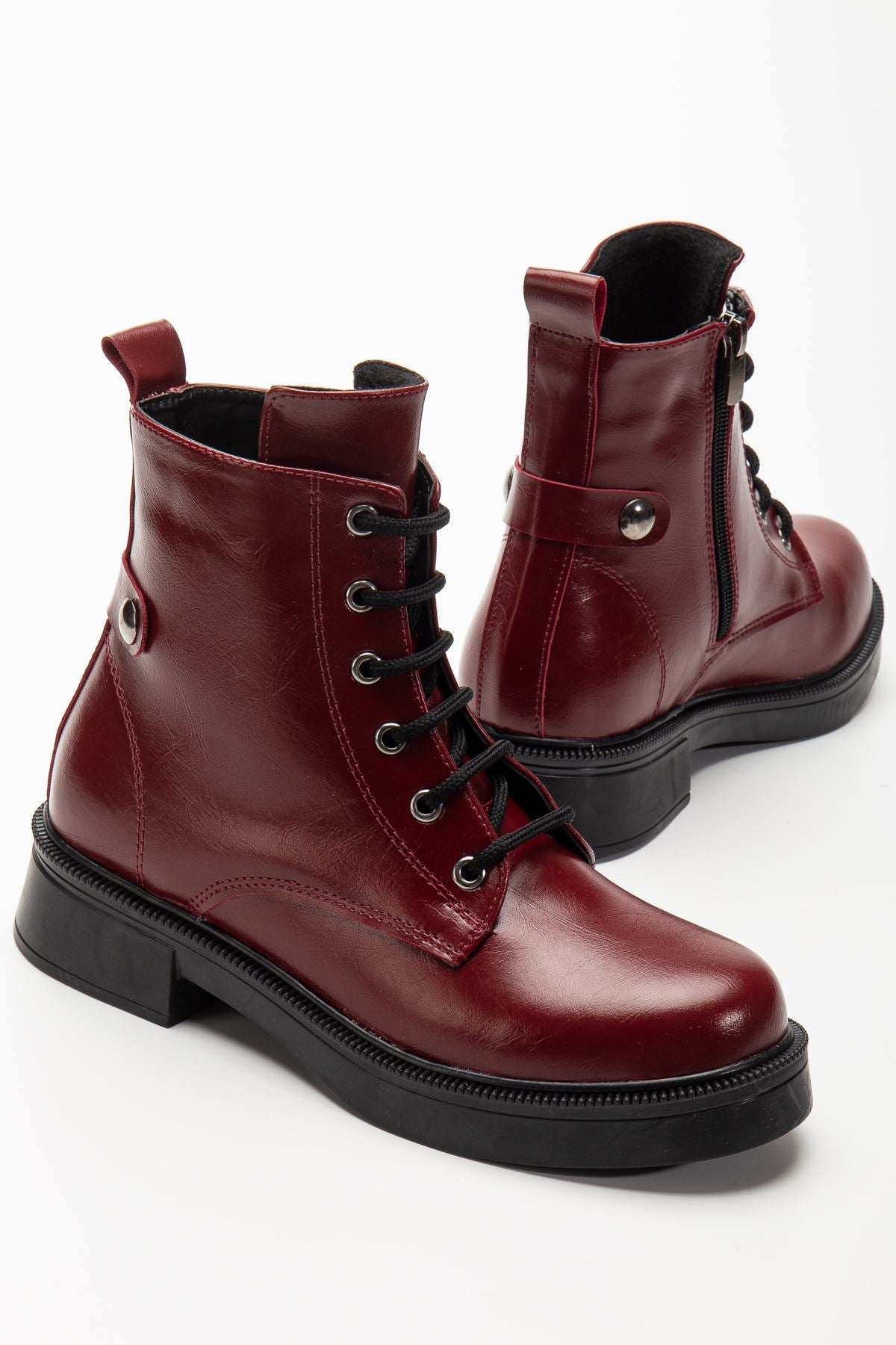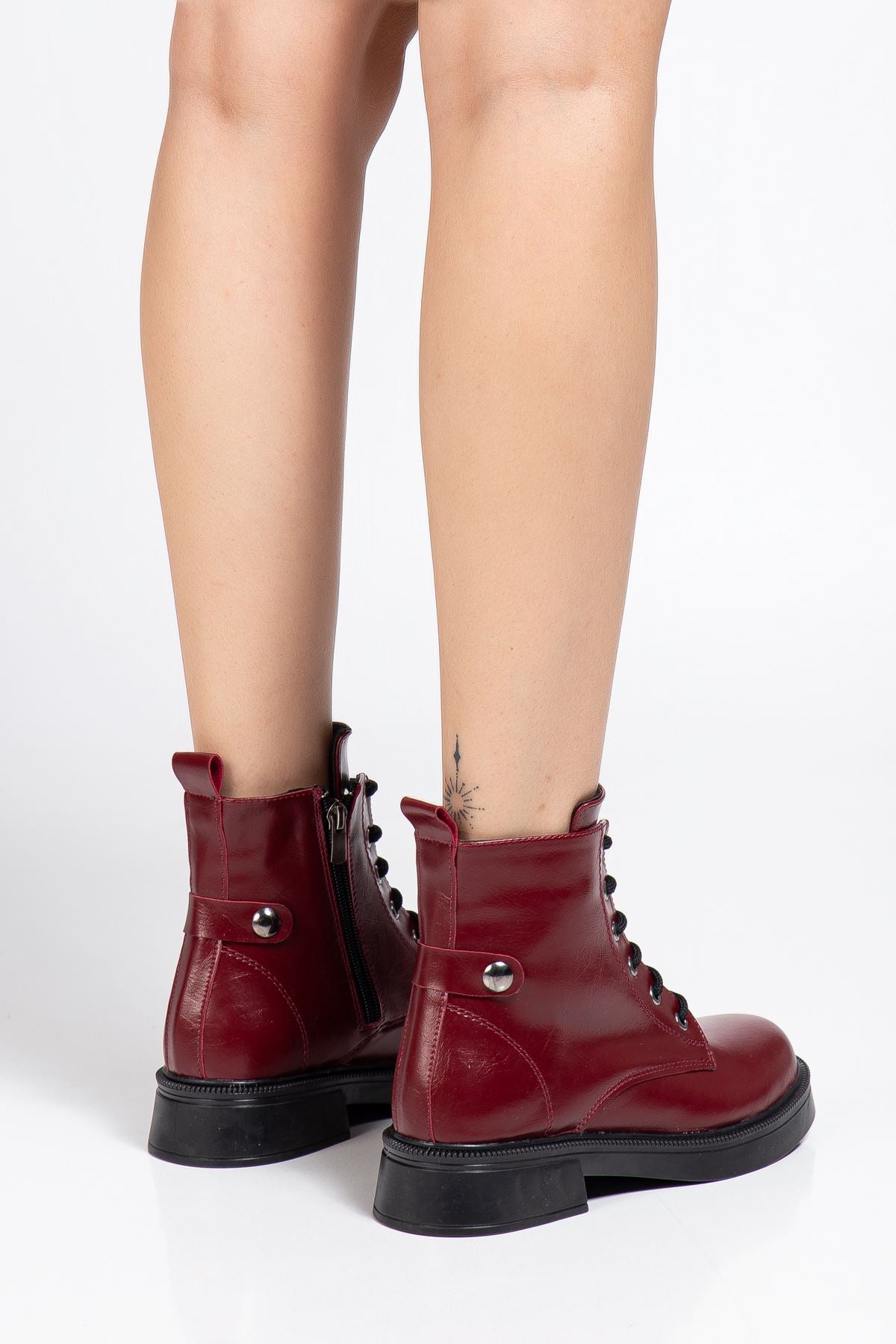 Lauran Bordo Kırışık Rugan Bağcıklı Fermuarlı Kadın Bot