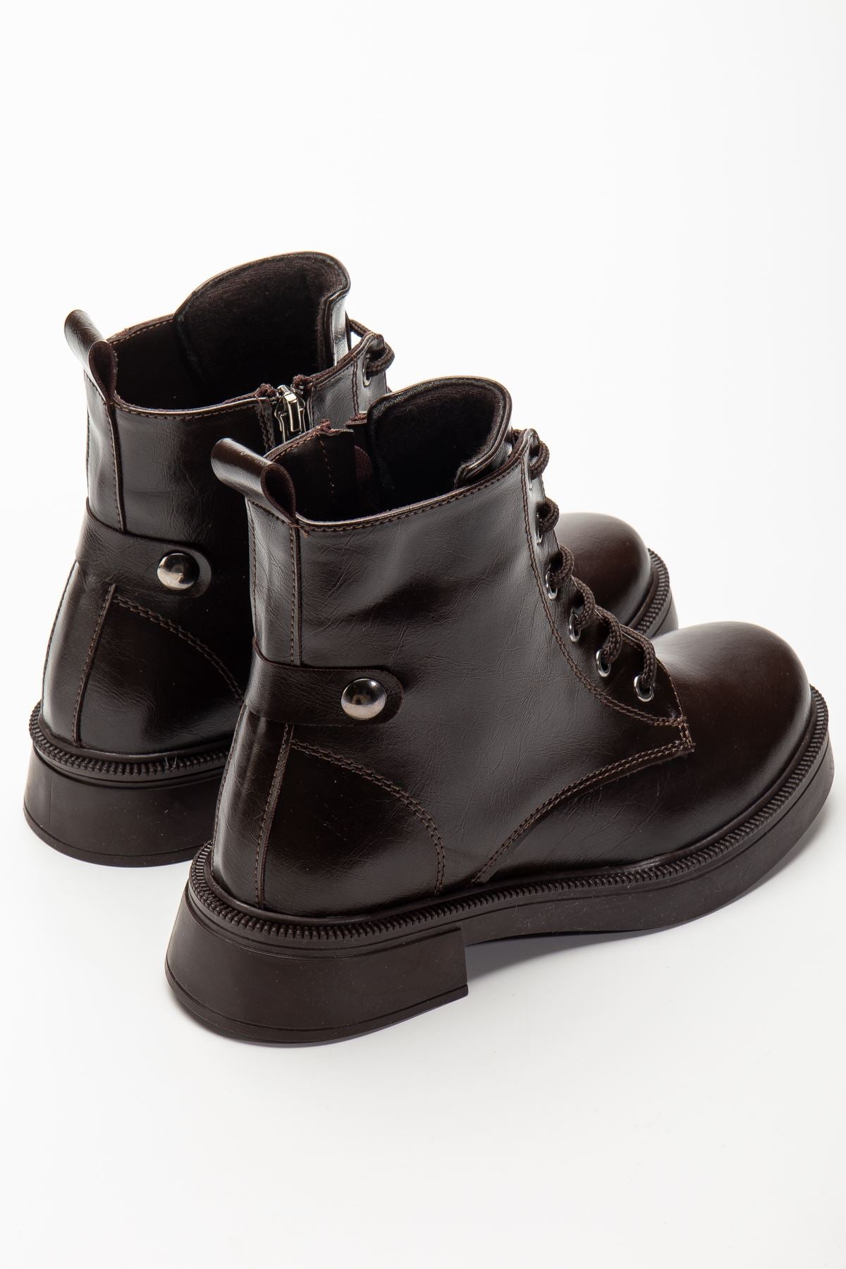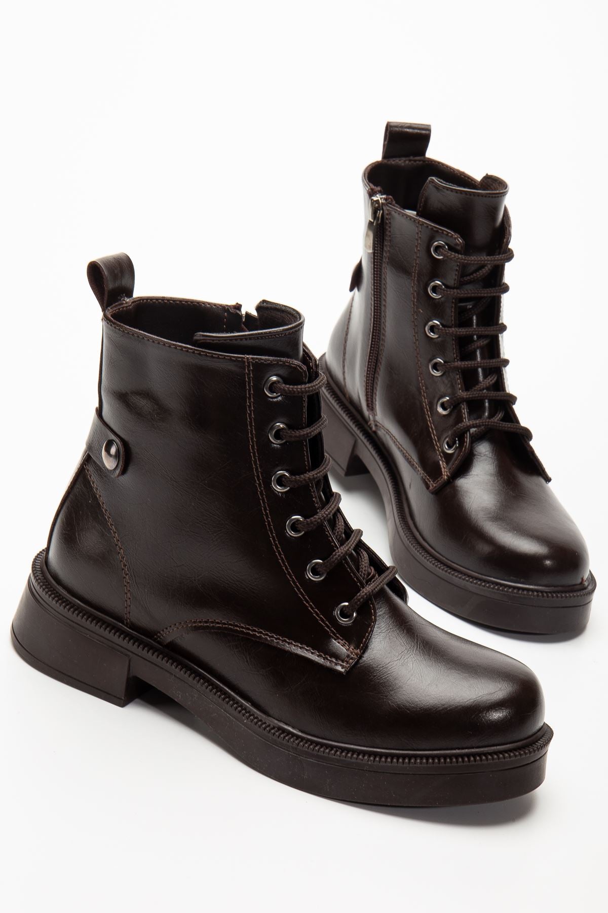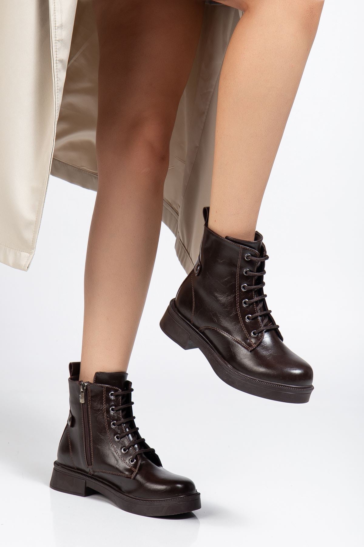 Lauran Kahve Kırışık Rugan Bağcıklı Fermuarlı Kadın Bot