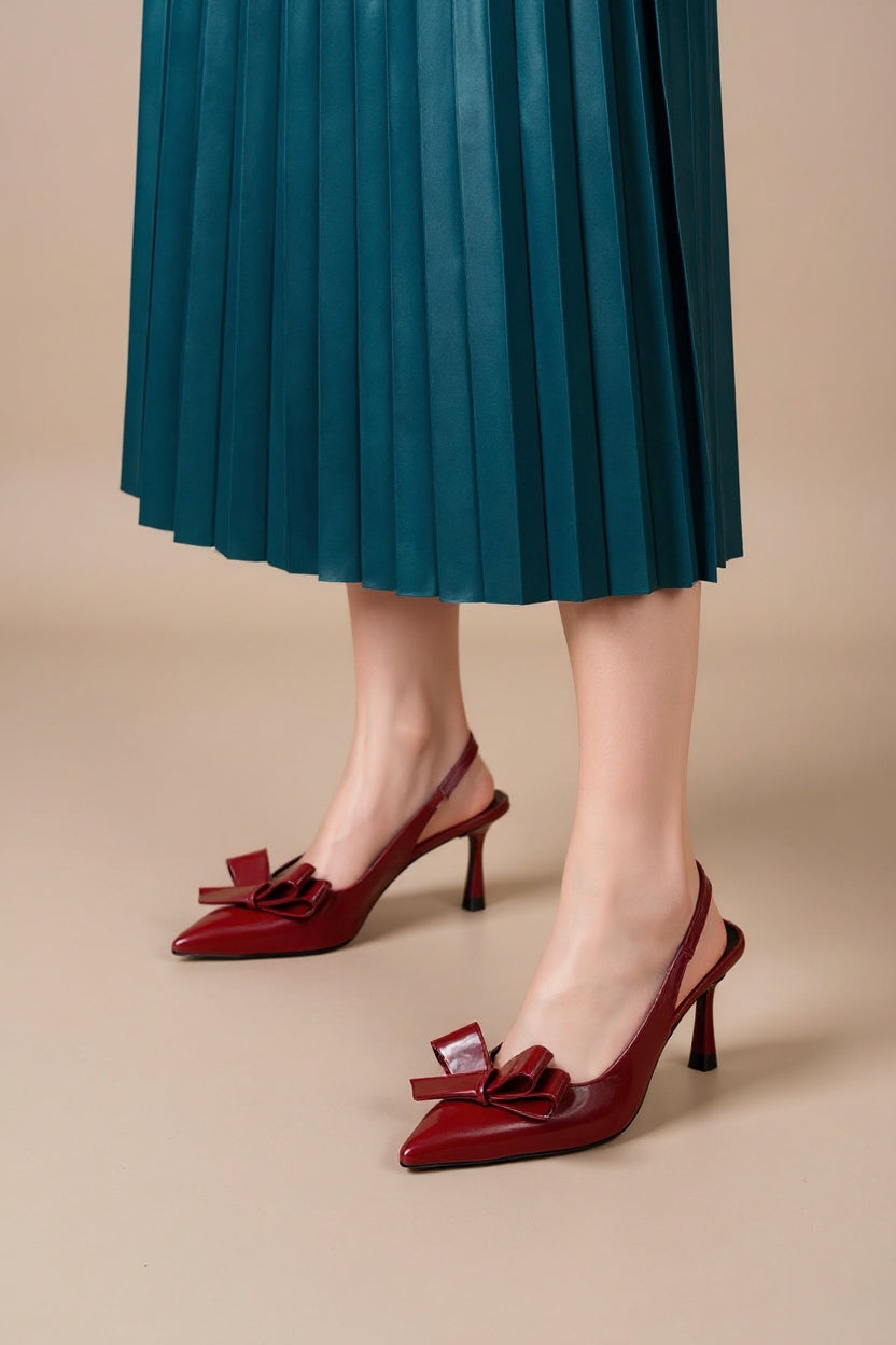 Mierun Bordo Rugan Arkası Açık Fiyonklu Topuklu Ayakkabı