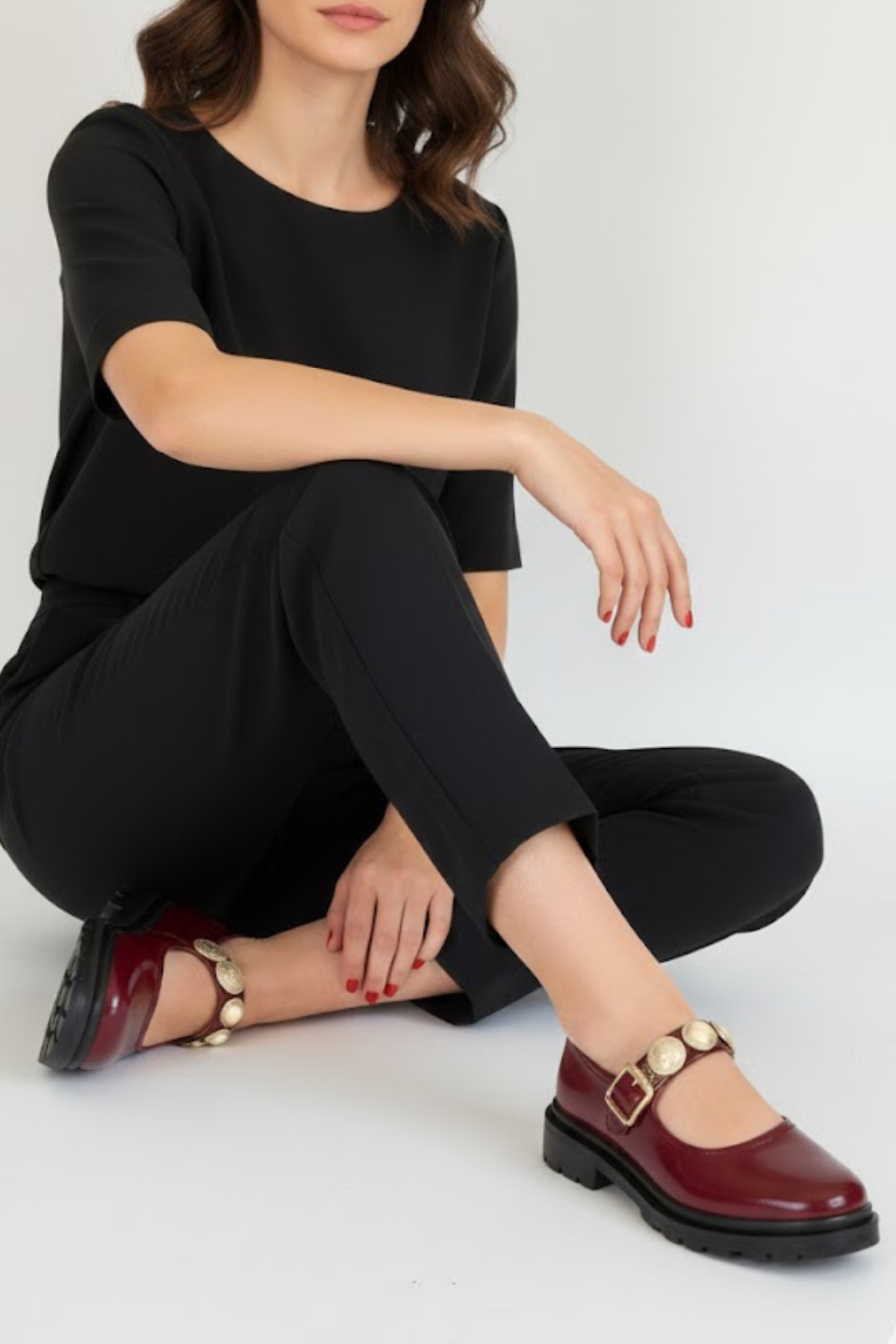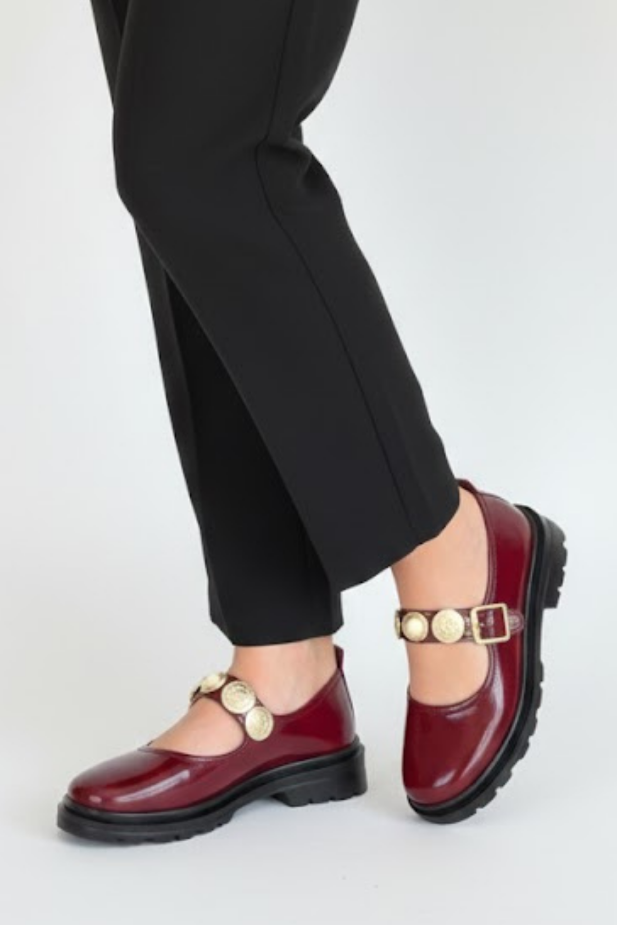 Okira Kadın Bordo Rugan Tokalı Oxford Ayakkabı
