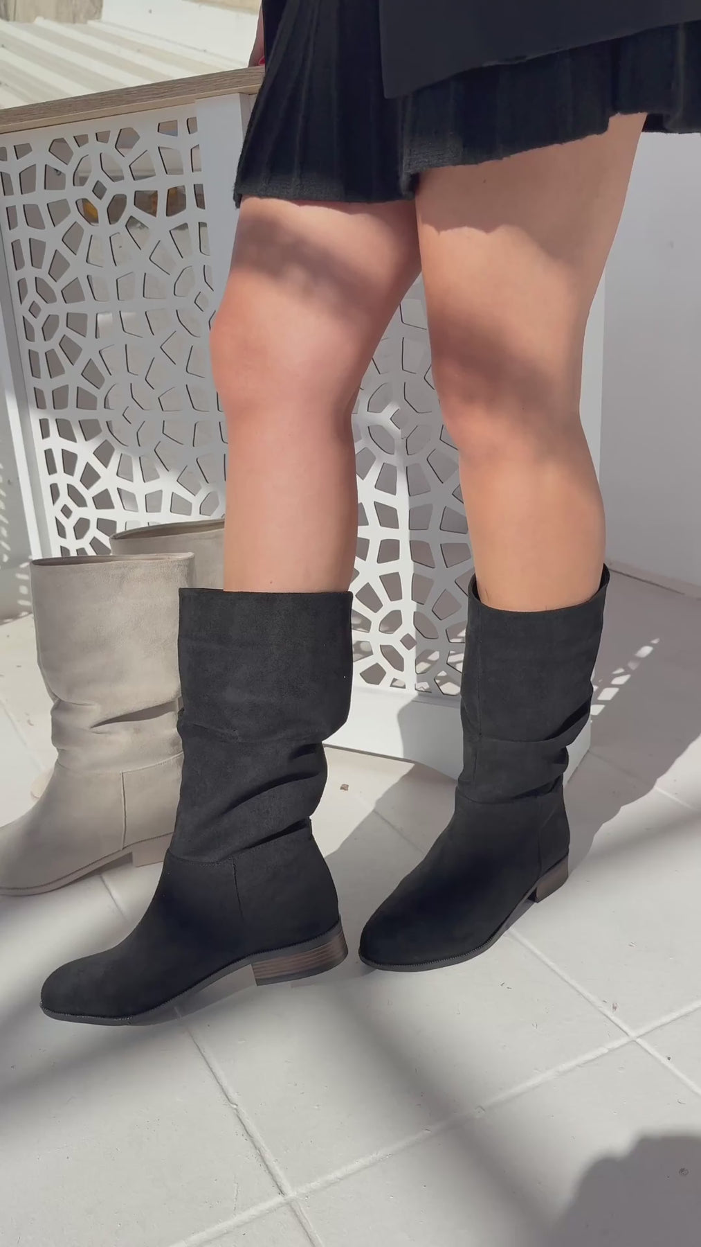 Plod Siyah süet körüklü çizme, modern çizgileri ve zamansız görünümüyle kış sezonunun en güçlü parçası. Yumuşak dokulu dış yüzeyi feminen bir duruş kazandırırken, rahat topuk yapısı uzun süreli kullanımda konfor sunar. Diz altı uzunluğu ile hem elbiselerle hem pantolonlarla mükemmel bir uyum sağlar.