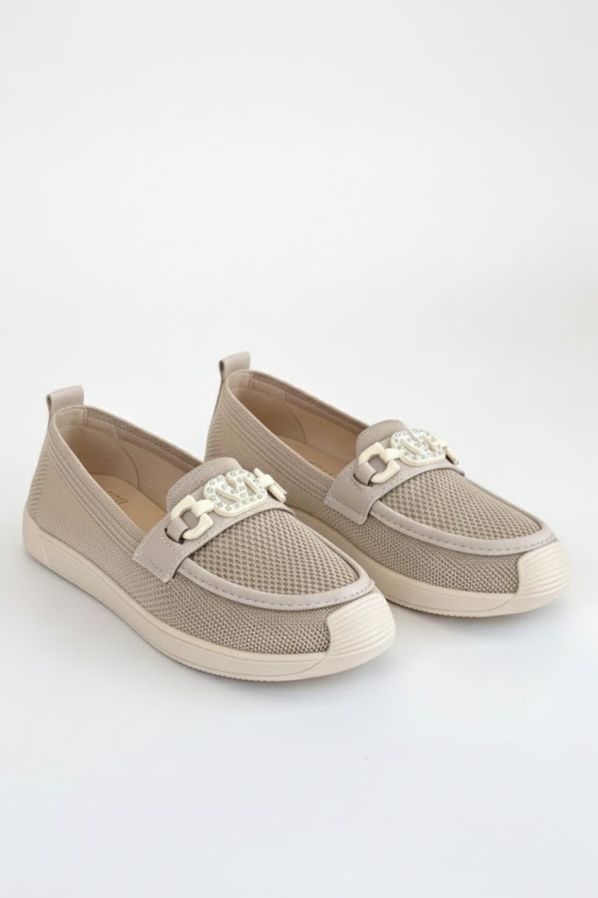 Wata Kadın Bej Örgü Dokulu Babet Ayakkabı