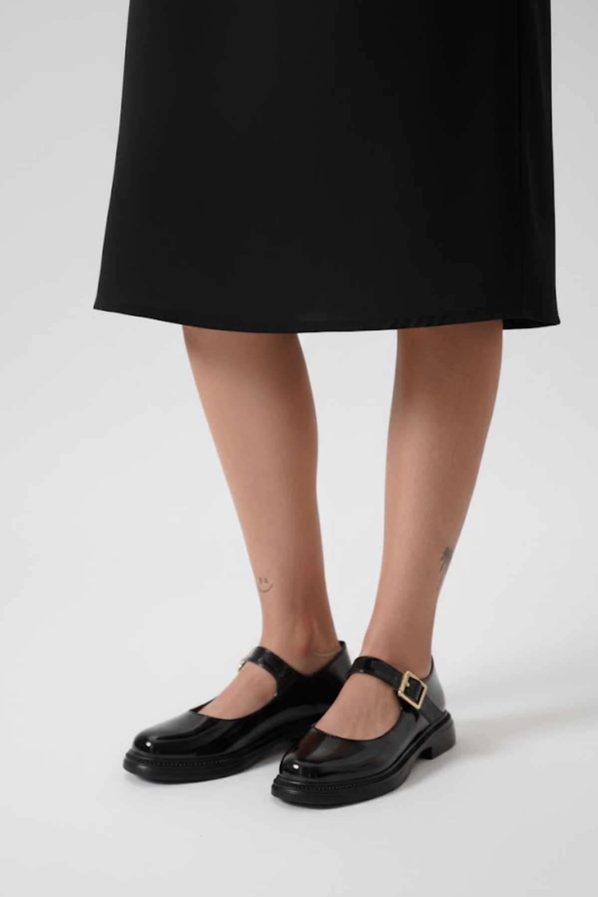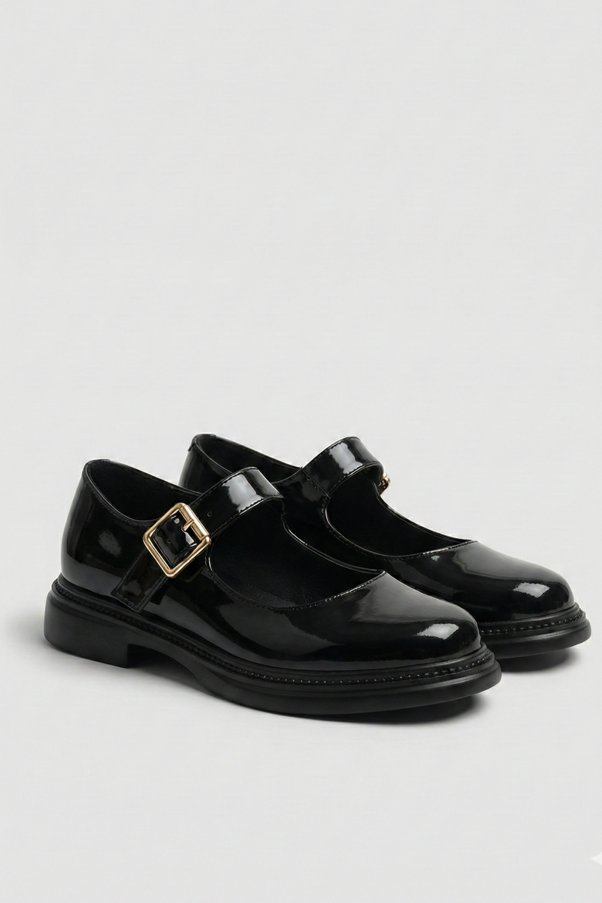 Yokox Kadın Siyah Rugan Tokalı Oxford Ayakkabı