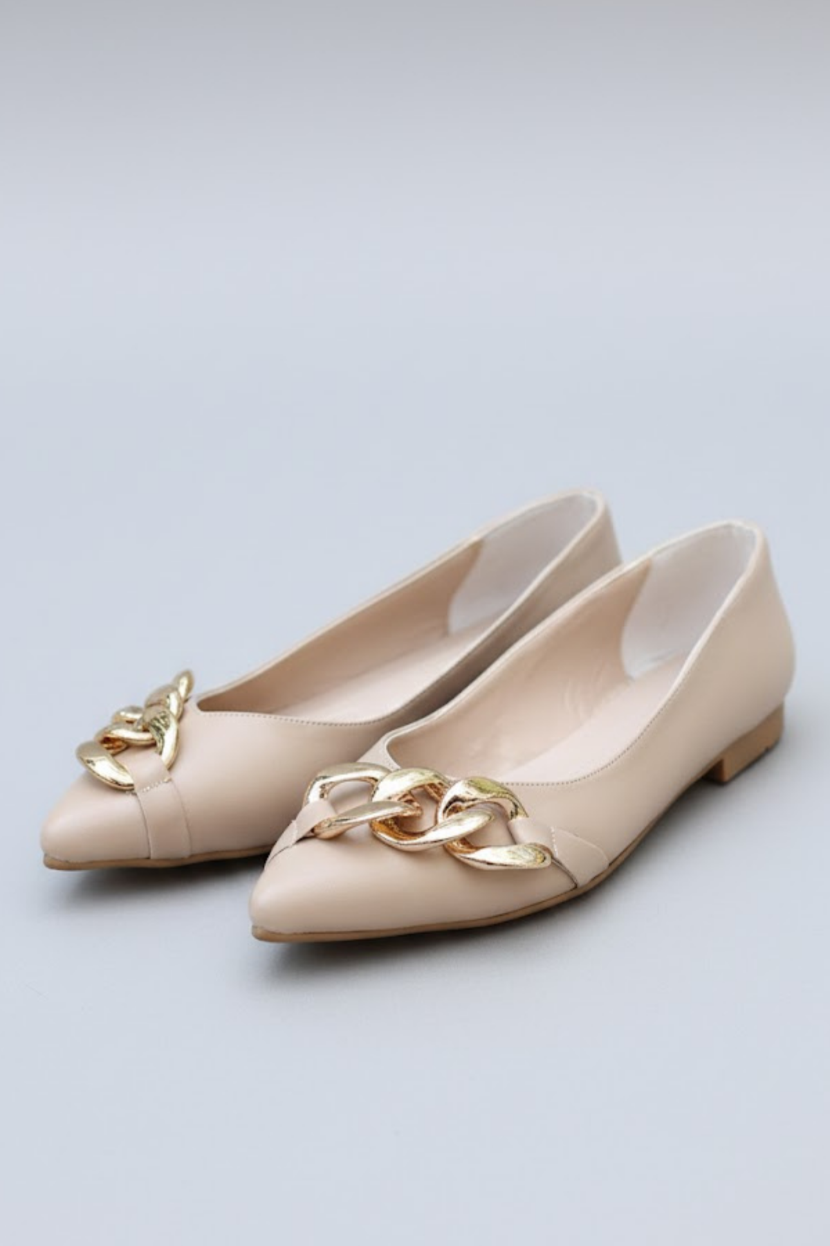 Popi Kadın Nude Zincir Detaylı Babet Ayakkabı