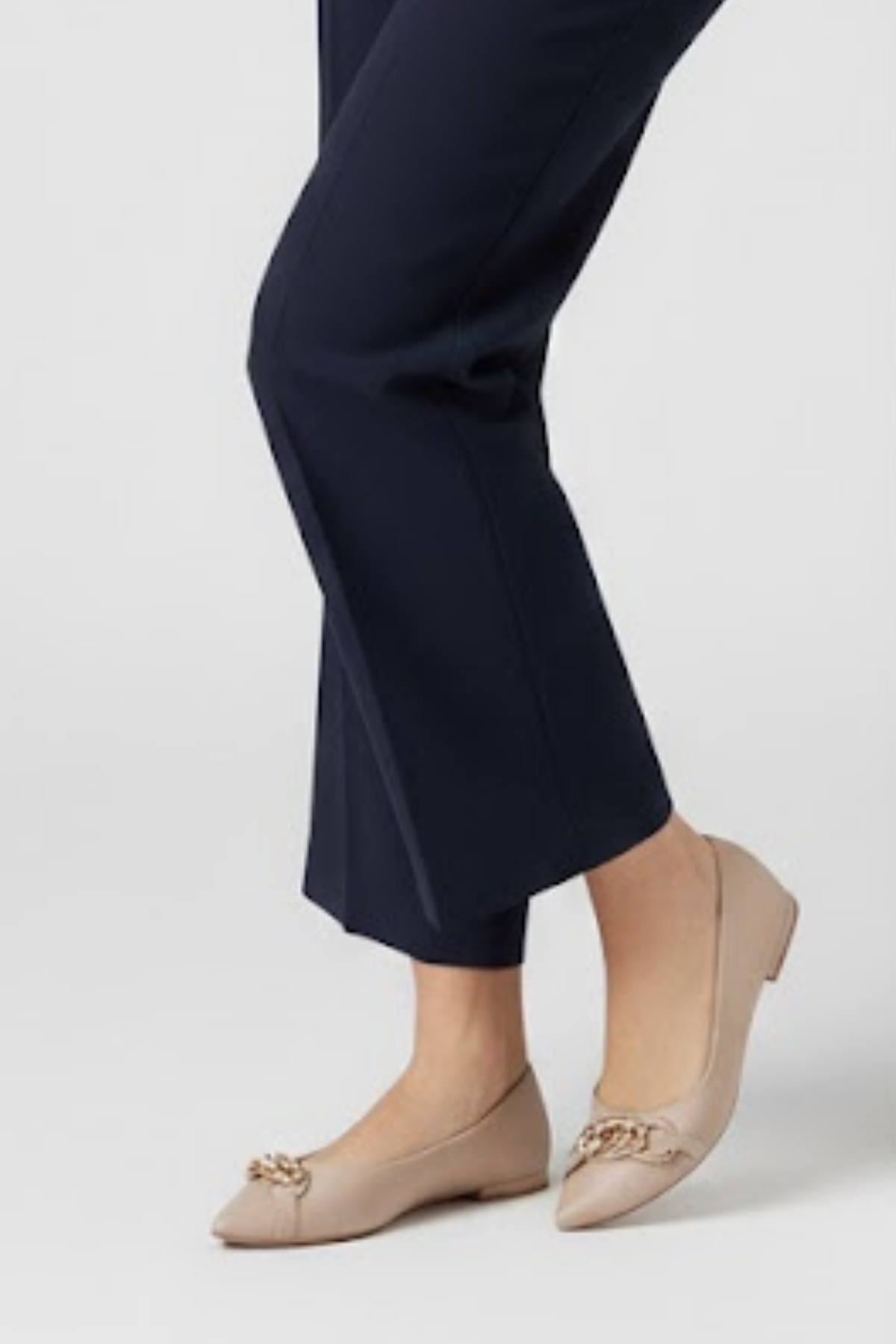 Zarif sivri burun formu ve ön kısımda yer alan metal zincir detayıyla Popi modeli, sade tasarımına güçlü bir karakter kazandırır. Günlük kombinlerden daha özenli görünümlere kadar geniş bir kullanım alanı sunan bu babet, hafif yapısı sayesinde gün boyu rahat bir deneyim sağlar. Dengeli taban yapısı ve ayağı saran kalıbı ile konforlu bir duruş sunar.