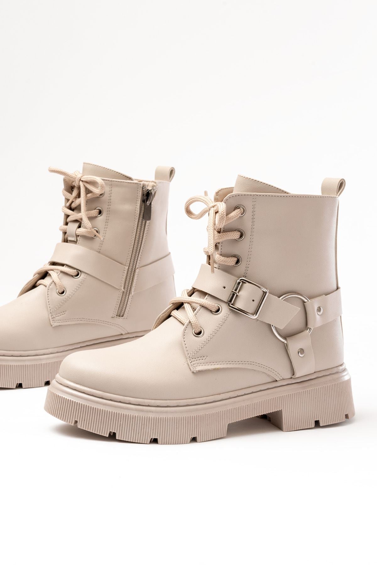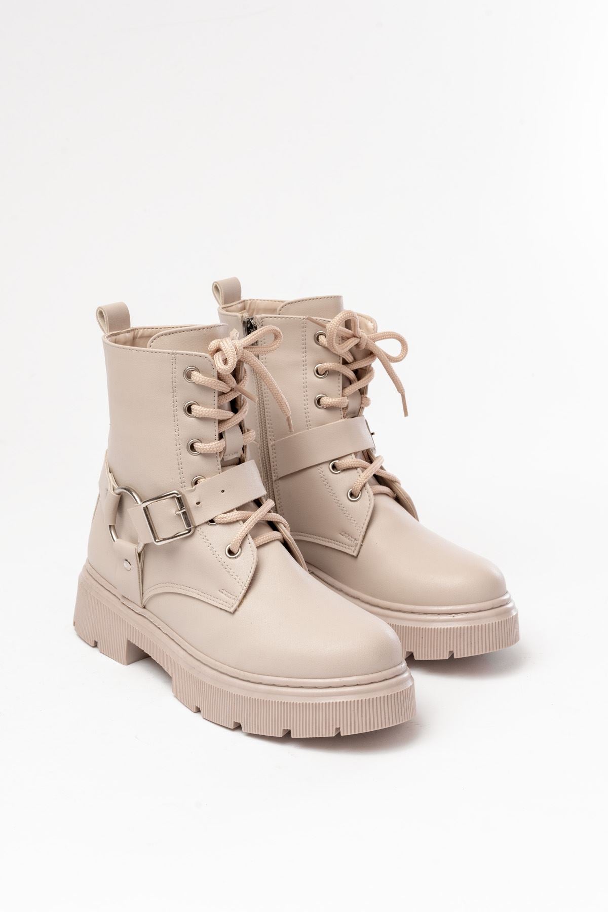 Ahuse Bej Toka Aksesuarlı Fermuarlı Kadın Bot