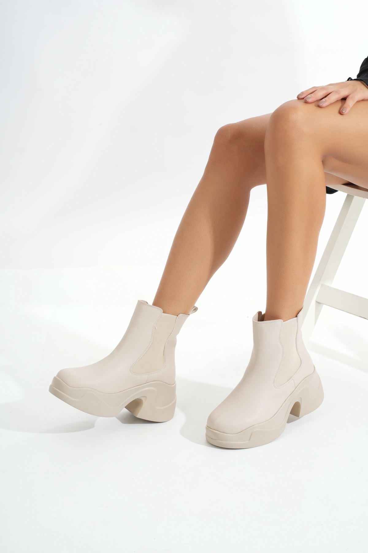 Belunya Bej Yüksek Tabanlı Lastikli Kadın Bot