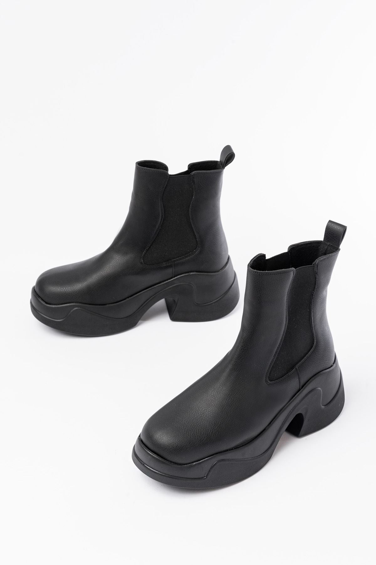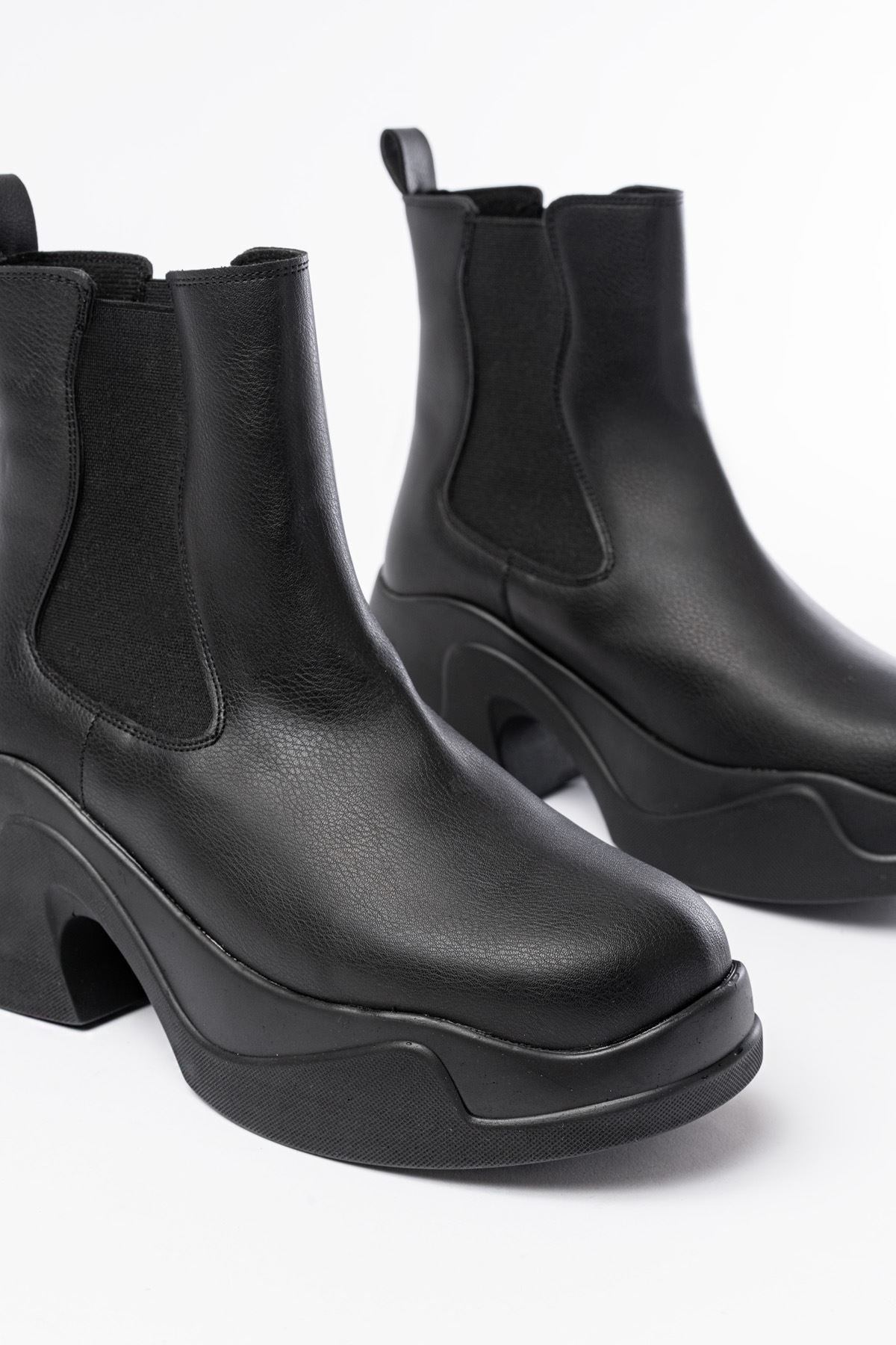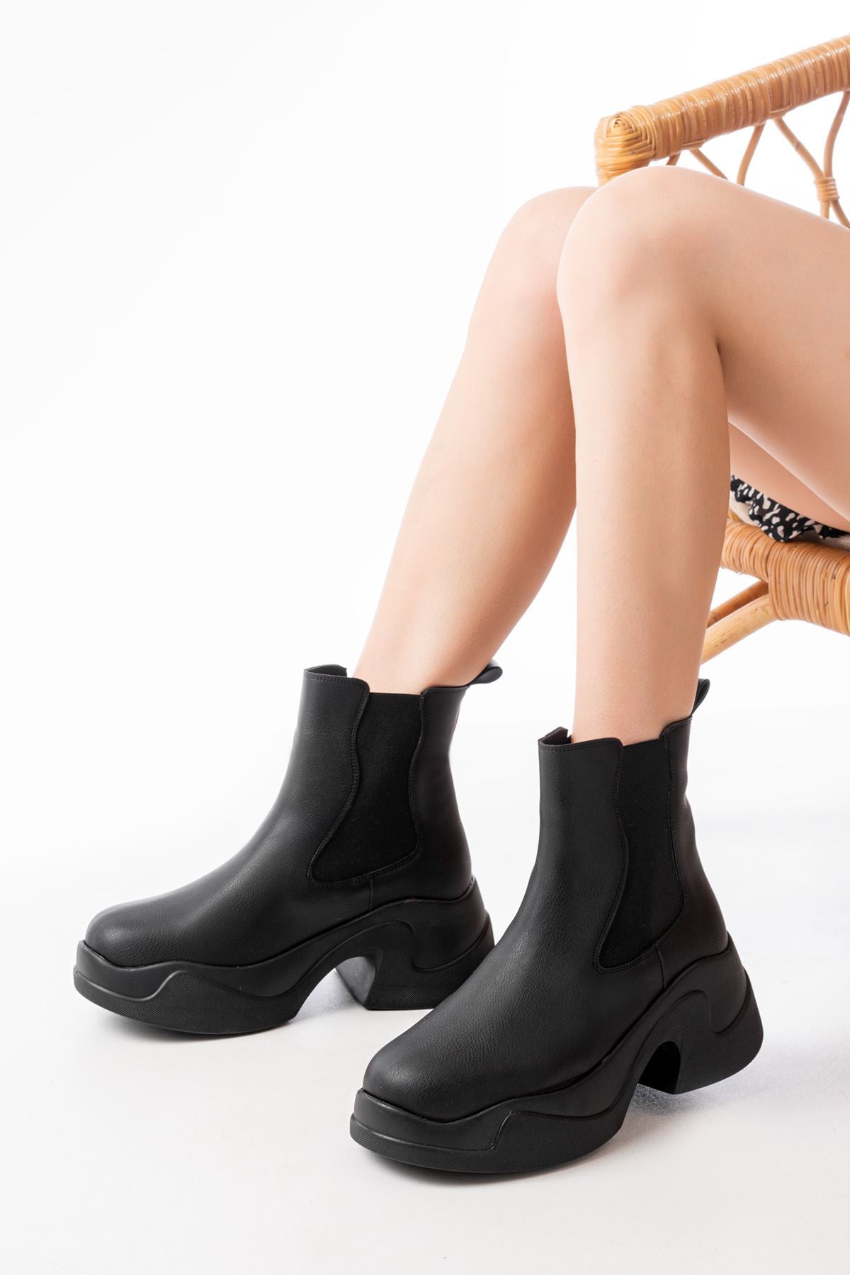 Belunya Siyah Yüksek Tabanlı Lastikli Kadın Bot