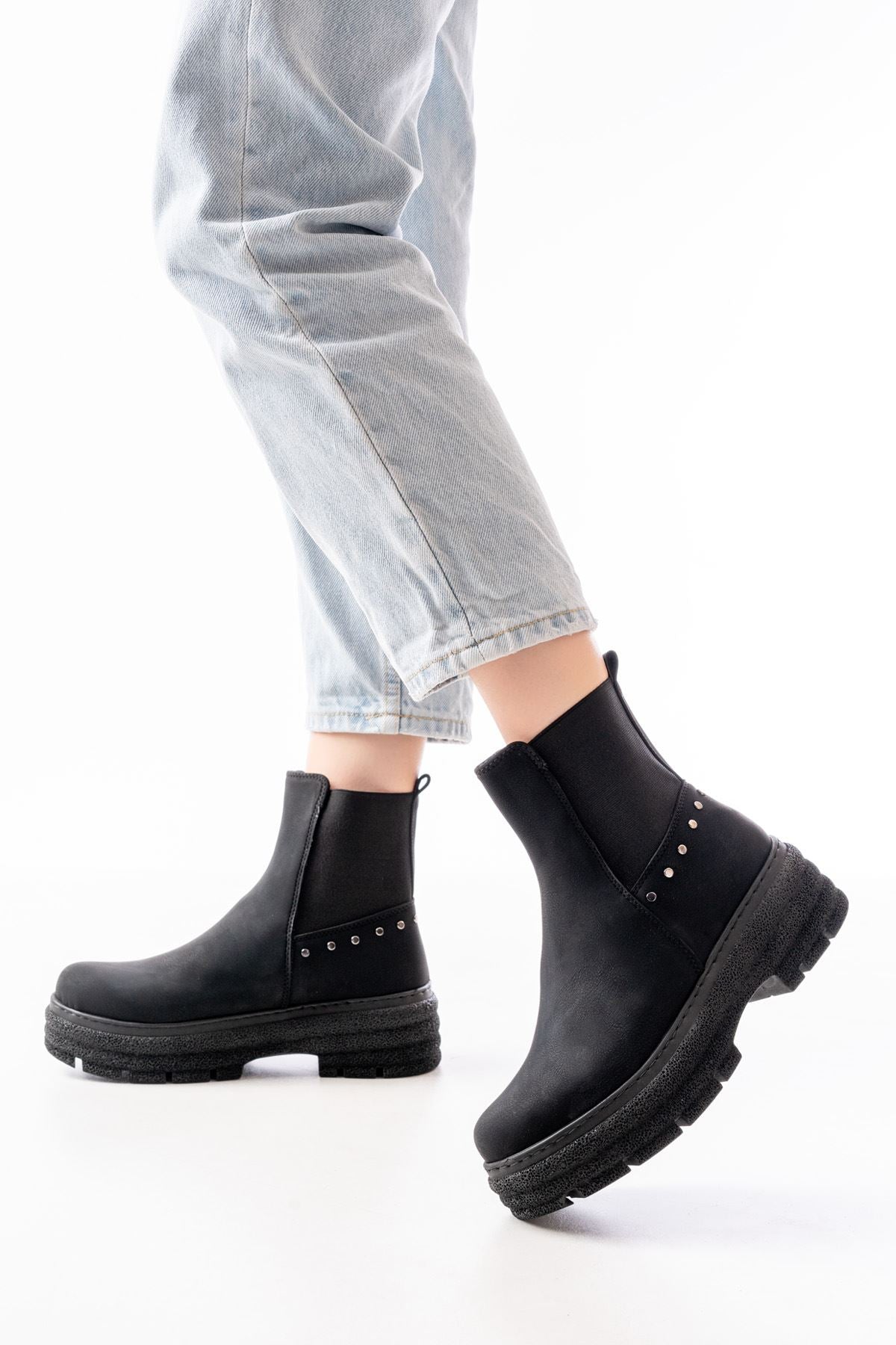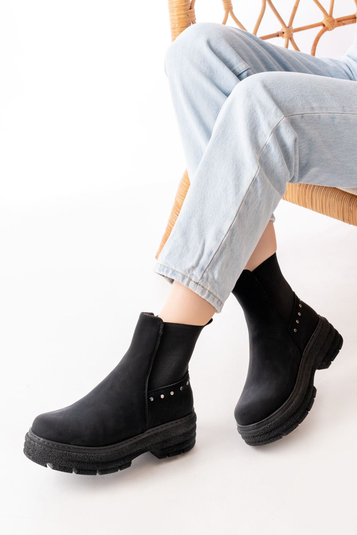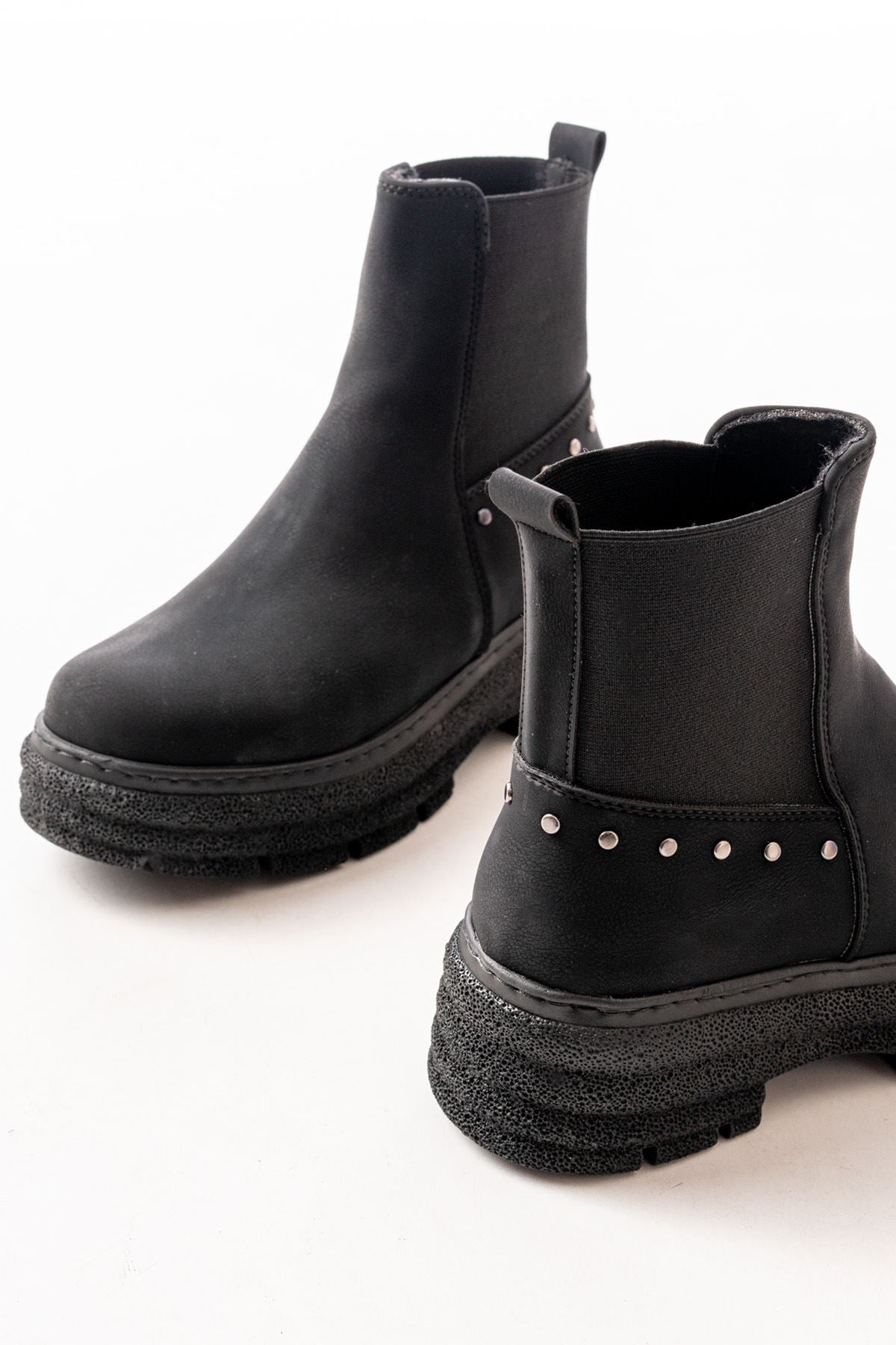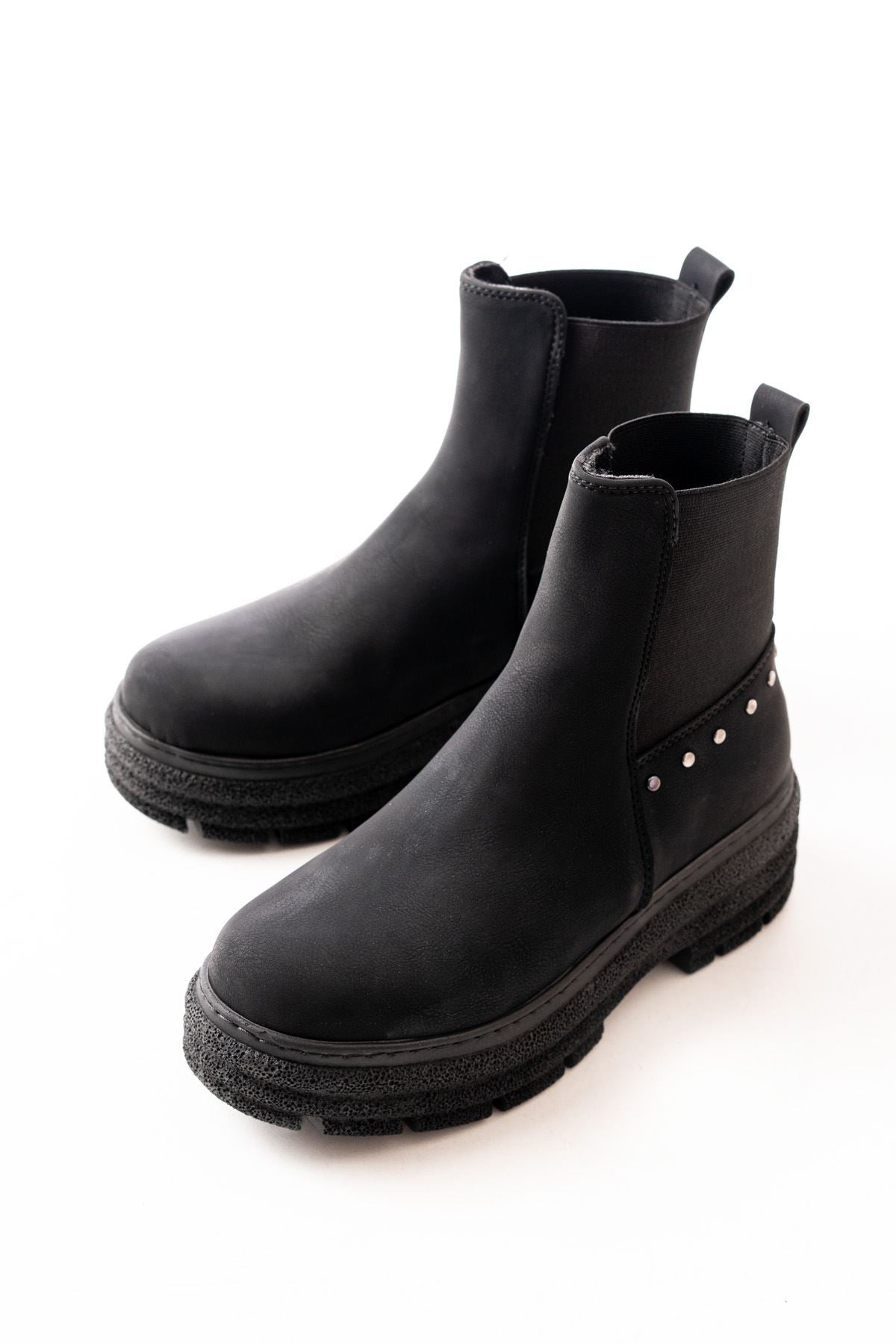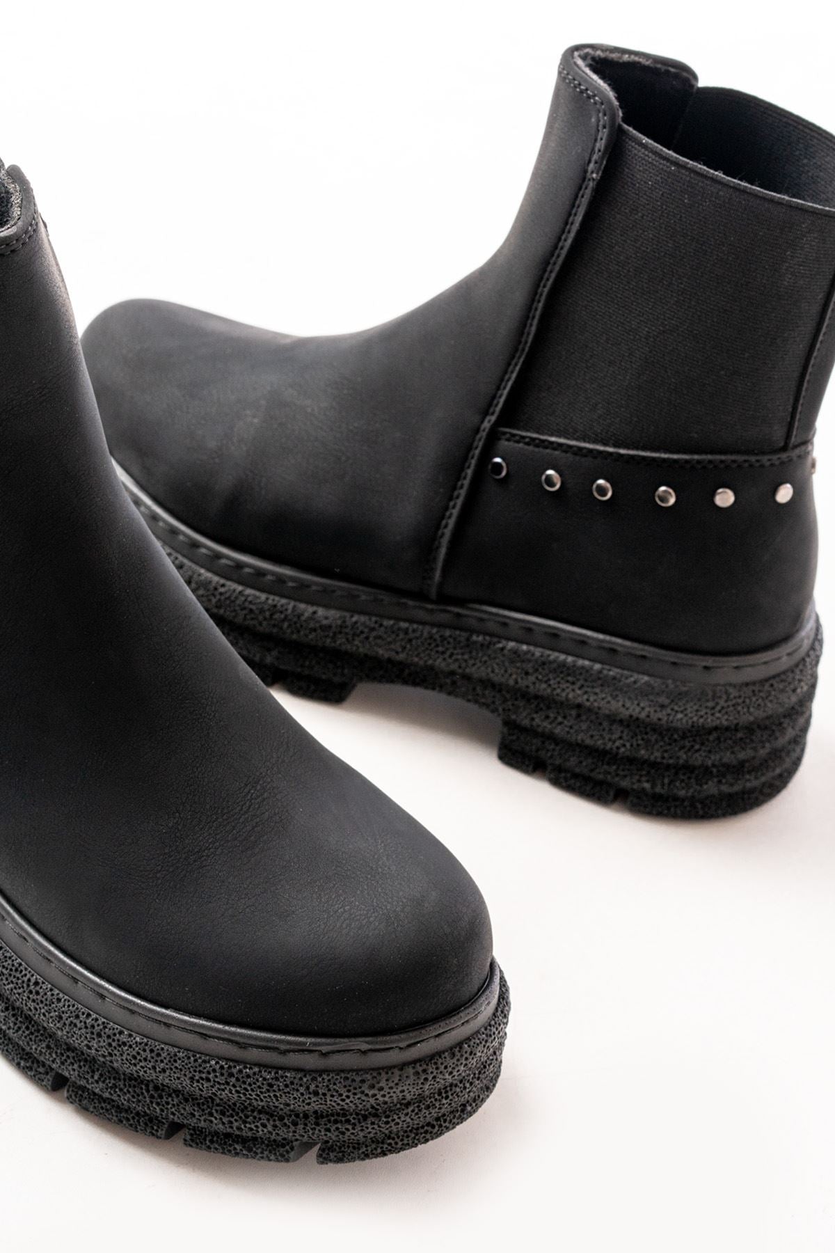 Janese Siyah Zümrüt Düz Topuklu Lastikli Kadın Bot