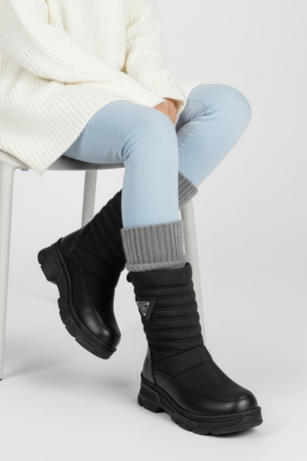 Levan Kadın Kalın Tabanlı Siyah Mat Kar Botu