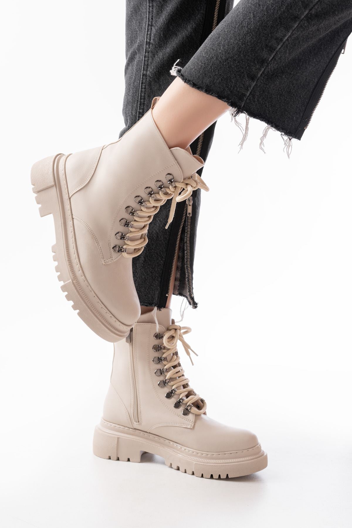 Nayza Bej Bağcıklı Fermuarlı Kadın Bot