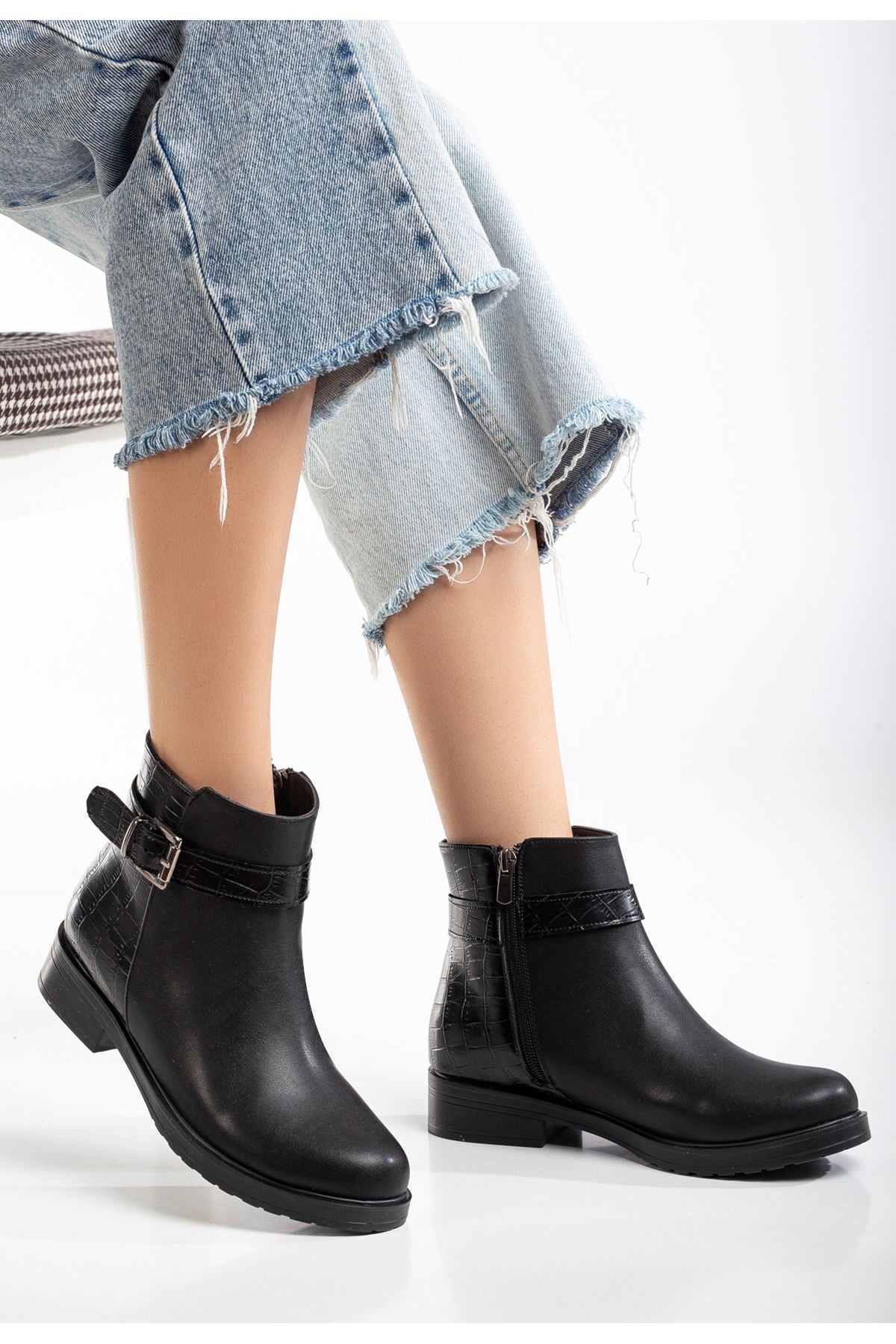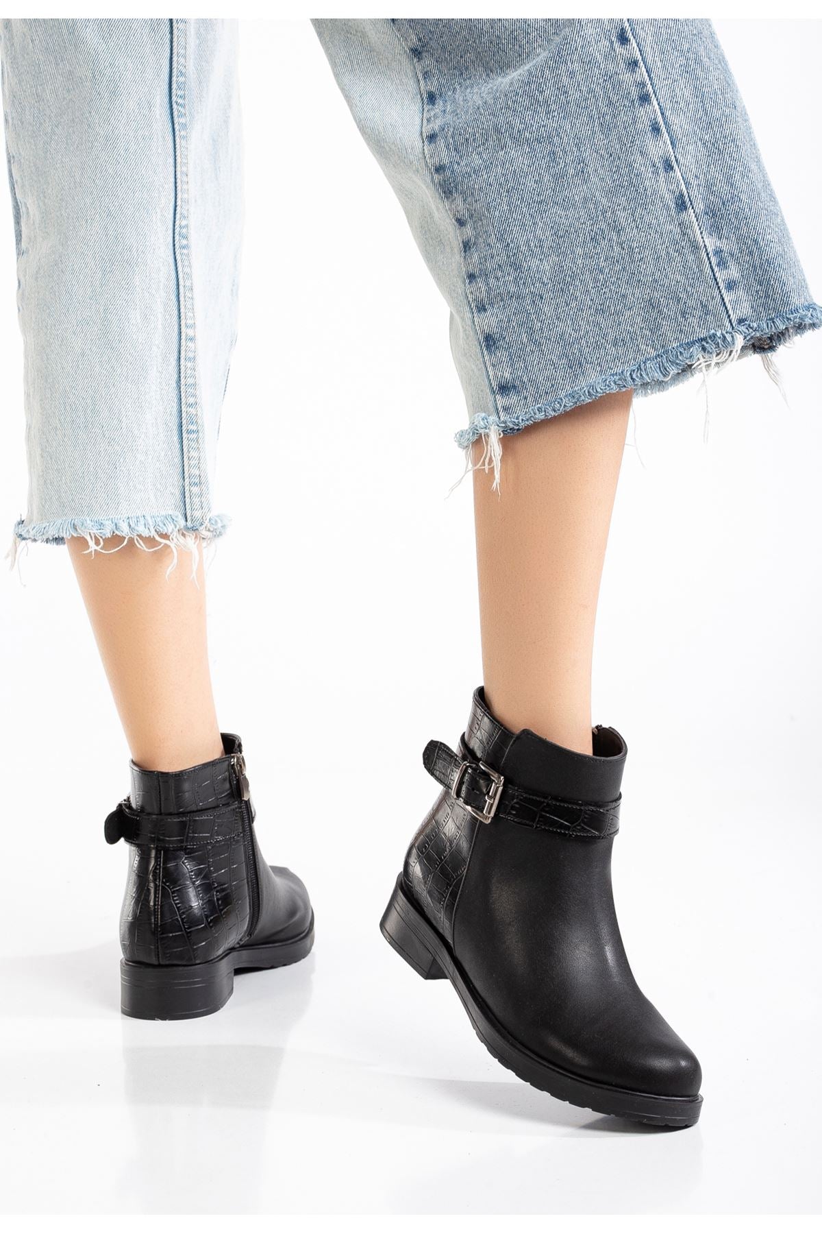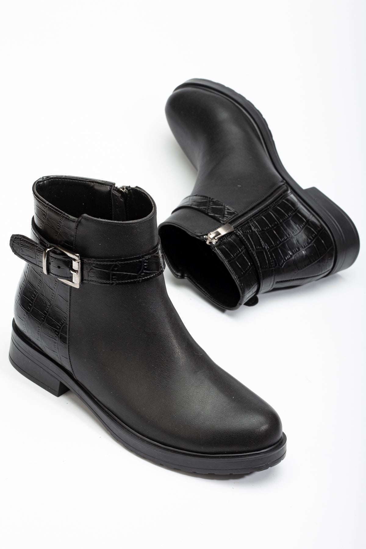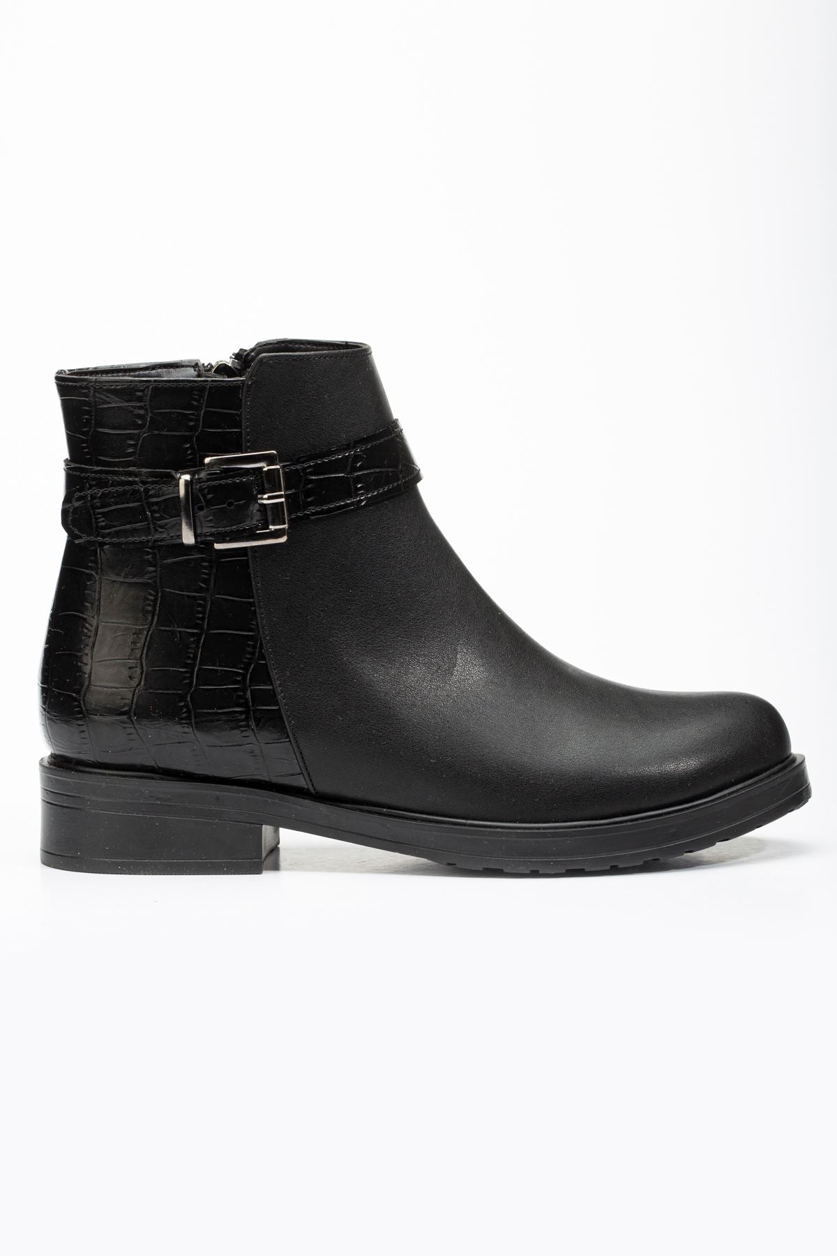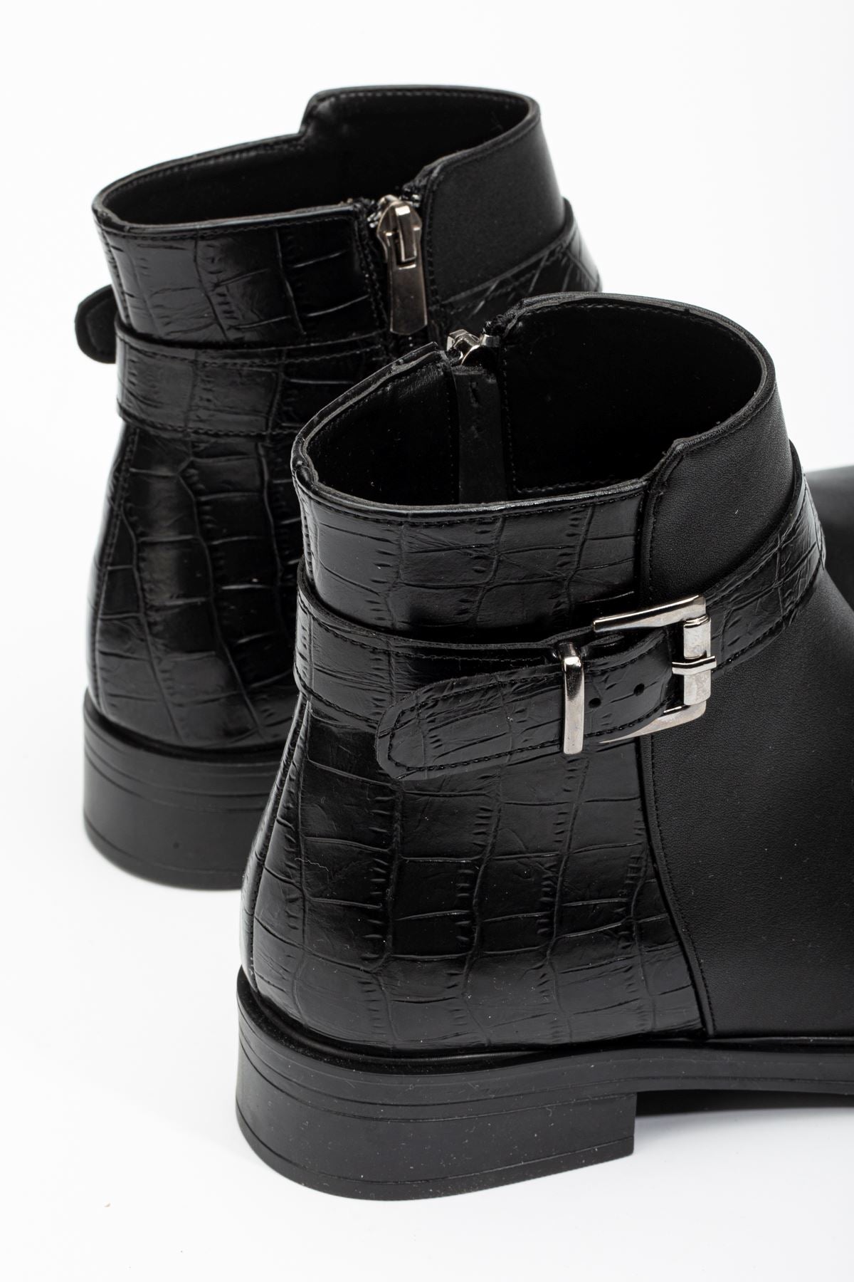 Alena Siyah Kroko Toka Aksesuarlı Fermuarlı Kadın Bot