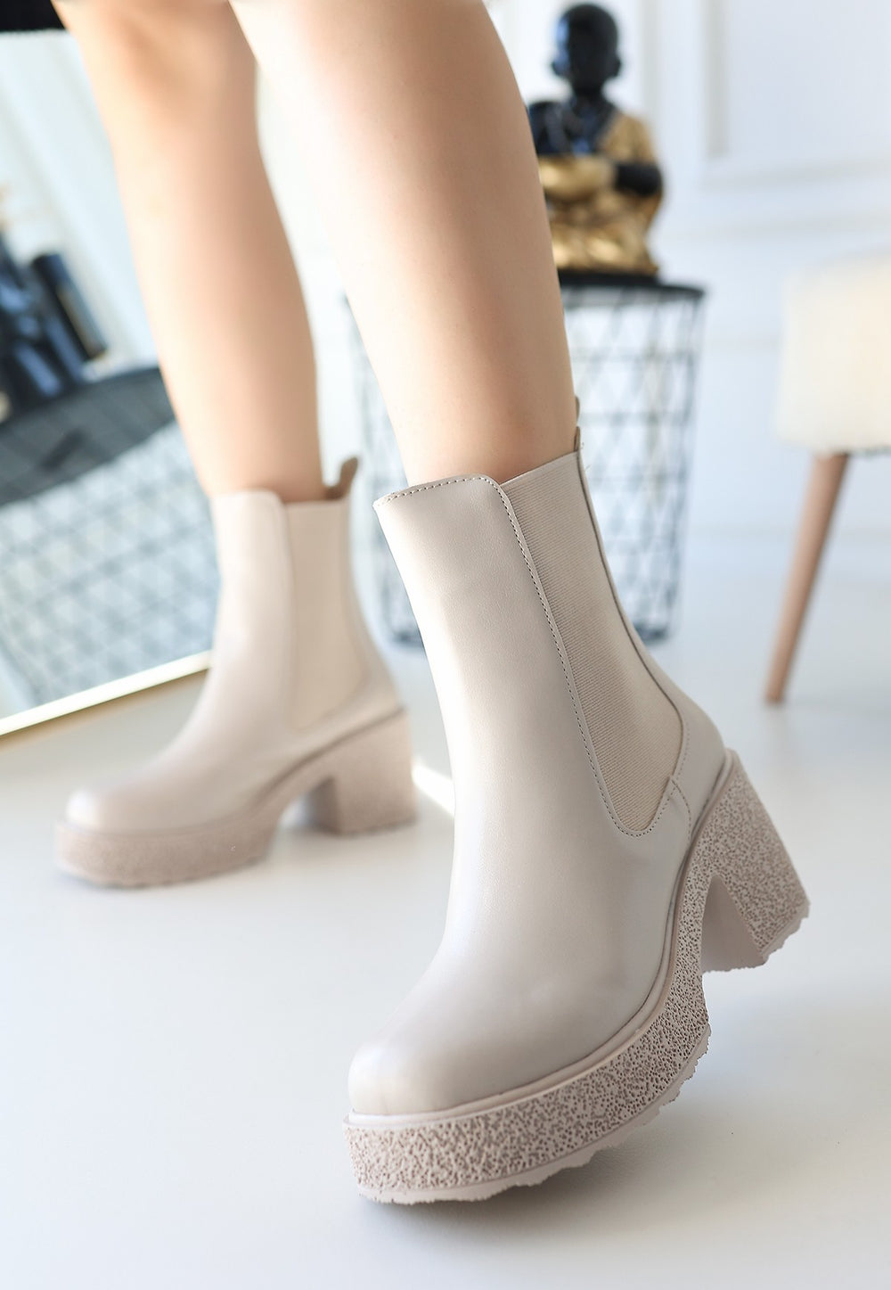 Chelsea Botlar: Yan kısımlarındaki lastik detaylarıyla bilinen Chelsea botlar, zamansız bir klasiği temsil eder. İlk olarak erkek ayakkabısı olarak popüler olsa da, kadın modasında da güçlü bir yer edinmiştir. Bu modellerde fermuar yerine yan lastik bantlar kullanıldığı için ayak bileğini kavrar ve giyip çıkarma süreci oldukça rahattır. Kot pantolon, elbise veya eteklerle kombinleyerek hem rahat hem de modern bir tarz yakalayabilirsiniz. Özellikle düz tabanlı Chelsea botlar, günlük giyim için mükemmel bir alternatiftir.