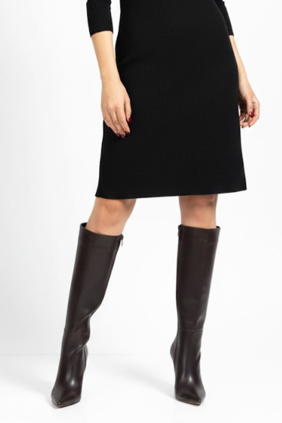 Modern çizgisi ve zarif siluetiyle dikkat çeken bu model, kahvenin şık tonunu ince topukla birleştirerek güçlü bir stil sunar. Bacağı saran lastikli yapısı kusursuz bir duruş oluştururken, fermuarlı tasarımı pratik bir kullanım sağlar. Tam kalıp formu ve özenli el işçiliği ile hem günlük şehir stiline hem özel kombinlere sofistike bir dokunuş ekler.