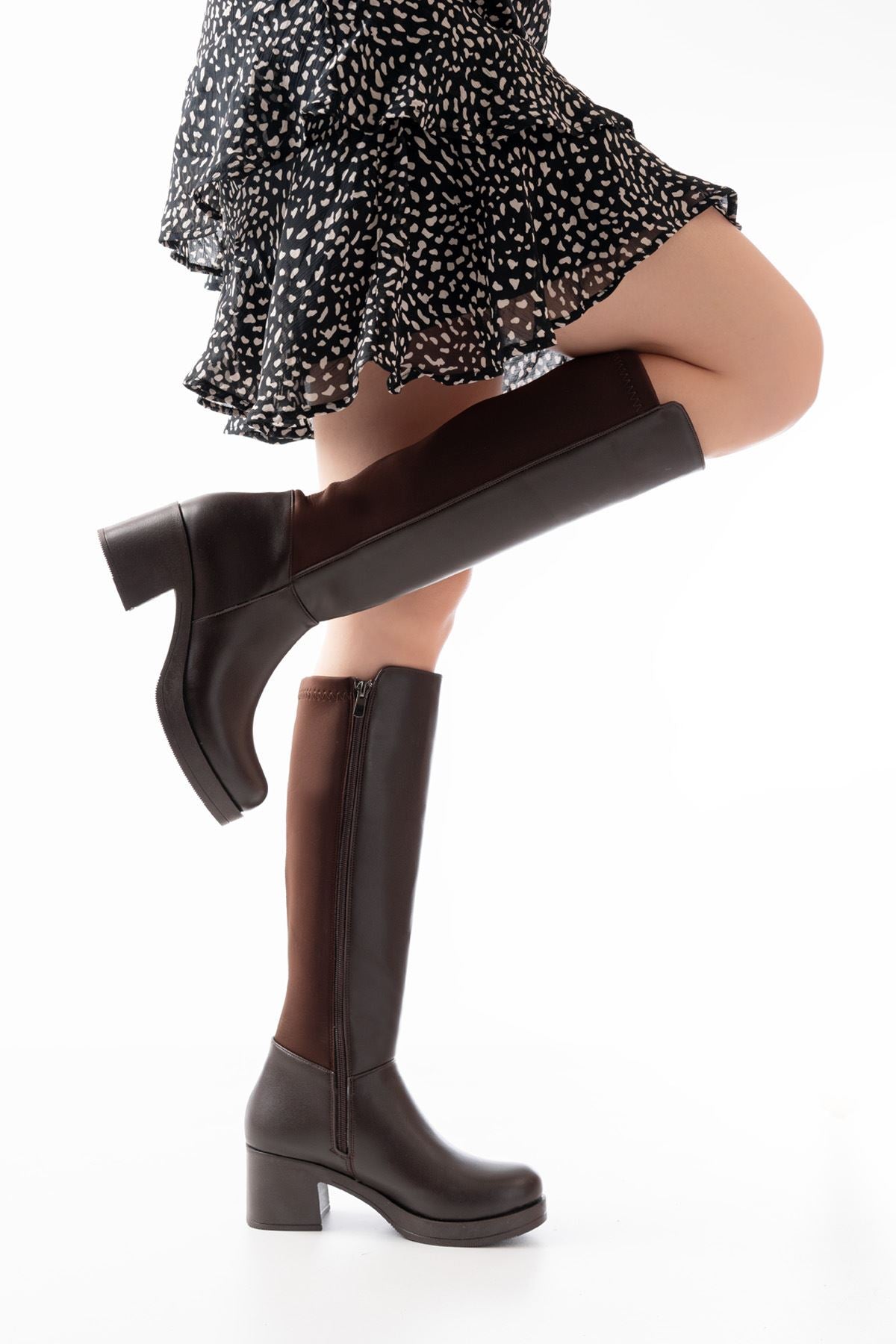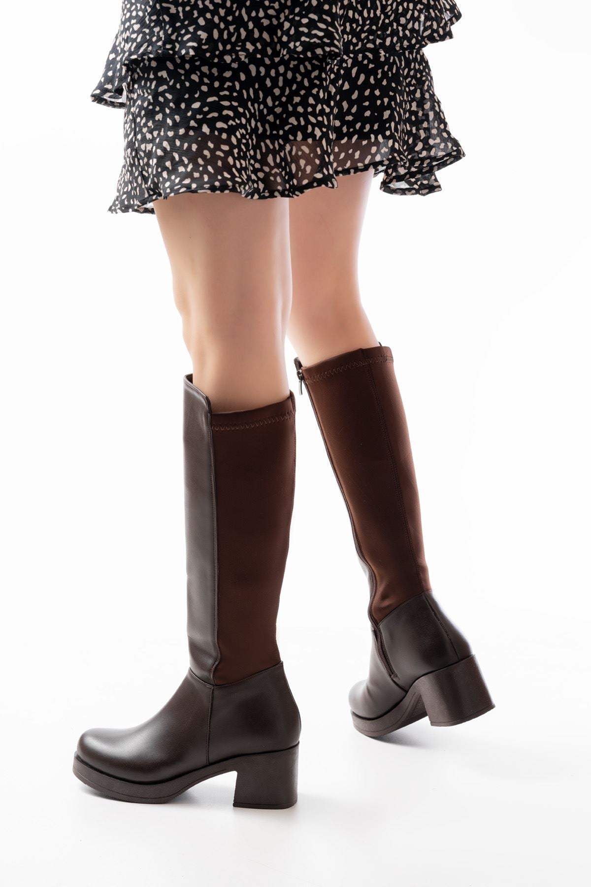 Katelia Kahverengi Arka Streç Topuklu Kadın Çizme