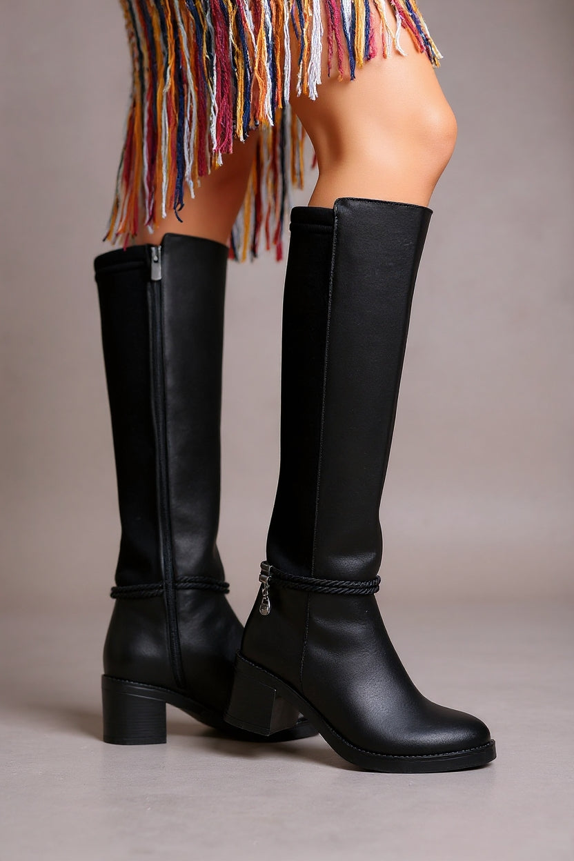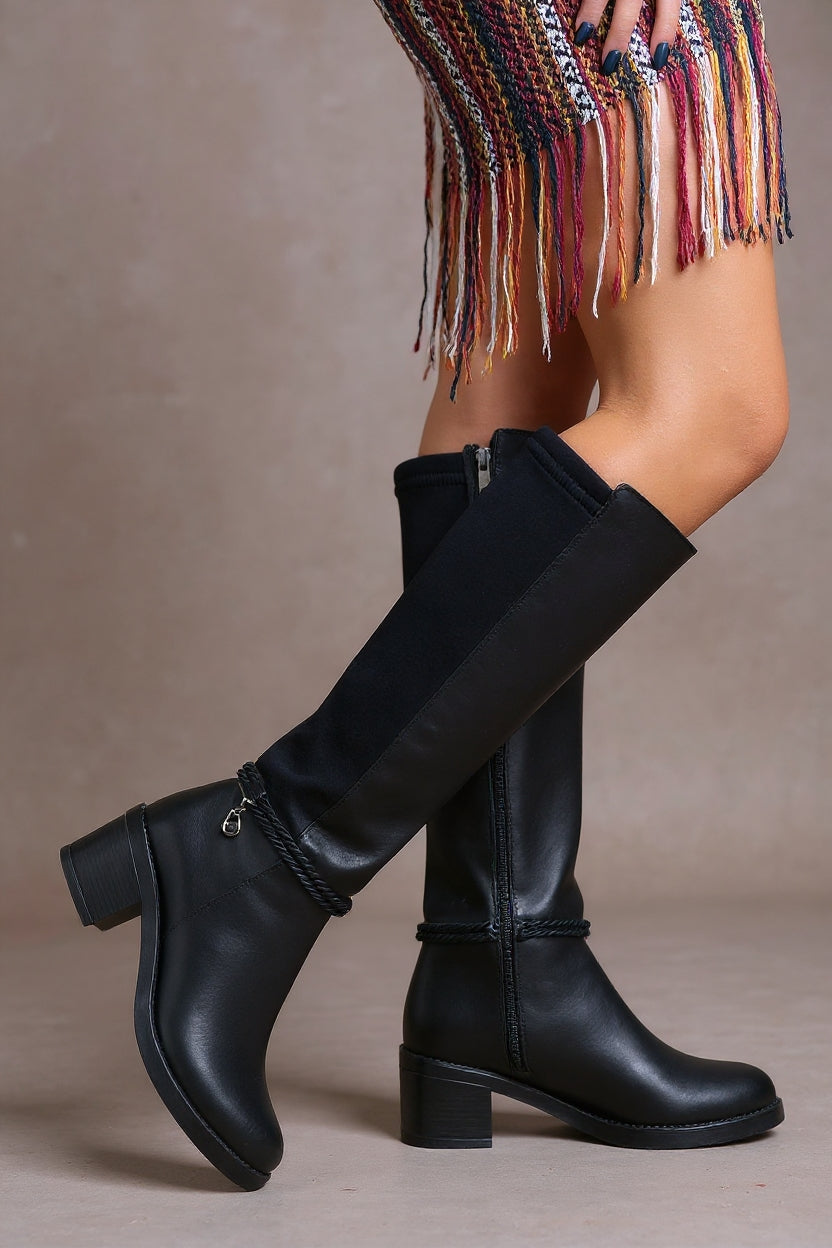 Detay : Topuklu Yandan Fermuarlı Arka Kısmı Streç Diz Altı Çizme