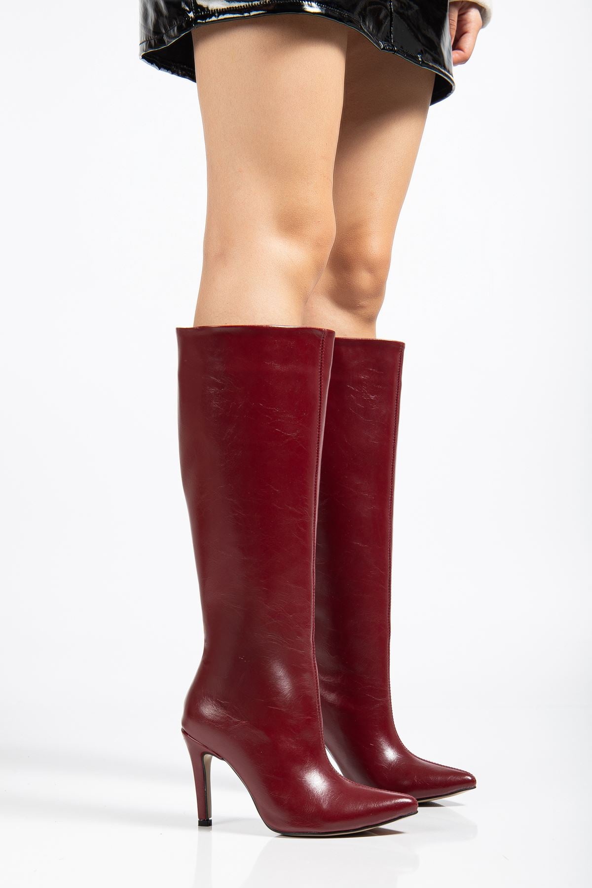 Opvez Bordo Kırışık Rugan Kadın Çizme