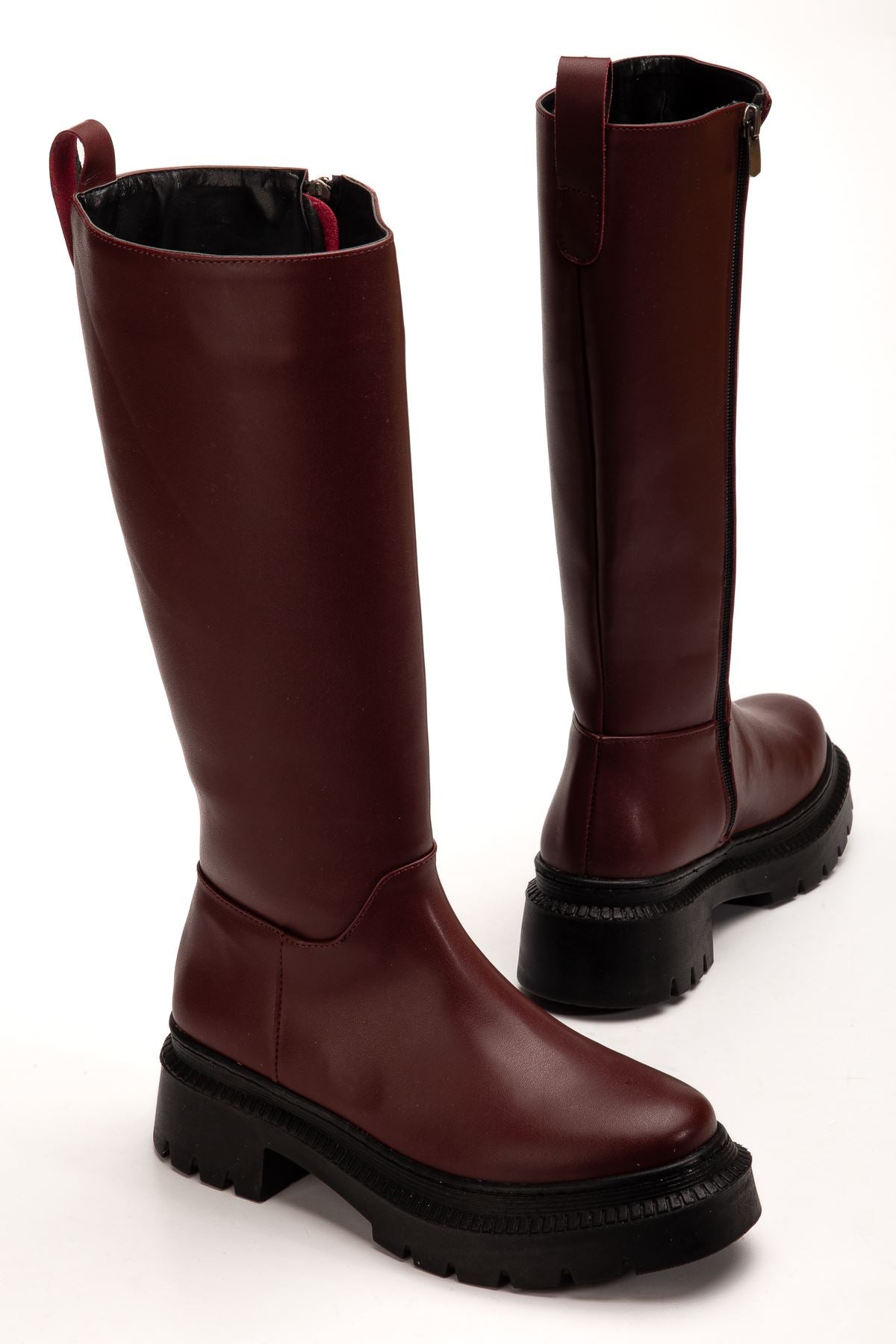 Yenney Bordo Kalın Topuklu Fermuarlı Kadın Çizme