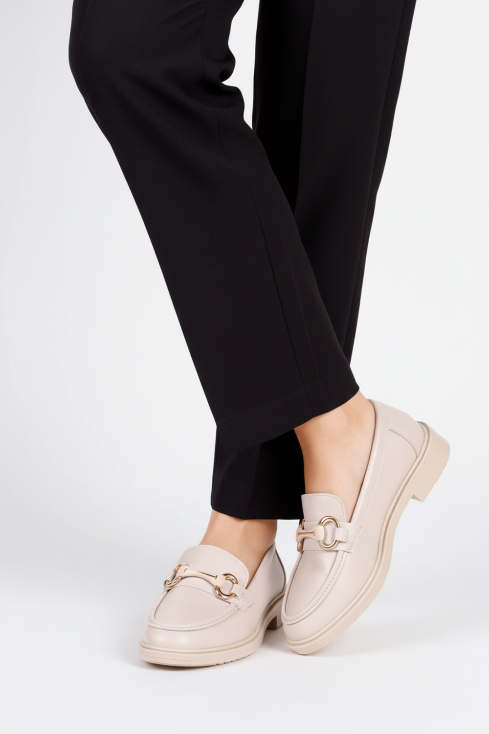 - Taba loafer kadın ve bej loafer kadın tasarımları: Sade ama sofistike bir stil sunarak kombinlerinizi tamamlar.