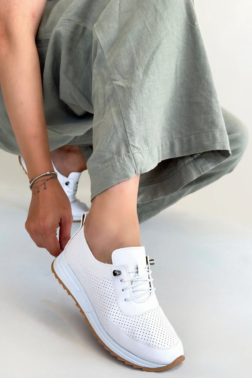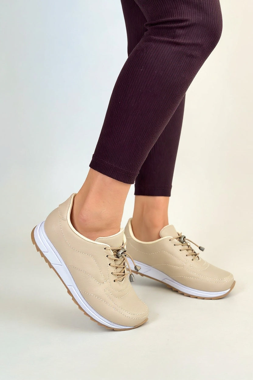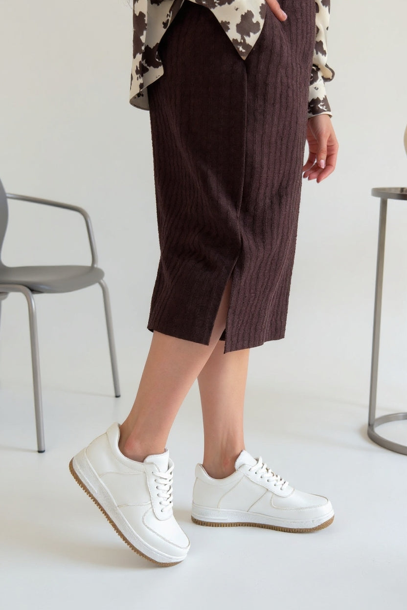 Sneaker ve spor ayakkabılarınızı kombinlemek için yüzlerce seçeneğiniz var. Diz boyundaki kalem eteklerinizle birlikte kombinleyeceğiniz sneaker ayakkabılar güzel bir görünüm elde etmenizi sağlar. Mini etekleriniz sneakerlar için harikadır, özellikle pudra, bej ya da pembe gibi yumuşak tonlarda yapacağınız kombinle tatlı bir görünüm elde edersiniz. Bu kombinlerinizde özellikle kalın tabanlı sneakerlar sizi bir adım ön plana çıkartır. Mini etek-sneaker kombinlerinizde metal aksesuarlar kullanmak size fit bi şıklık da sunar. Kadın şık sneaker modellerini yırtmaçlı uzun eteklerinizle kombinleyebilirsiniz. Giysinizin detaylı ve desenli olması şart değil, dizinize kadar uzanan bir yırtmaç sneaker ve etek-elbise kombininizi parlatmak için yeterli. Retro görünümlü bir şıklık yakalamak isterseniz yüksek çorap boyları ile ayakkabılarınızı birleştirebilirsiniz. Kadın yazlık sneaker modellerinizi giymek için en güzel sebeplerden biri çiçekli elbiseleriniz. Bileklerinizi süsleyen ince bileklikler de kombininizde güzel bir detay olarak yer alabilir. Siyah deri etek ve desenli bir tişörtün altına giydiğiniz beyaz renkteki kadın günlük sneaker ayakkabı sizleri ferah bir şıklıkla birlikte sportif bir görünüme de kavuşturur. Etek-ceket takımlarınızın altına giyeceğiniz uygun renkli sneaker ayakkabılar sizi ofis ortamında da en şık kişi haline getirecek. Çiçekli mini bir elbise ve siyah sneaker ayakkabılarınızın bir araya geldiğini düşünün? İlk buluşmalar için yaratılmış bu kombini mutlaka denemelisiniz. Blazer ceketlerinizi kombinlemek için en iyi yol desenli bir sneaker bulmak, böylece hem şık hem de fit bir görünümü tek bir kombinde buluşturabilirsiniz. Bilek detayları olan kadın kışlık sneaker modelleri tercih ediyorsanız kabanlarınızı hazırlayın, bir araya geldiğinde muhteşem bir görüntü ortaya çıkaran bu ikili sizi asla pişman etmeyecektir. Her biri kombinlerinizi tamamlayacak ve şıklığıyla göz dolduracak kadın sneaker modelleri için Getcho Store’daki ayakkabılara göz atın.