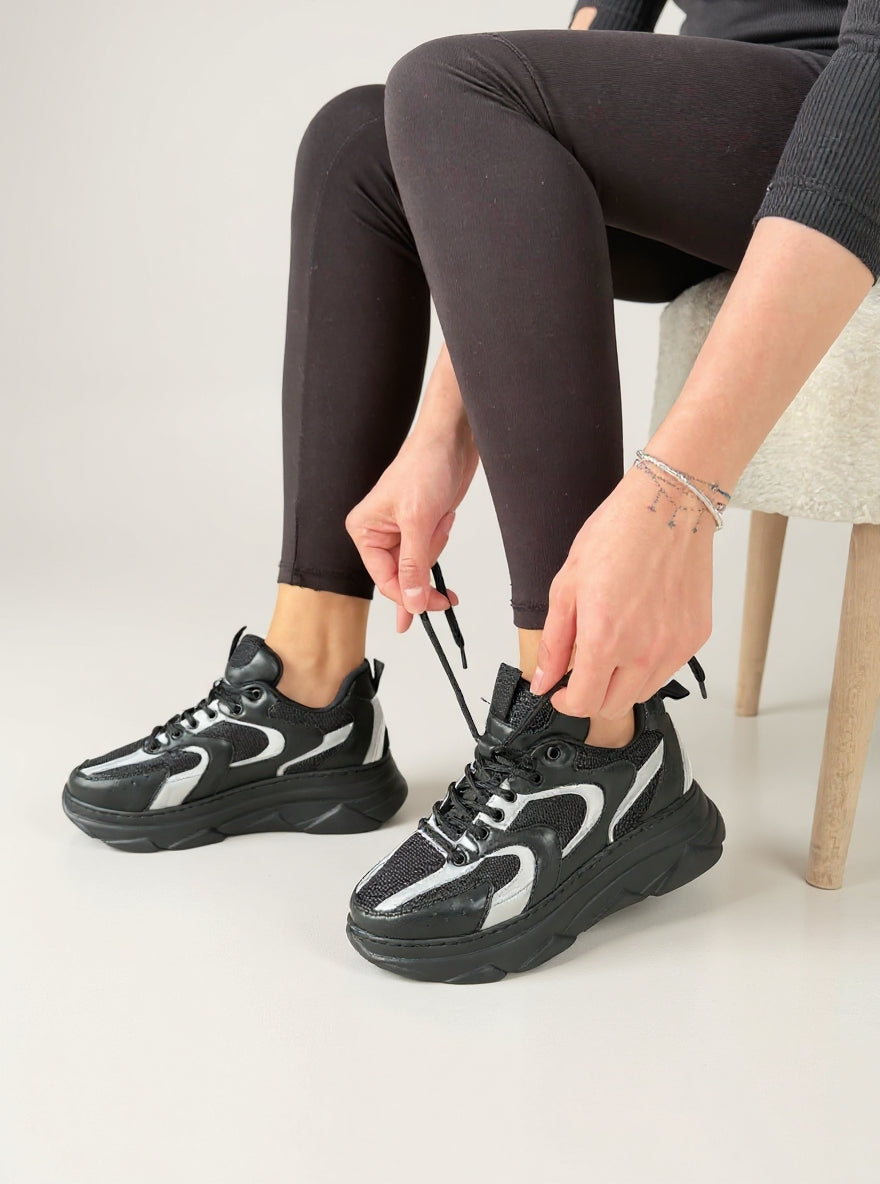 Konforlu yapısı ve dikkat çeken beyaz desenli detaylarıyla Cata, dinamik bir stil arayanlar için ideal bir seçenek. Bağcıklı formu sayesinde ayağa tam uyum sağlarken, 3 cm tabanı gün boyu rahat hareket etmeni destekler. Spor kombinlerden şehir stiline kadar pek çok görünümü tamamlayacak modern bir modeldir.