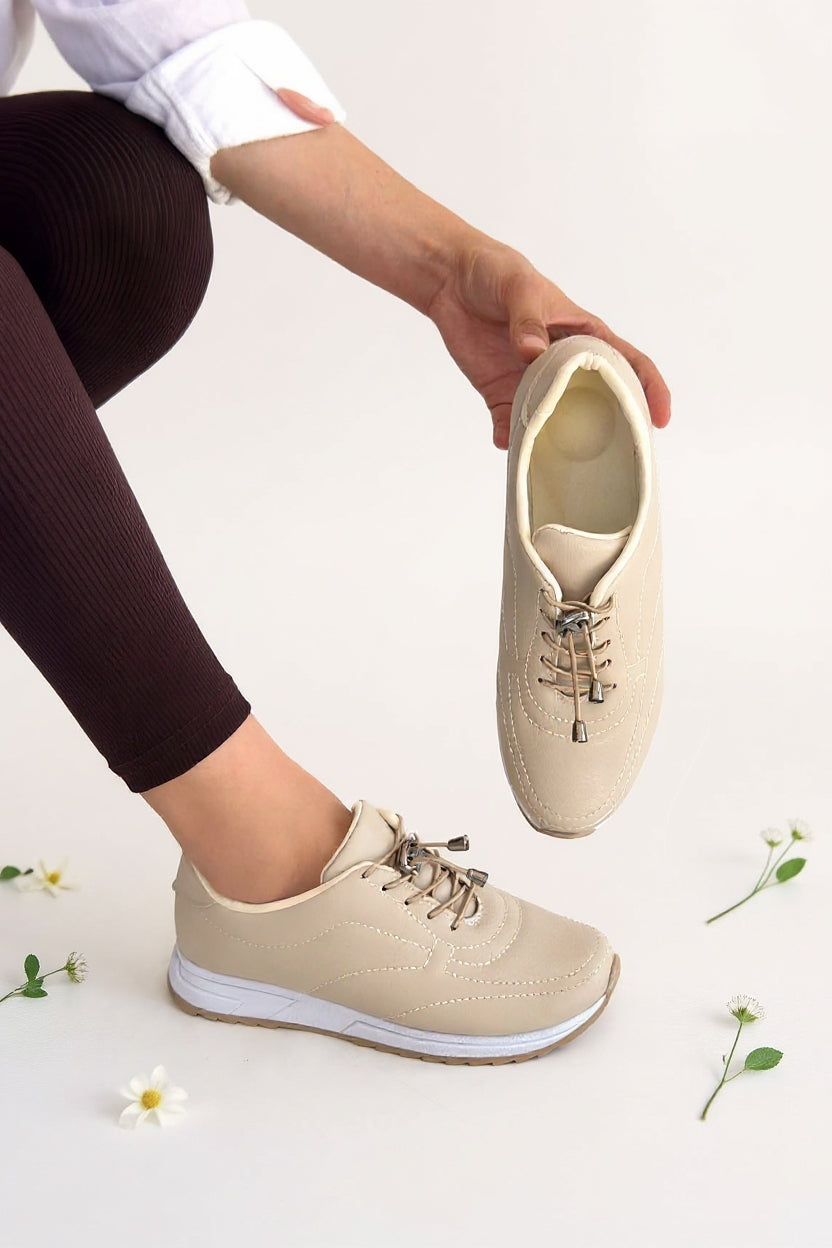 Finna Kadın Bej Bağcıklı Spor Ayakkabı