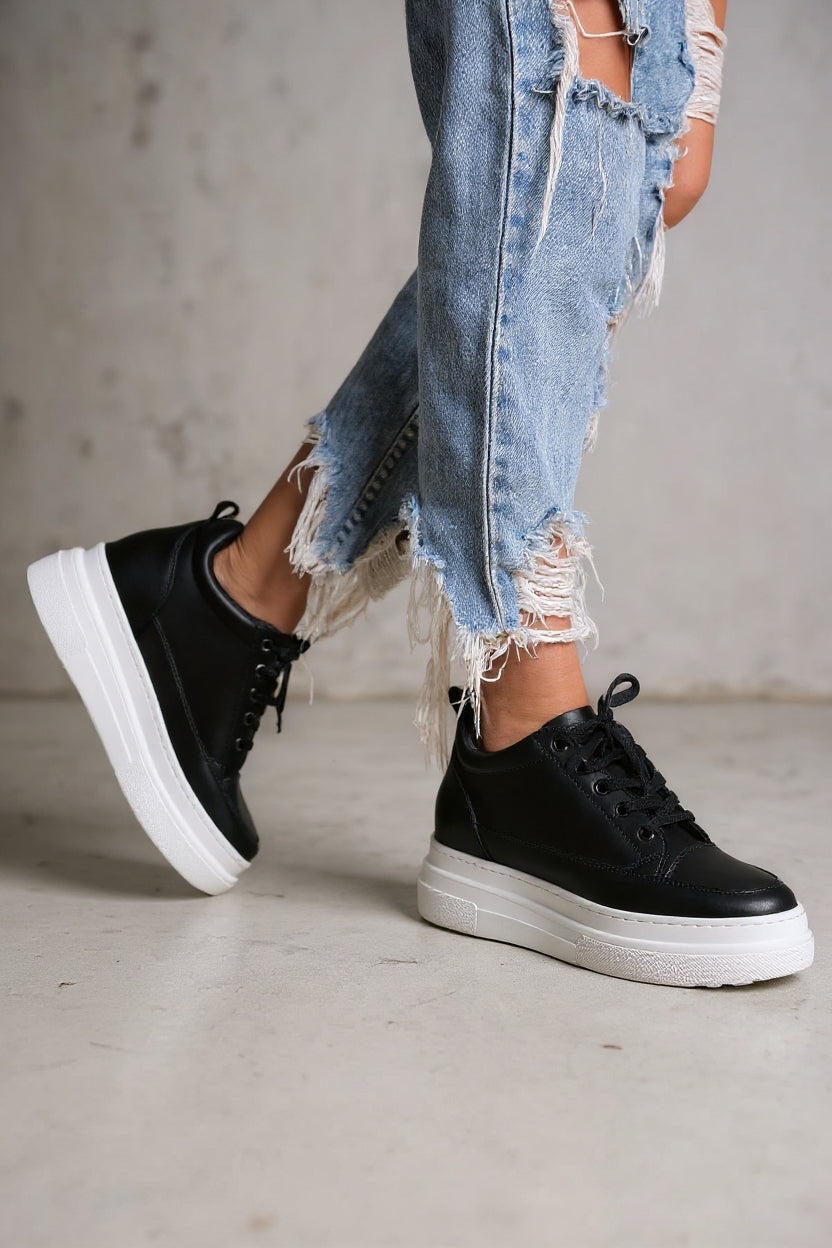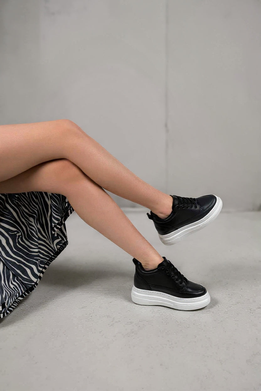 Helnes Kadın Siyah Beyaz Gizli Topuk Spor Ayakkabı