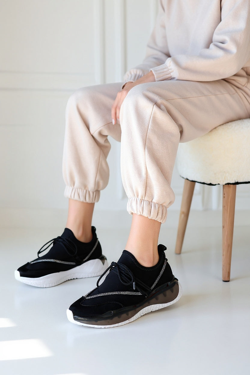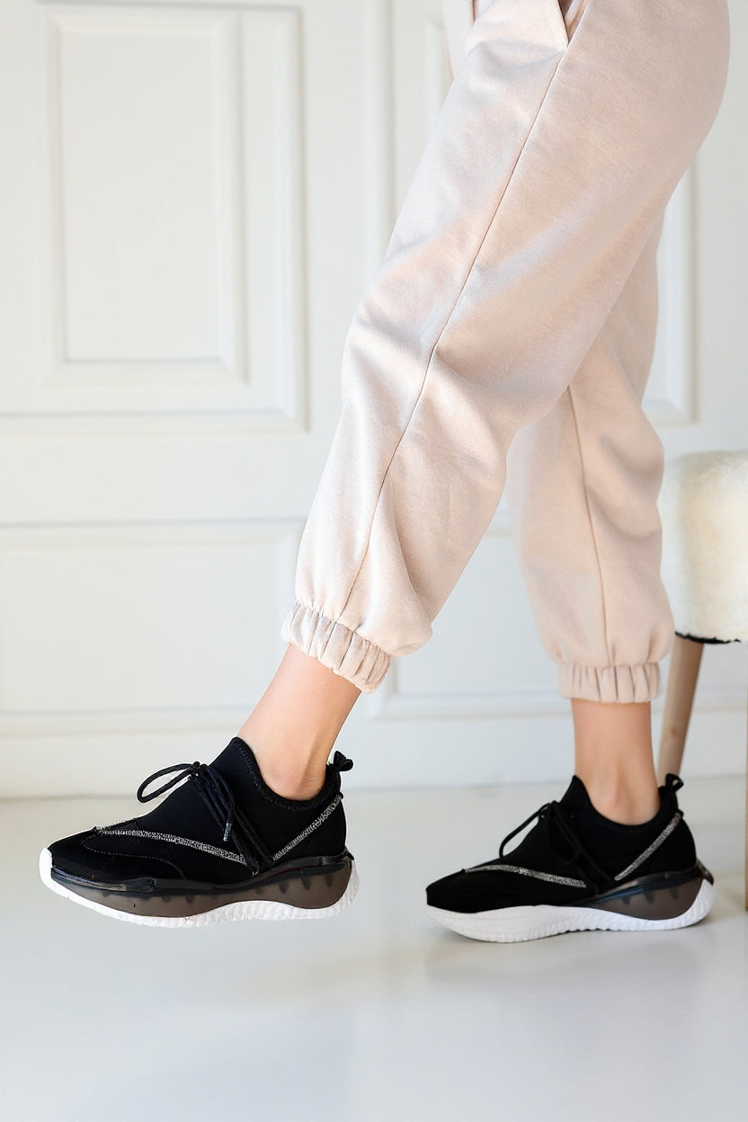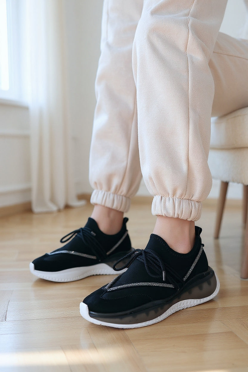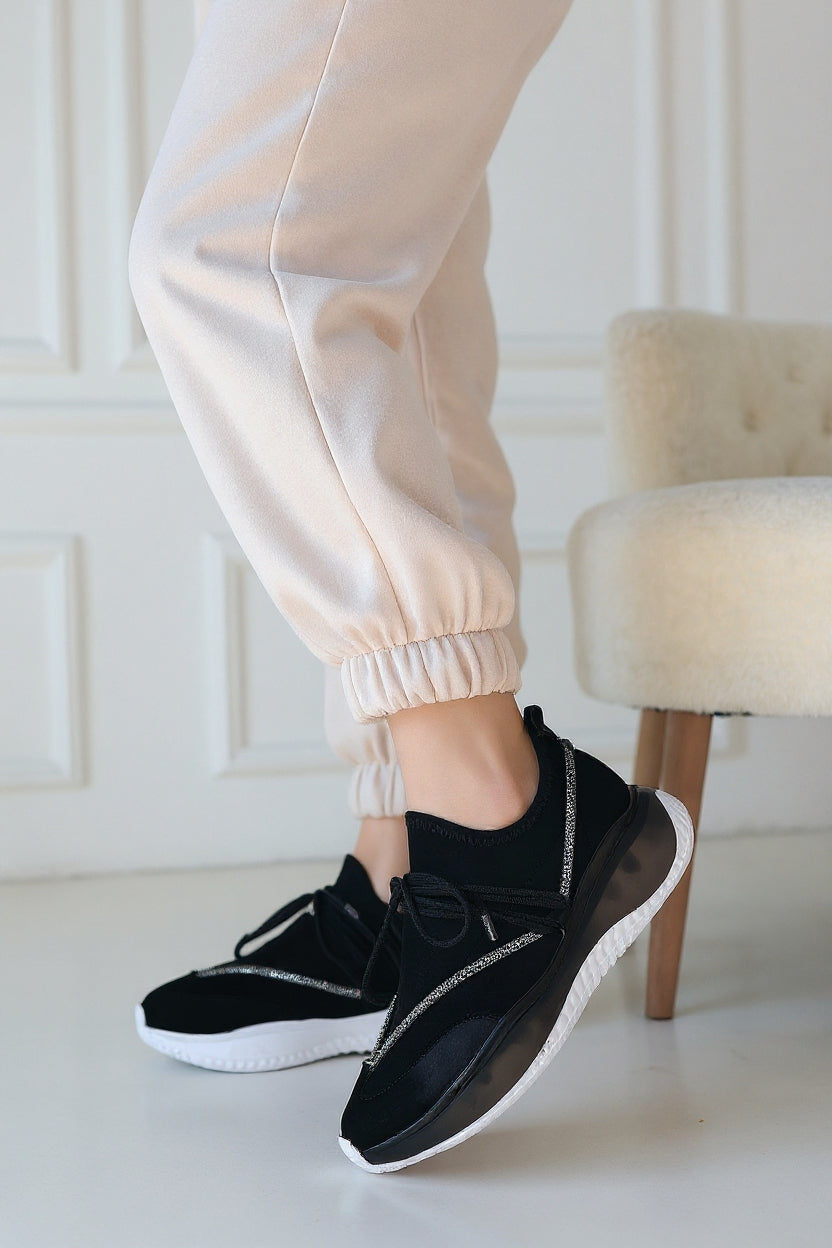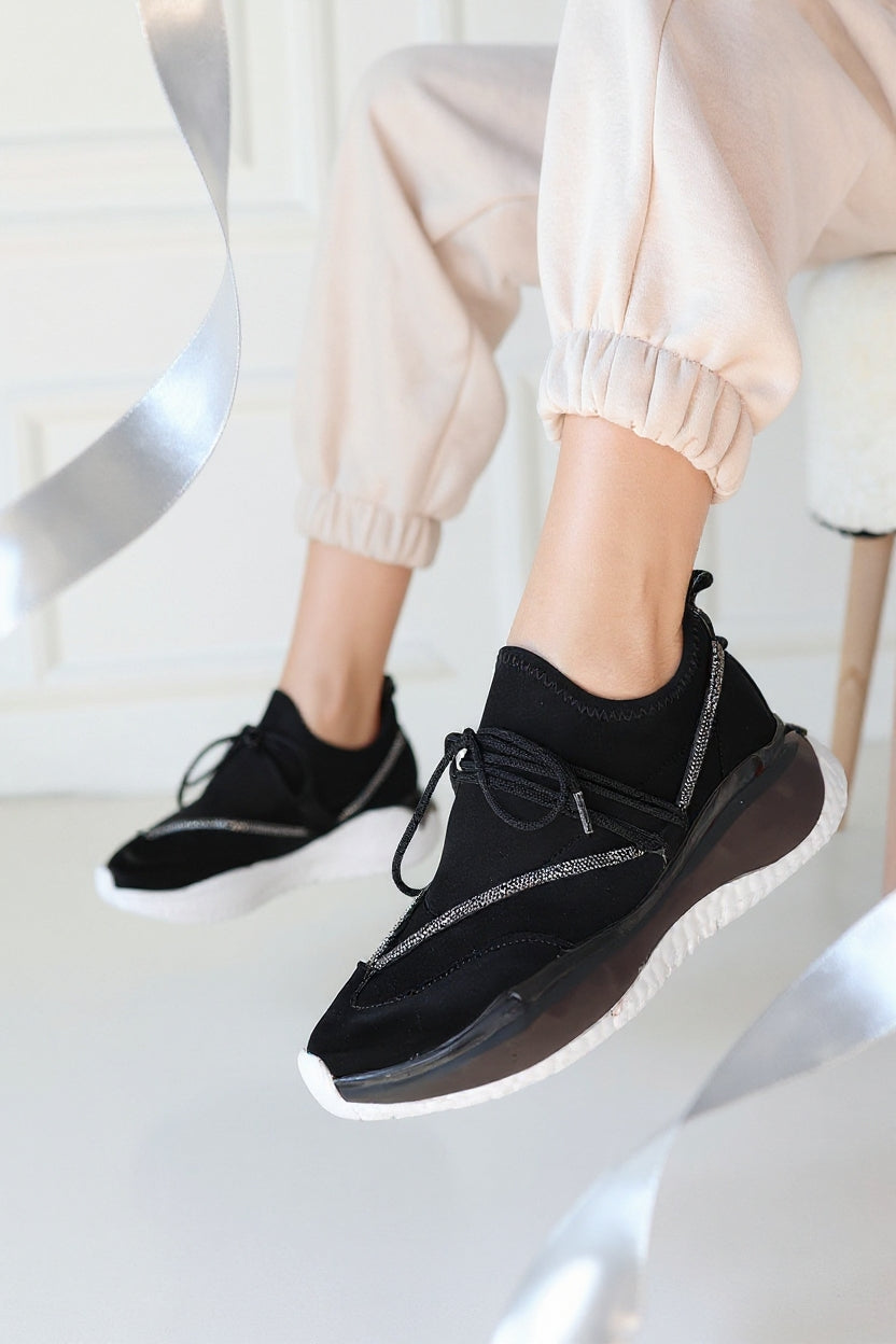 Liney Kadın Siyah Rugan Bağcıklı Spor Ayakkabı