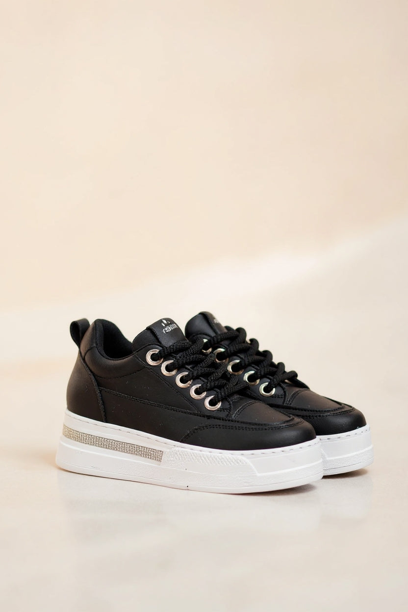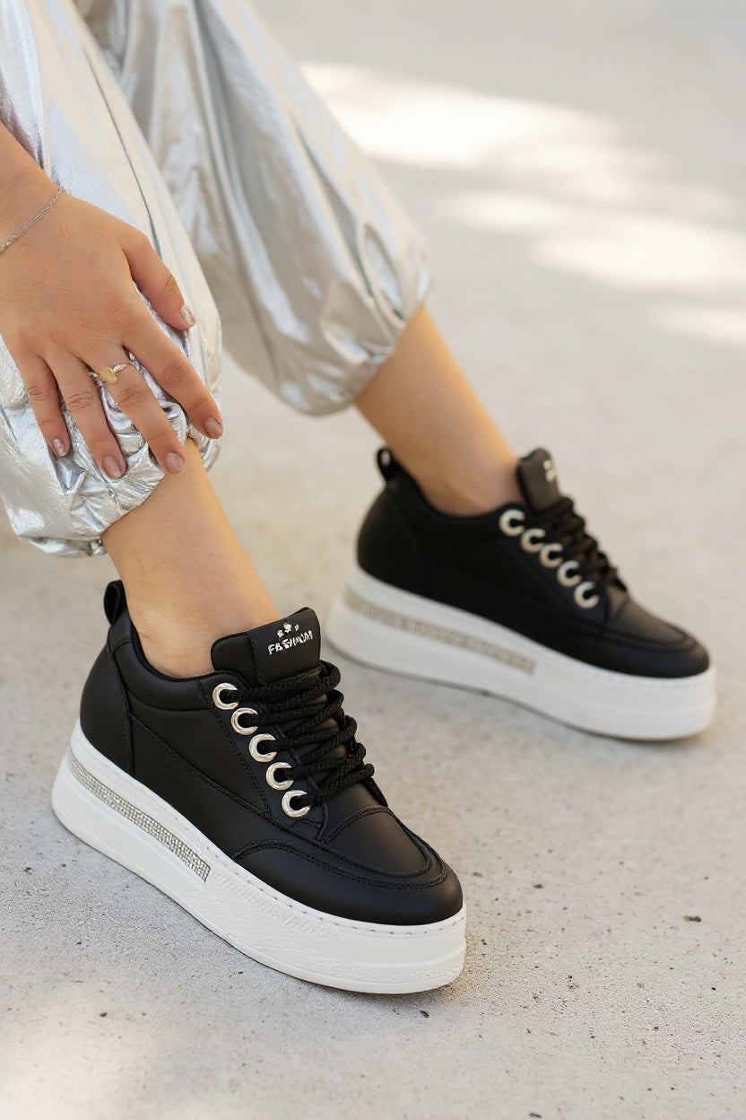 Lulu Kadın Siyah Beyaz Tabanlı Bağcıklı Spor Ayakkabı
