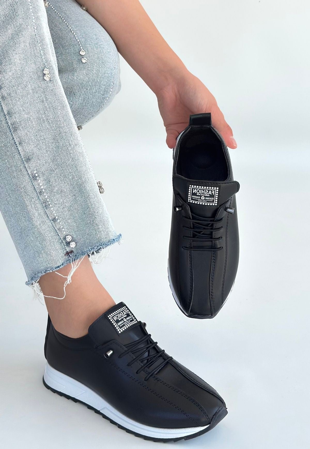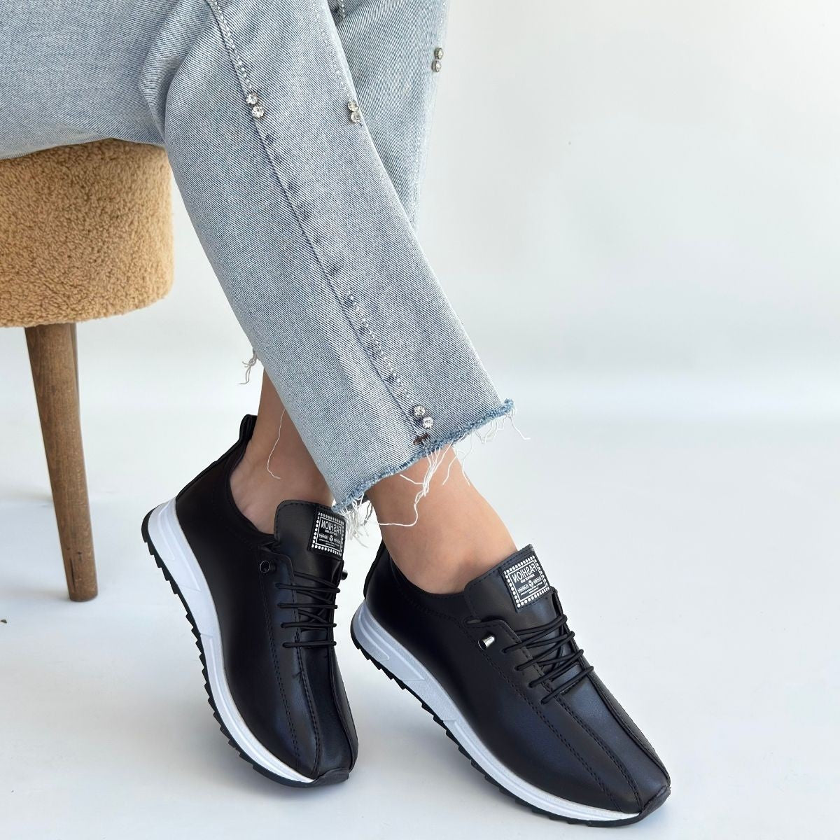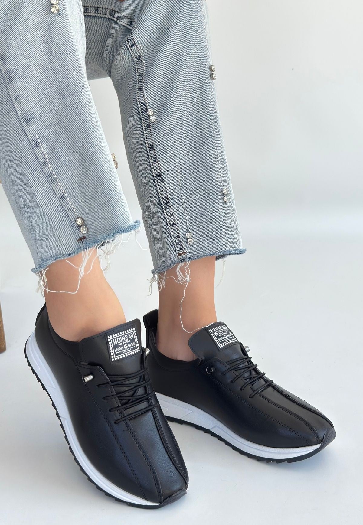 Monya Kadın Siyah Bağcıklı Spor Ayakkabı