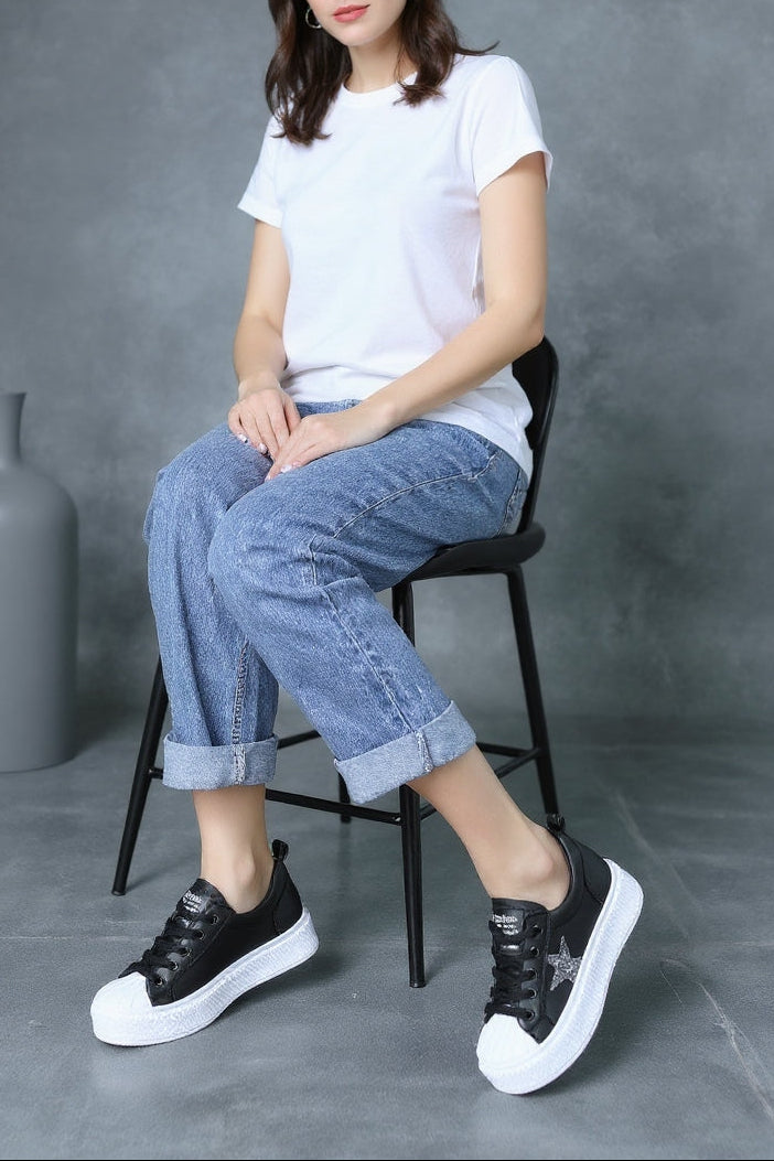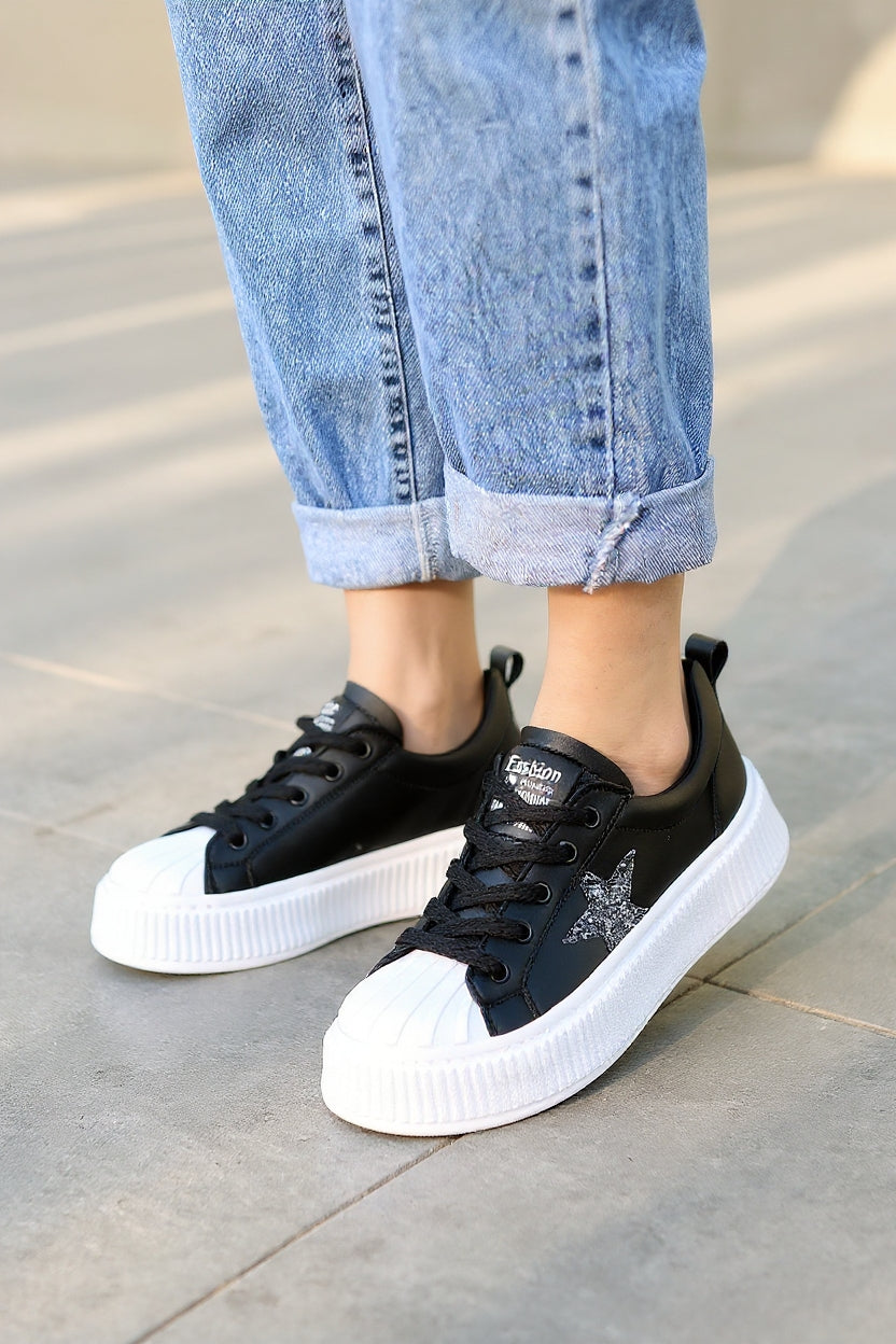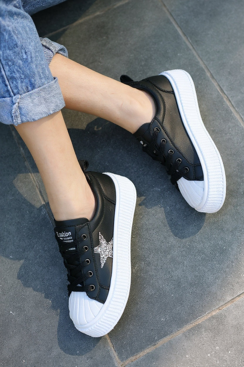 Yan kısmındaki yıldız şeklindeki parlak detay ile enerjik ve modern bir görünüm sunan bu model, günlük kombinlerde hem konfor hem tarz arayanlar için ideal bir seçenek. Hafif taban yapısı sayesinde gün boyunca rahat adımlar sağlar.