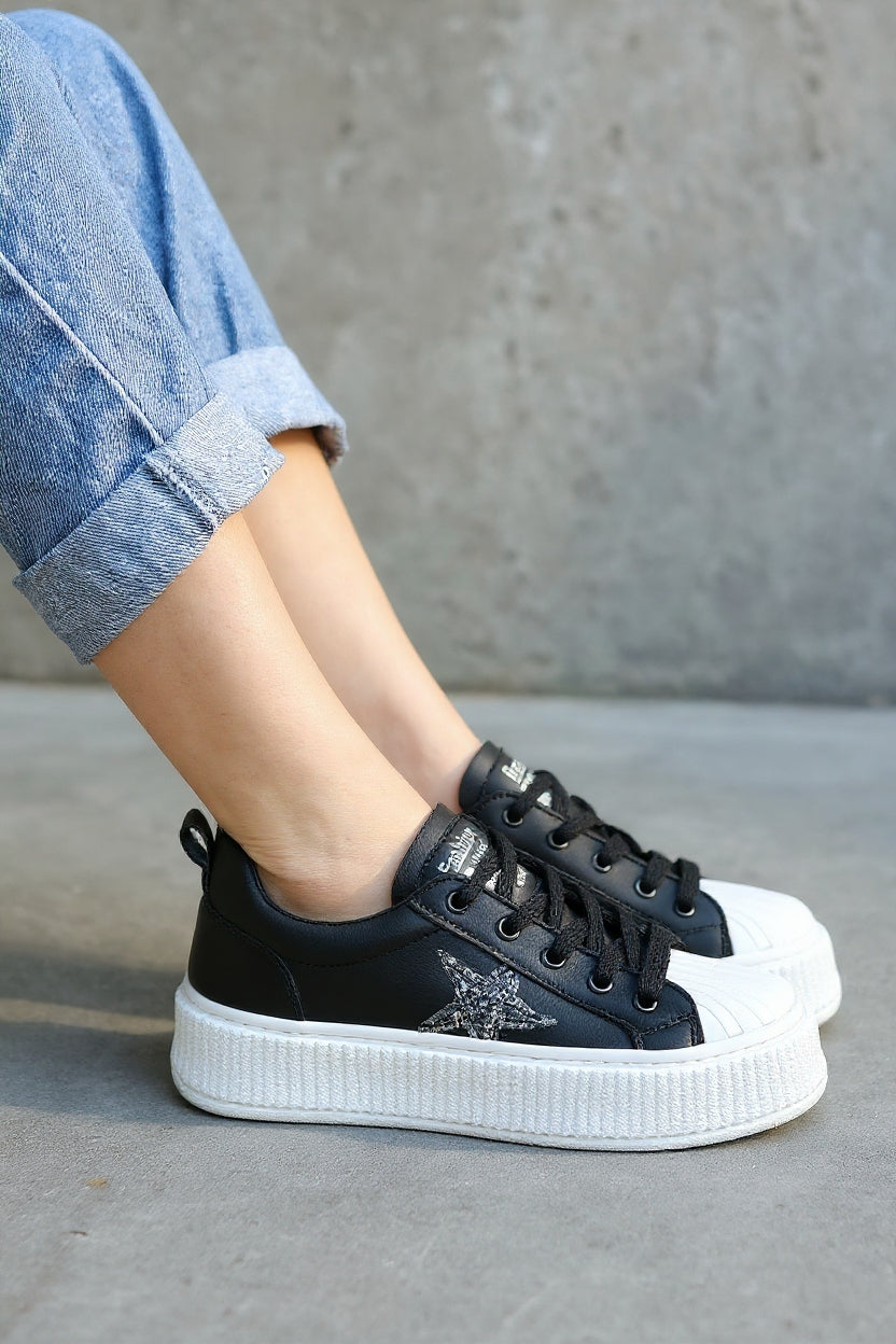 Piata Kadın Siyah Bağcıklı Beyaz Tabanlı Spor Ayakkabı