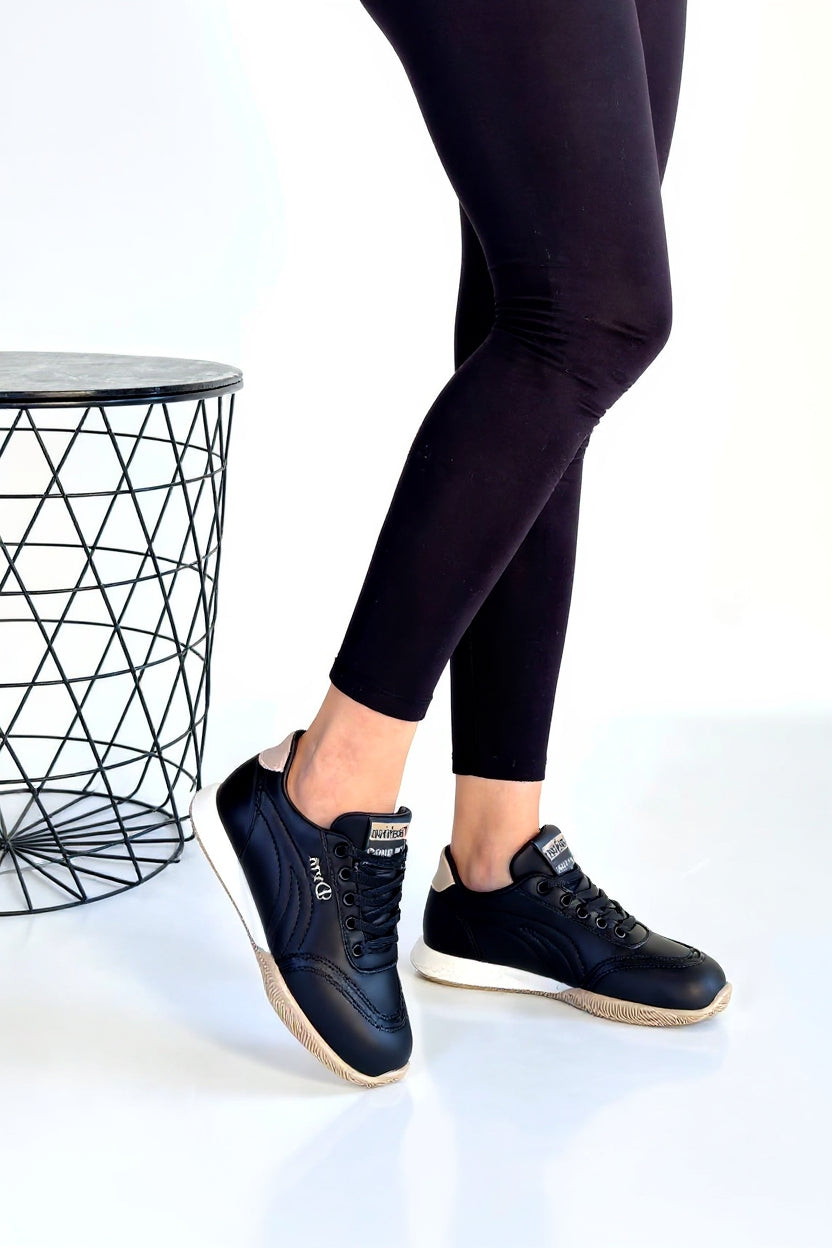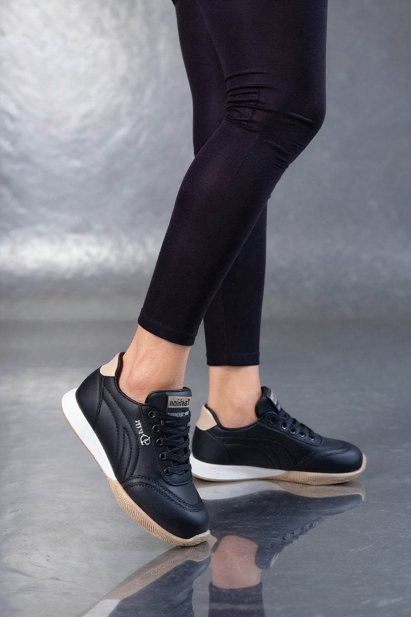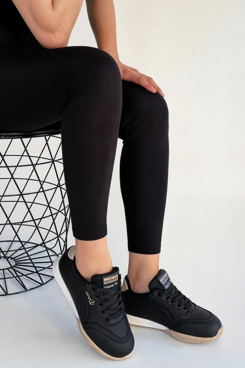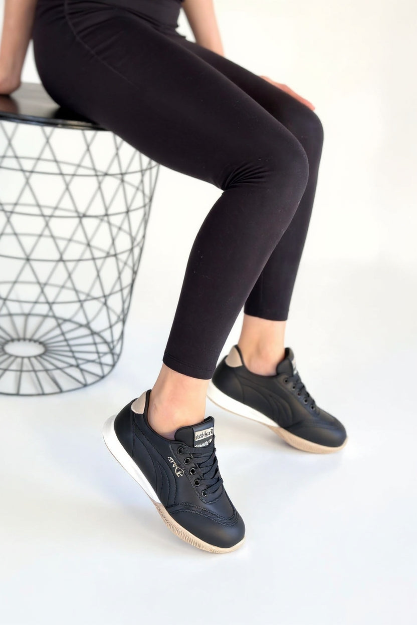 Tawen Kadın Siyah Bağcıklı Bej Tabanlı Spor Ayakkabı
